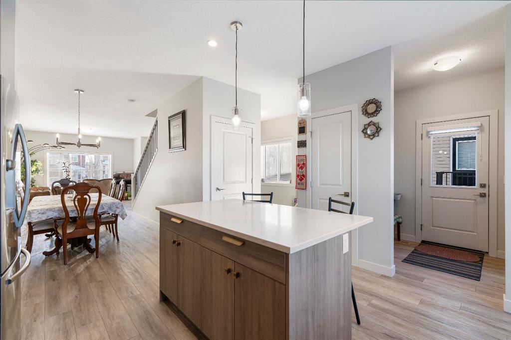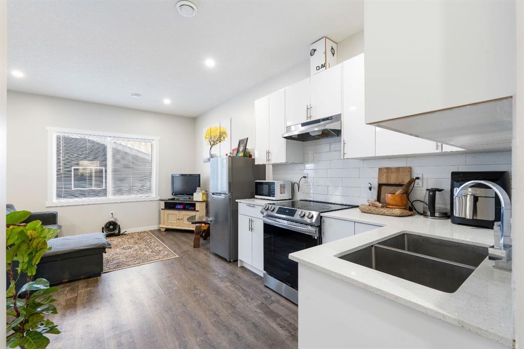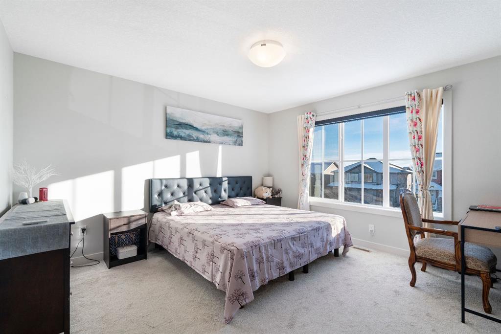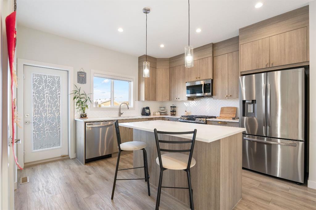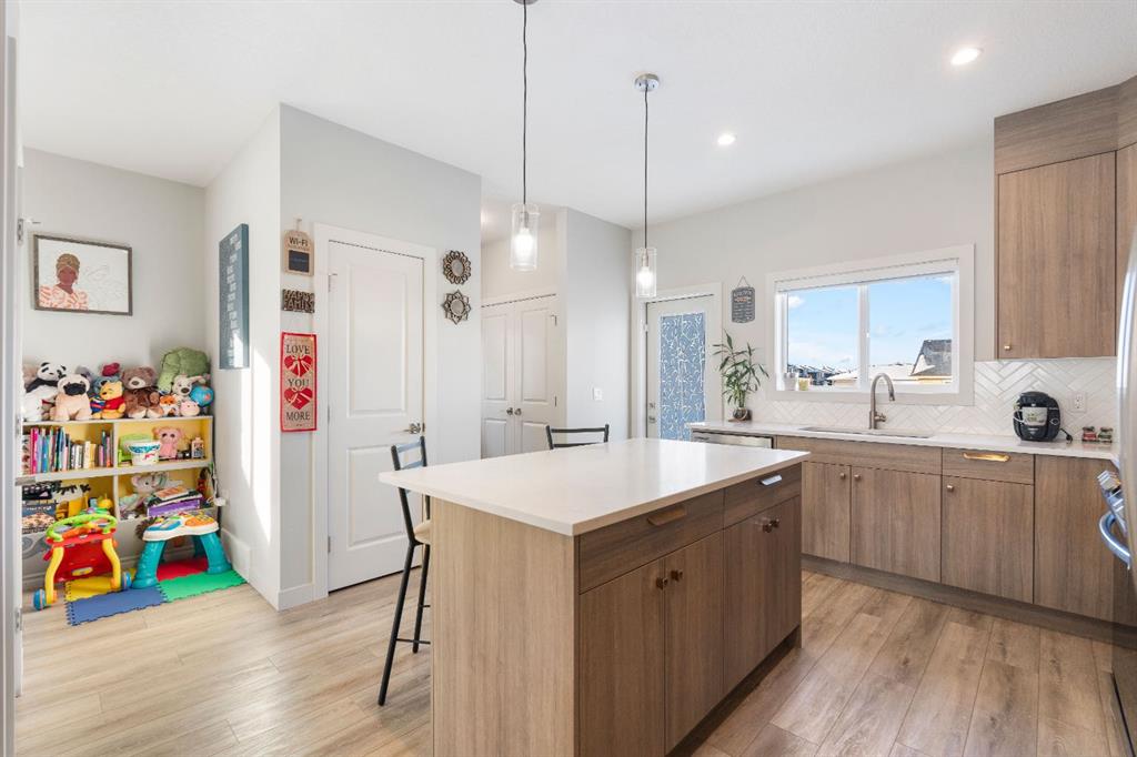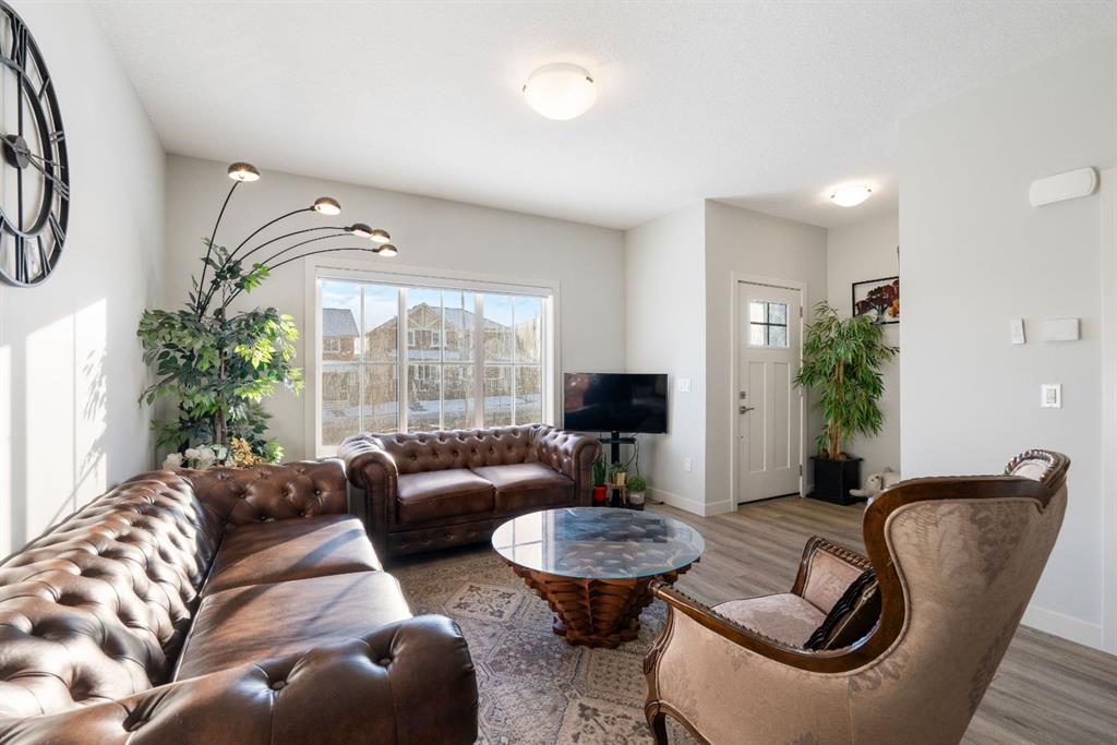 Welcome to this stunning, sun-filled, and thoughtfully designed fully finished semi-detached home, complete with a walkout illegal basement suite currently rented for $1,300/month plus 40% utilities, located in one of Cochrane’s most sought-after communities—Rivercrest. Framed by breathtaking mountain views and just steps from Bow Valley School, this home offers an exceptional setting for families and investors alike. Boasting over 2,100 sq. ft. of well-planned living space, this home delivers a complete package featuring 4 bedrooms, 3.5 bathrooms, a main-floor den, an open-concept layout, an upgraded kitchen, a walkout basement, and an oversized double garage (22'3" x 24'). As you step inside, you are immediately welcomed by a bright and inviting living area, enhanced by large windows and automated blinds for added comfort and convenience. The dining space flows effortlessly into the impressive chef-inspired kitchen, showcasing quartz countertops, premium appliances, full-height cabinetry, elegant gold hardware, and a matching gold faucet. A spacious centre island doubles as the perfect breakfast bar. Tucked away on the main floor is a private den—ideal for a home office or study. Step outside onto the upper deck, the perfect place to enjoy your morning coffee while taking in the scenic surroundings. A side staircase leads down to the backyard, offering additional outdoor space for entertaining or relaxation. Upstairs, you’ll find a charming tech or kids’ play nook, followed by three generously sized bedrooms, many with beautiful valley views. The primary suite features a well-appointed ensuite with dual vanities, a walk-in closet, and a glass-enclosed standing shower. A full shared bathroom and stacked laundry complete this level. The fully finished walkout basement is a standout feature, offering a bright and spacious living area with large windows, a complete kitchen with quartz countertops and stainless steel appliances, a modern upgraded bathroom, and a sunny, well-sized bedroom. A separate laundry set adds further functionality and appeal. Ideally located with quick access to Calgary (20 minutes), Downtown Calgary (30 minutes), and Canmore (1 hour), this home offers the perfect balance of scenic living and everyday convenience. With strong rental potential estimated at $3,800–$4,200 per month, this property presents an outstanding opportunity for homeowners and investors alike. Don’t miss your chance to make Cochrane home.