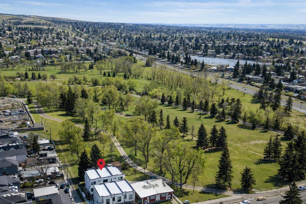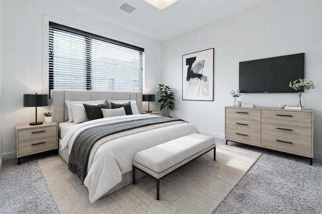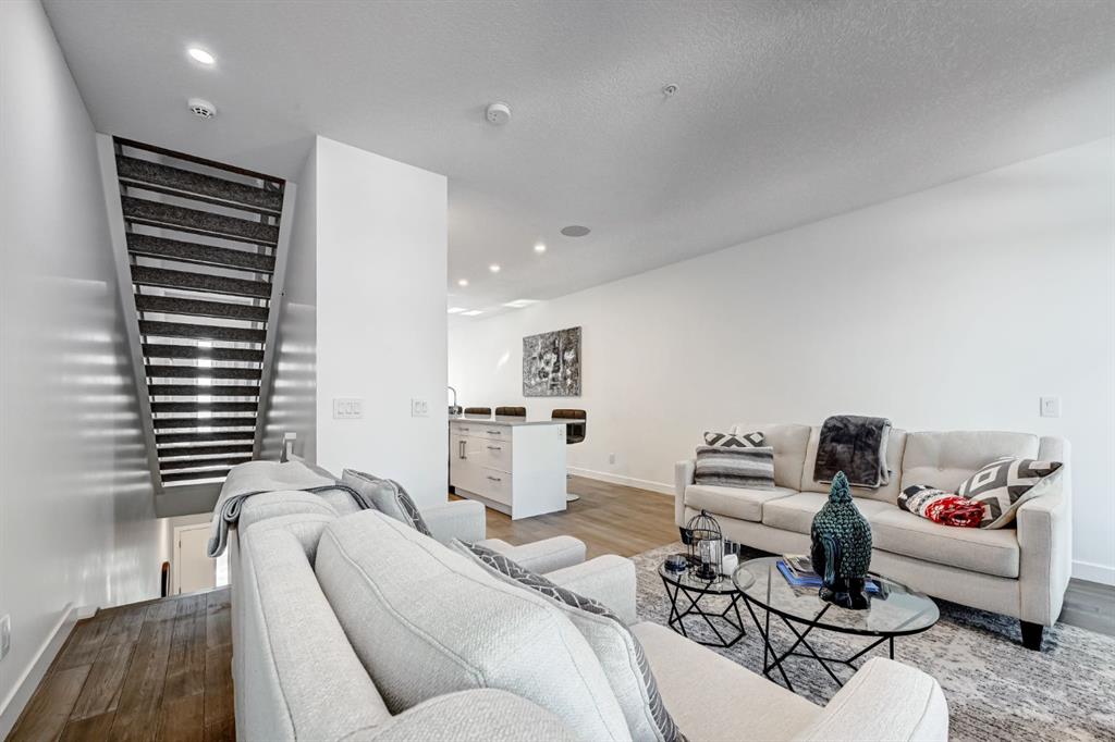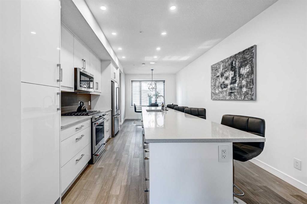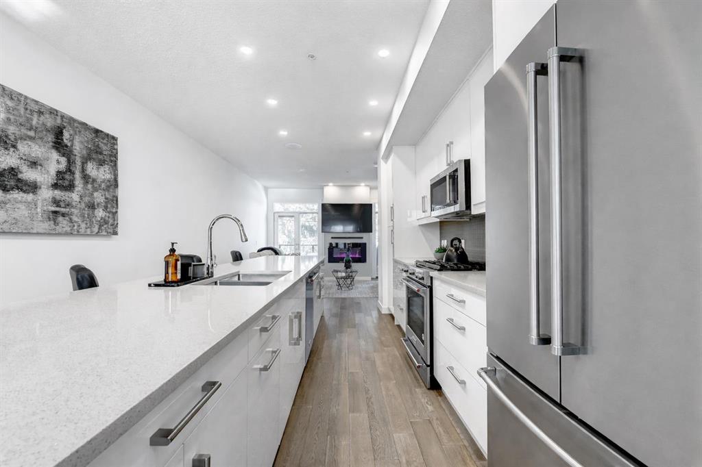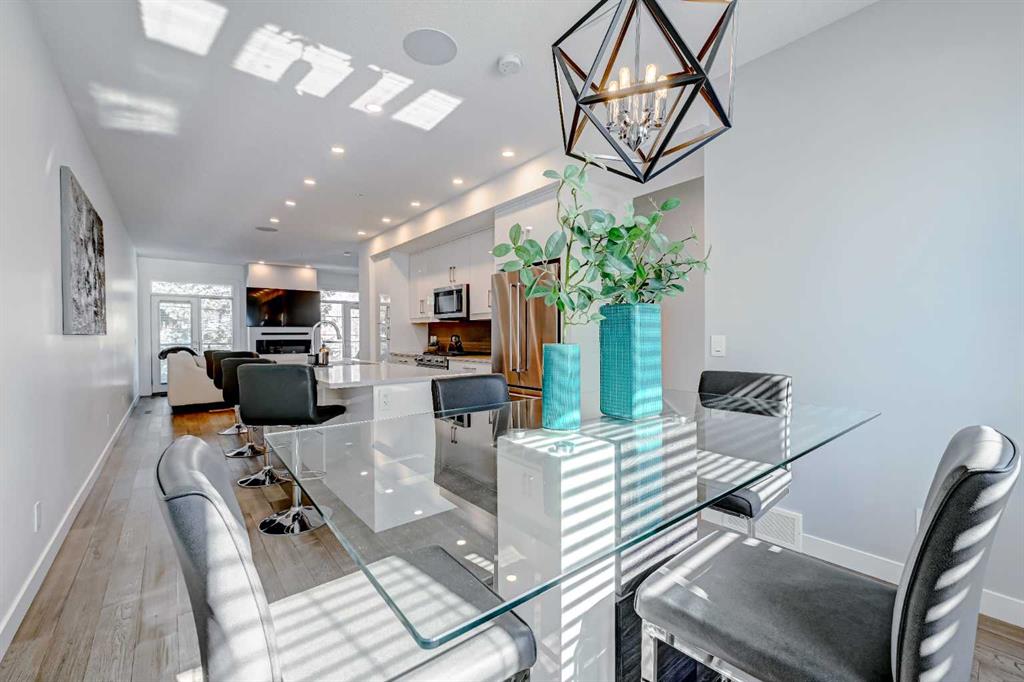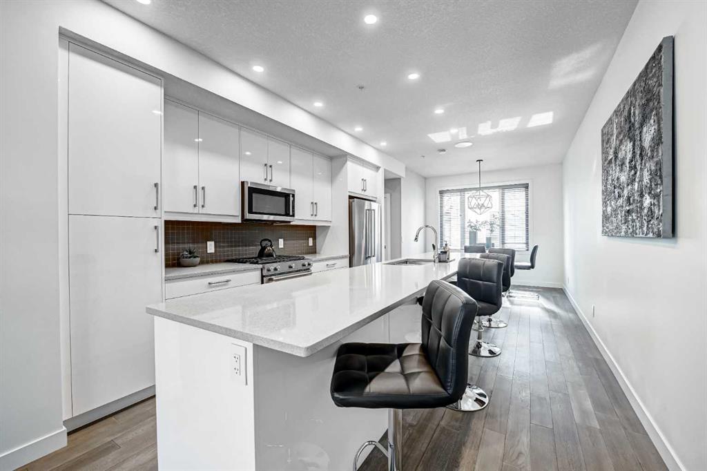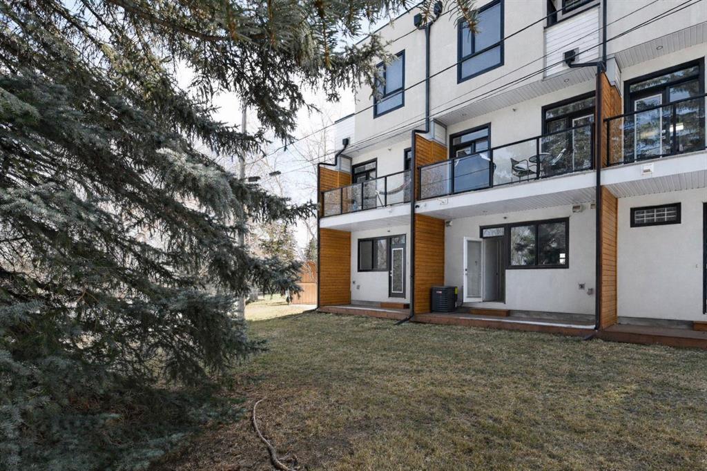 Backing directly onto Confederation Park, this immaculate 3 storey townhouse offers a rare combination of space, privacy, and an unbeatable inner city location in the heart of Capitol Hill. As the largest unit in the complex, with all three levels above grade, pride of ownership is evident throughout. The main level features a private bedroom with a 3 piece ensuite, ideal for guests or a home office along with convenient access to the attached garage. Upstairs, the bright and inviting second level is designed for everyday living and entertaining, showcasing a cozy living room with an electric fireplace and direct access to a park facing deck complete with a gas line for your BBQ. The stunning kitchen is the centerpiece of the home, featuring high-end stainless steel appliances, a huge quartz island with seating for six, generous cabinetry, a built-in speaker system, and a spacious dining area, complemented by a convenient 2-piece bathroom. The top floor is a true retreat, offering a spacious primary bedroom with a Juliet balcony overlooking the park, a luxurious 5-piece ensuite with heated flooring, and a huge walk-in closet. A speaker system is also included in the primary bedroom. An additional well-sized bedroom, a 4-piece bathroom, and convenient upper-level laundry on the same floor as the bedrooms complete this level. The home also includes rough-ins in all other rooms for future speaker installation, with the A/V receiver included by the seller, allowing for easy expansion to a whole-home audio system. Enjoy year-round comfort with air conditioning and the unparalleled lifestyle of stepping directly from your home into Confederation Park. A rare opportunity in one of Calgary’s most desirable inner-city communities.