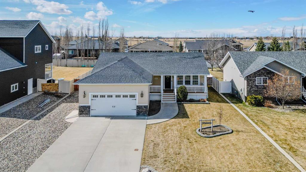 Tucked away in a fantastic cul-de-sac in the welcoming community of Raymond, this beautifully maintained bungalow offers the perfect blend of comfort, style, and functionality! From the moment you arrive, you’ll be impressed by the amazing curb appeal, inviting front porch, and pride of ownership that shines throughout. Step inside to an open-concept living, dining, and kitchen area accented by rich hardwood floors—an ideal space for both everyday living and entertaining. The kitchen truly shines with a gas stove, corner pantry, island for extra prep space, and a perfectly placed window above the sink so you can keep an eye on the kids playing safely in the large, fully fenced backyard complete with a fantastic garden spot and handy garden shed. The underground sprinklers add to the ease of maintenance and keep the plum and apple tree well nourished. Enjoy evenings around the firepit or on the spacious back deck! With 5 bedrooms—3 conveniently located on the main floor—and 3 full bathrooms, this home offers incredible flexibility for growing families, those looking to downsize without compromise, or anyone in between. Enjoy year-round comfort with central air conditioning, plus the added bonus of a double attached garage and plenty of additional off-street parking on the driveway. Did we mention the granite countertops? What about the new hot water tank and washer and dryer? Adding peace of mind to this move in ready property. Located in one of the town of Raymond’s friendliest neighbourhoods, this home checks all the boxes for location, layout, and lifestyle. Don’t wait—drop what you’re doing and call your REALTOR® today to book your showing!