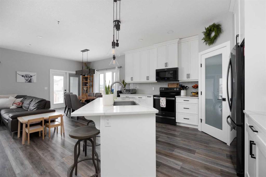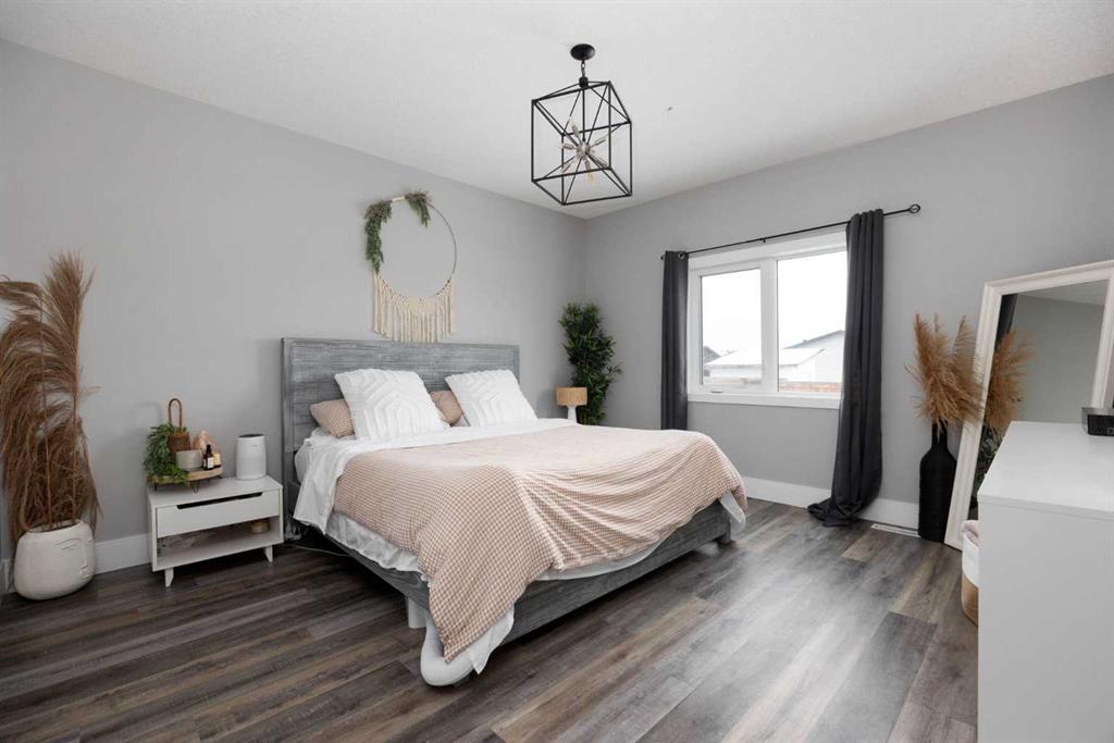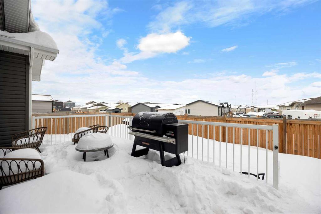 Welcome to 100 Beardsley Crescent, a beautiful 5-bedroom, 3-bathroom bungalow located on a spacious pie-shaped lot in the desirable community of Beacon Hill, offering over 3,000 sq ft of total living space, a HEATED double garage, CENTRAL AIR, HOT WATER ON DEMAND, SOLAR PANELS for added efficiency, walk-in-closets in most bedrooms, and rough-in for surround sound throughout. Built in 2017, this well-appointed home features a bright open-concept layout with large windows, durable vinyl flooring throughout, and QUARTZ COUNTERTOPS carried consistently through the entire home for a cohesive and modern finish. The main floor offers a welcoming living room with a stone feature wall fireplace, a spacious dining area with doors providing easy access to the rear deck for seamless indoor-outdoor entertaining, and a well-designed kitchen complete with a large island, breakfast bar, pantry, and ample white cabinetry. The primary bedroom provides a comfortable retreat with a walk-in closet and a private ensuite featuring a jetted tub and stand-up shower, while two additional bedrooms, a full bathroom, and a convenient main floor laundry room complete this level. The fully finished basement adds even more functional space with a large recreation/games room with wet bar, two additional bedrooms, a full bathroom, and plenty of storage throughout the home. Step outside to enjoy the private backyard with dog house, a large deck and natural gas BBQ hookup, perfect for outdoor entertaining. Located close to parks, trails, and amenities, this property offers the perfect combination of space, comfort, and modern features for family living. Book your private showing today!