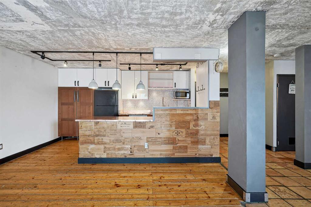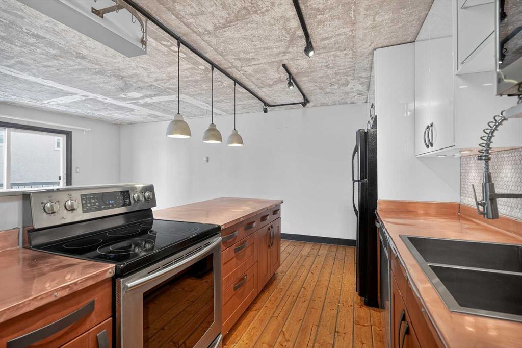 Forget the ordinary. This top-floor gem in the vibrant community of Sunalta offers a rare blend of industrial-chic charm and everyday functionality. If you’ve been looking for a home that reflects your personality, this is it. A fun industrial feeling in the kitchen is a true conversation starter, featuring custom copper countertops that develop a beautiful patina over time, complemented by an abundance of cabinetry and sleek tile work. No carpet here! Enjoy the durability and style of hardwood and tile throughout the entire unit—perfect for easy maintenance and a modern look. Being on the top floor means no upstairs neighbors and plenty of natural light. Step out onto your private east-facing balcony to enjoy your morning coffee on the private balcony. This is a "larger-than-average" one-bedroom floor plan. The living room offers a generous footprint for entertaining, and the bedroom is a true sanctuary with enough room for a king-sized suite. Skip the basement trek; your laundry is in-unit, with extra space for your gear. Keep the snow off your car with your own outdoor covered parking stall. You are just a short walk to the Sunalta C-Train station, making your commute to the downtown core, SAIT, or the University of Calgary a breeze. Sunalta is one of Calgary’s most walkable and transit-friendly neighborhoods. You are minutes away from the eclectic shops and nightlife of 17th Ave, the scenic Bow River pathways, and quick commuter access to Crowchild Trail and Bow Trail.