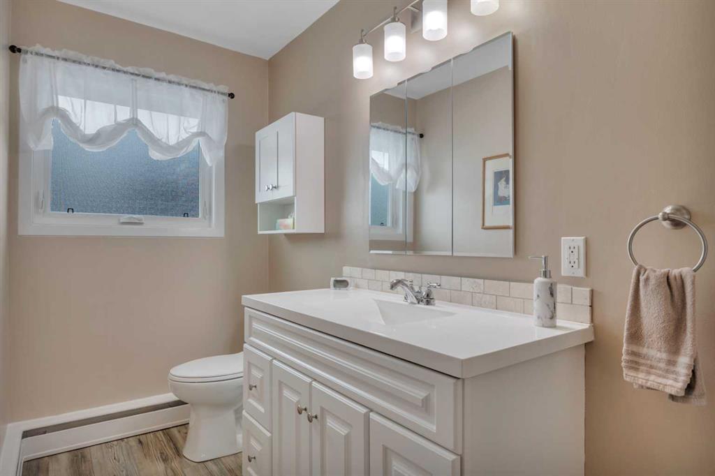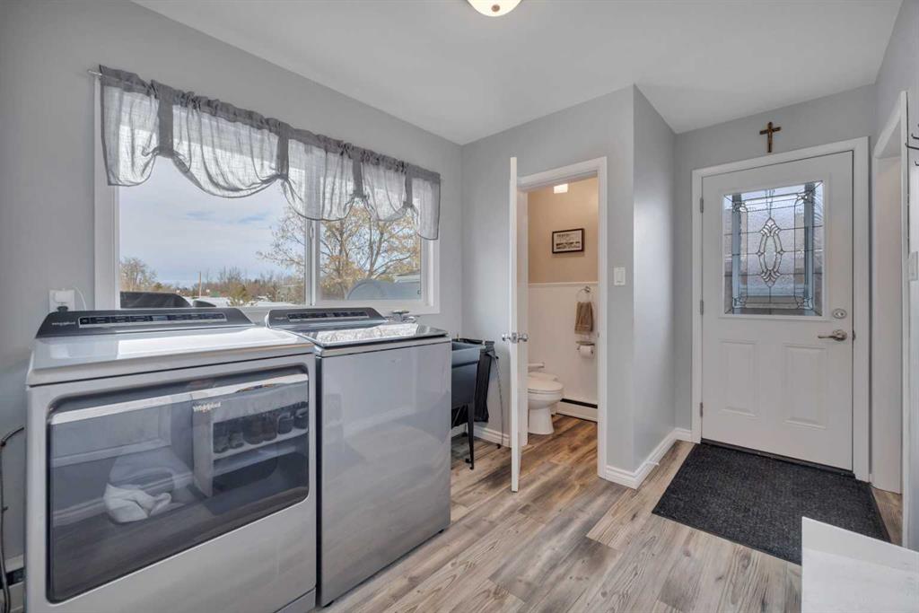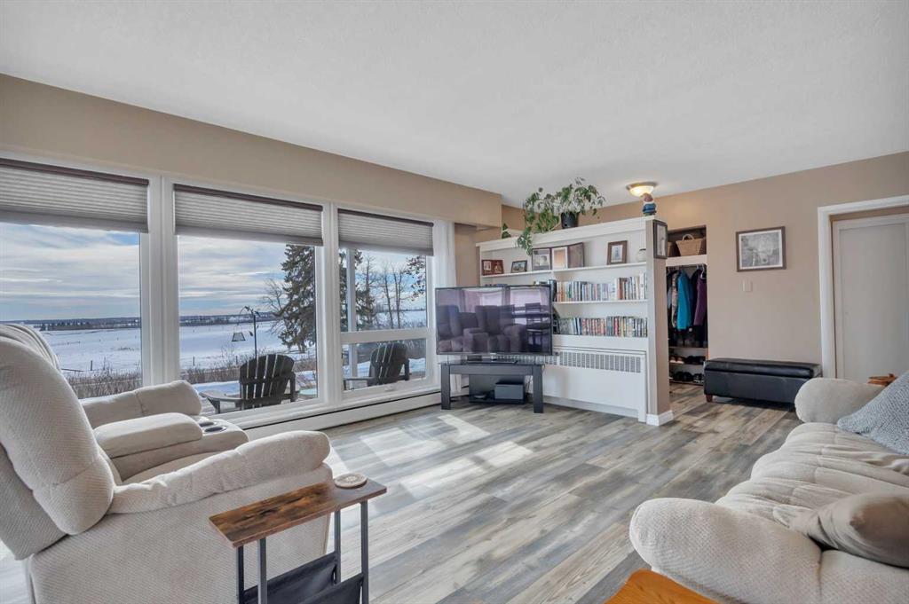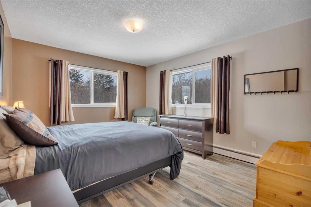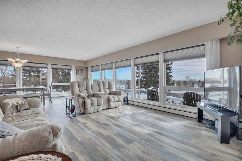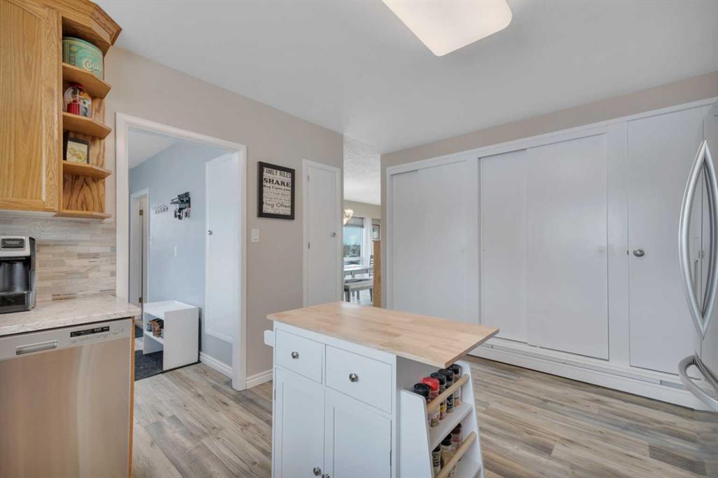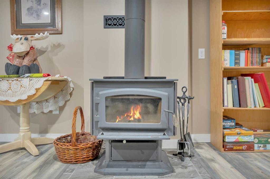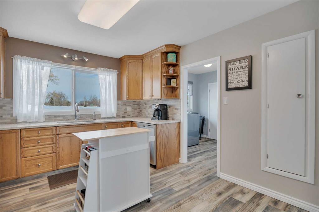 This place is a hole-in-one — perfectly teed up on top of the hill right beside the golf course. Sitting on 1.73 acres inside city limits, this fully renovated property is packed with upgrades that matter. Newer roof, newer electrical panel, full septic replacement (2023), zoned HVAC with independent climate control on each level, on-demand hot water, and added attic insulation. Move in knowing the big-ticket items are done. The main floor features a king-sized primary retreat with an upgraded ensuite, floor-to-ceiling vinyl windows that flood every room with natural light, new vinyl plank flooring and carpet throughout, custom blinds, and fresh paint top to bottom. The kitchen is clean and functional — ceiling-height cabinetry, quartz countertops, newer appliances including an induction range, and a large window over the sink framed by trees. Built-in shelving in the living room adds character and storage. Main floor laundry and a spacious mudroom with its own two-piece bath round out the everyday essentials. The lower level is fully self-contained. A large family room anchored by a cozy wood stove, two oversized bedrooms with above-grade windows, a full bathroom, a second living area, and cold storage. The full kitchen downstairs includes cabinetry for days, a stove, fridge, dishwasher, and pantry, with roughed-in laundry hookups ready to go. A lockable door between levels allows each floor to function independently — ideal for multi-generational living, extended family, or anyone who values flexibility and separation. Outside matches inside. A wraparound deck catches southern and eastern sun, while the fully fenced yard is lined with lilacs, raspberry bushes, and Saskatoon berries. Two gated access points, RV parking, an extended driveway, a heated double detached garage, and a storage shed give you room for every vehicle, project, and hobby. No one in front, no one behind — just open sky, golf course views, and your own patch of paradise. You're across from the ball diamonds, steps from a seasonal farmers' market, and two minutes to the clubhouse. Red Deer is under 20 minutes; Edmonton International about an hour. Space, privacy, updates, and a layout that works however you need it to. Don't wait — book your showing before someone else sinks it.