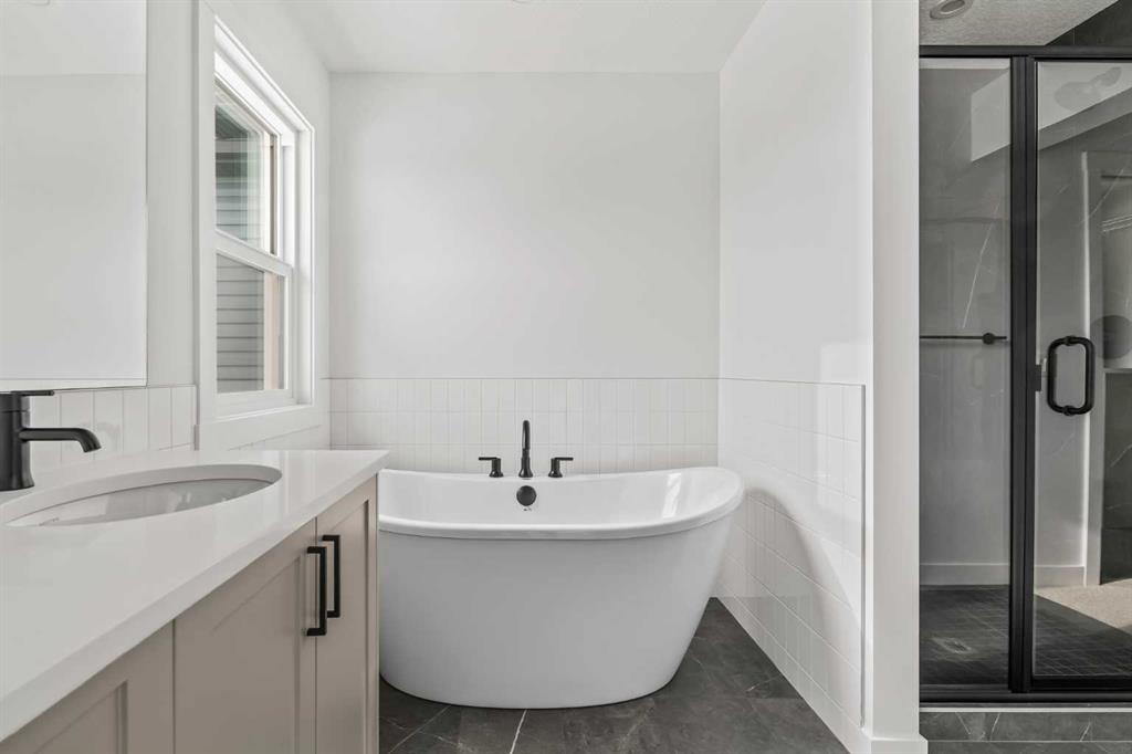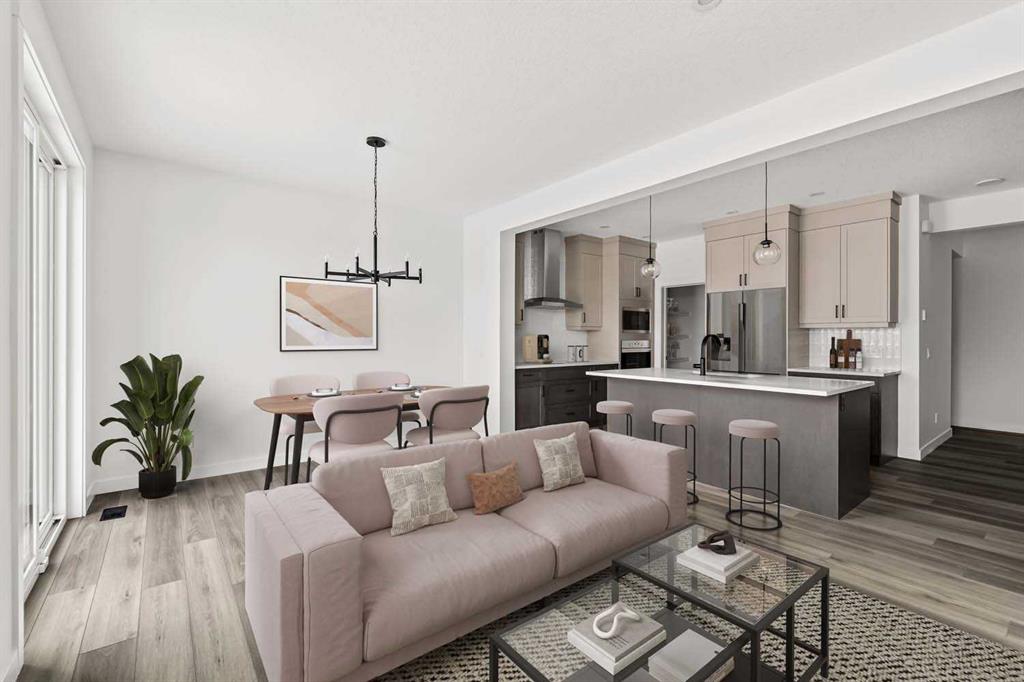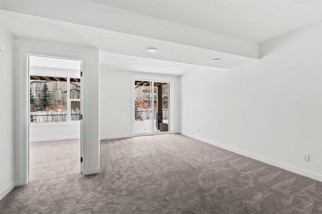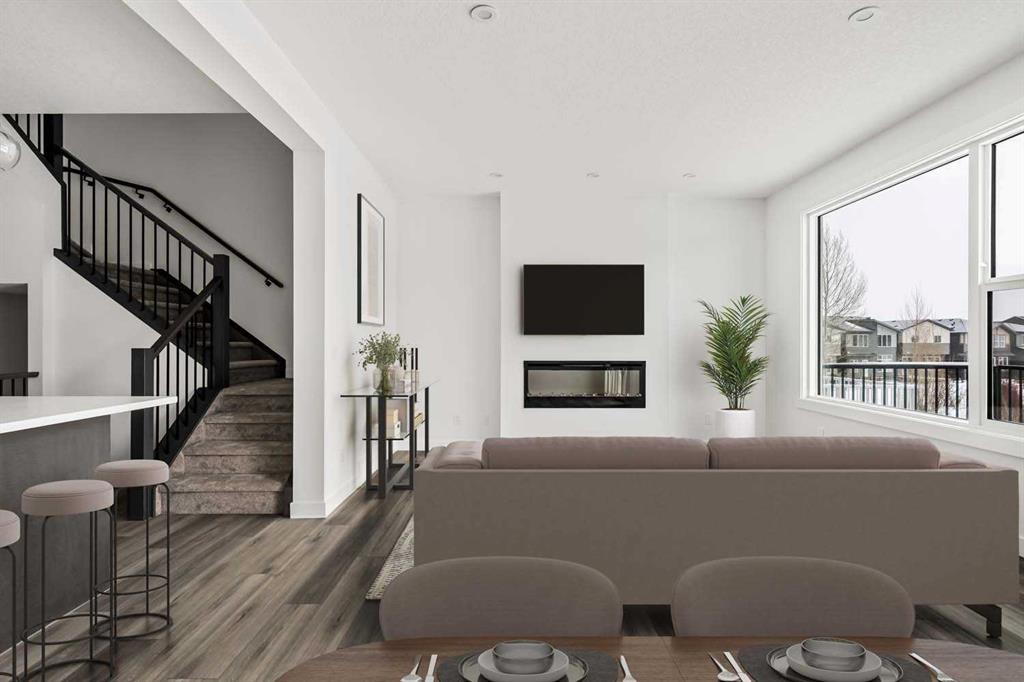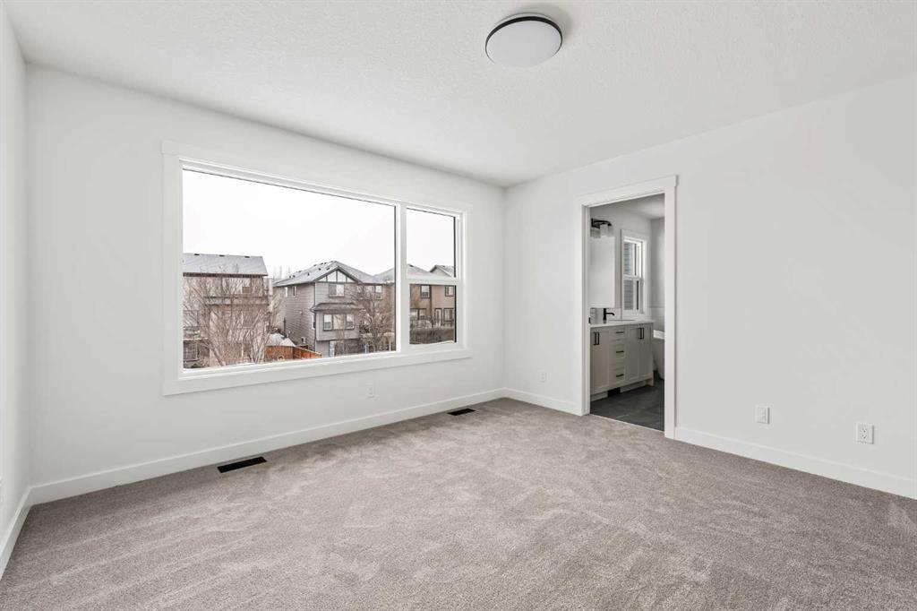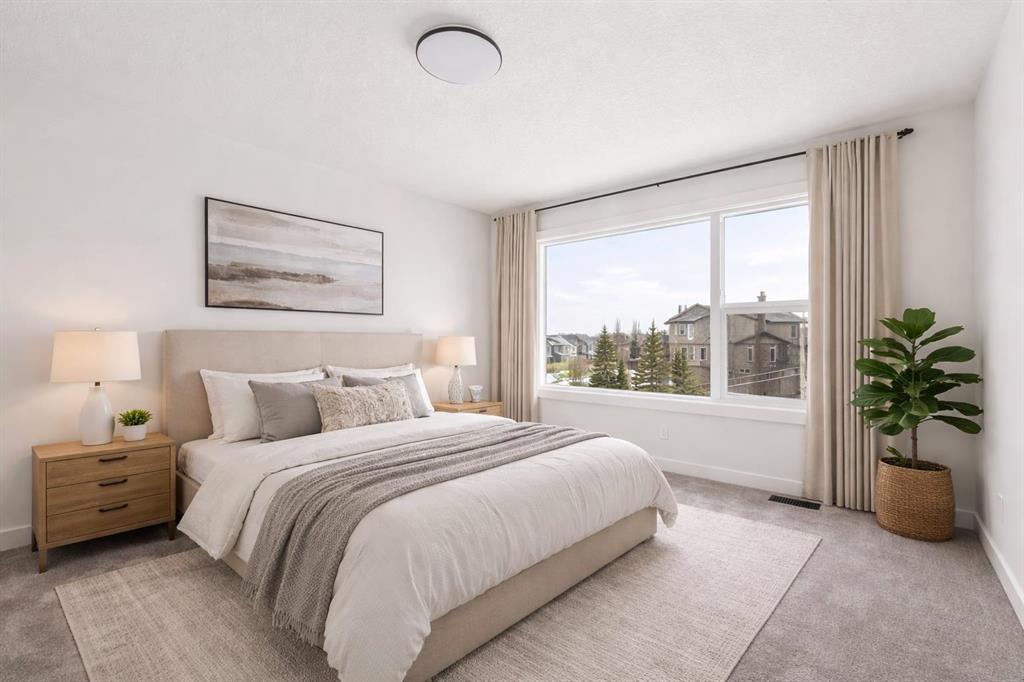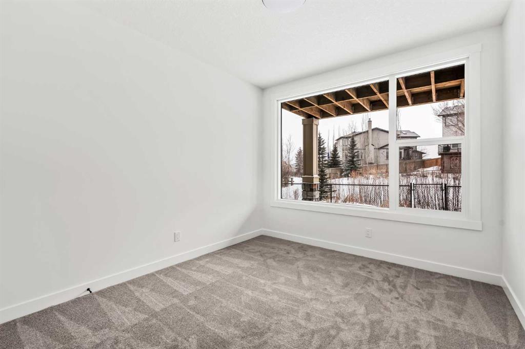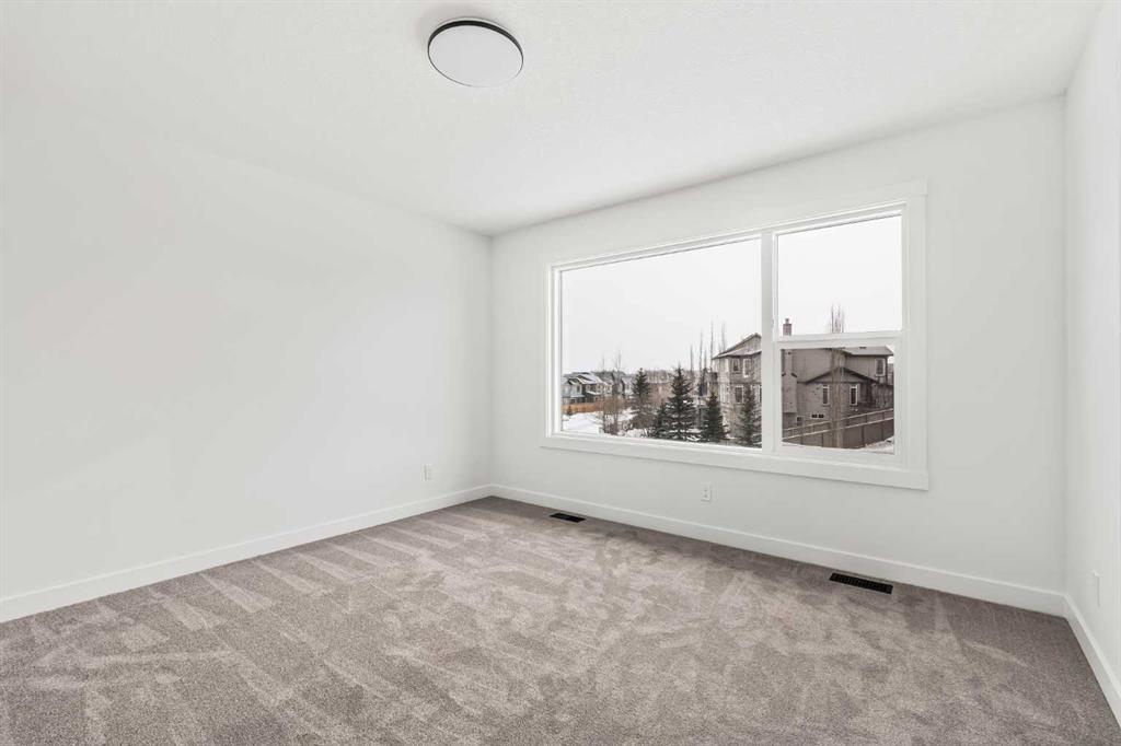 Welcome to 215 Silver Spruce Grove SW - a beautifully designed, brand-new home by Brookfield Residential, located in the desirable community of Silverado. Offering nearly 2,000 sq. ft. of thoughtfully planned living space above grade, this 4-bedroom, 3.5-bathroom Rundle 24 Prairie model features a fully developed walkout basement and a double attached garage, delivering the perfect blend of style, space, and functionality. The main floor welcomes you with a bright, open-concept layout designed for both everyday living and entertaining. At the heart of the home is a gourmet kitchen, complete with built-in oven and microwave, gas cooktop, chimney hood fan, upgraded fridge, and sleek quartz countertops throughout. An undermount Silgranite sink with a matte black Moen faucet adds a modern touch, while the walk-through pantry connecting to the mudroom enhances convenience. The kitchen flows seamlessly into the dining area and great room, where an electric ribbon fireplace and added pot lighting create a warm, inviting atmosphere. Elegant spindle railing adds architectural interest and guides to the second level. Upstairs, a spacious bonus room provides a functional separation between the primary suite and secondary bedrooms. The primary retreat features a walk-in closet and a well-appointed 5-piece ensuite with dual sinks, a fully tiled shower with niche, and a private water closet. Two additional bedrooms, a full 4-piece bathroom, and an upper-level laundry room - complete with washer and dryer - round out the upper floor, along with a convenient pocket door connecting the primary closet to the laundry. The fully developed walkout basement expands your living space with 9’ foundation wall, a large recreation area, an additional bedroom, and a 4-piece bathroom - ideal for guests or multi-generational living. Outside, the home truly stands out with its rare setting - backing directly onto green space while also fronting green space for added privacy and serene views. The south-facing backyard is perfect for enjoying all-day sun, and the rear balcony is equipped with a gas line for your BBQ, making it ideal for entertaining or relaxing summer evenings. Located close to parks, schools, shopping, and major routes, this Silverado home offers comfort, convenience, and elevated design throughout. Both Builder Warranty and Alberta New Home Warranty are included, allowing you to purchase with confidence and peace of mind. Buy now and be settled right away into your brand new home!