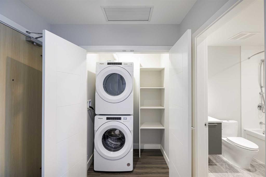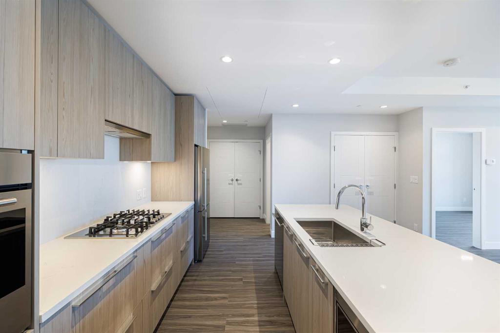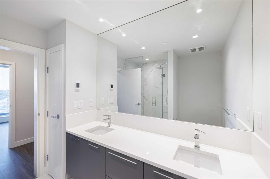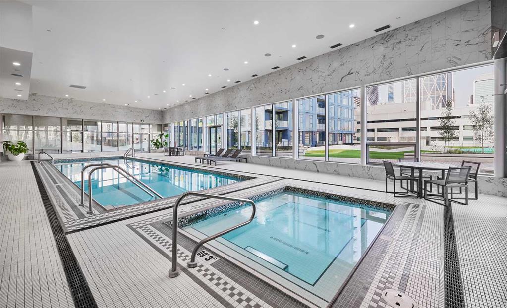 Experience the pinnacle of urban living in this exquisite 2-bedroom, 2-bath suite. With every detail meticulously designed, this luxurious residence offers an unparalleled blend of contemporary style, comfort, and convenience. From the moment you step inside, you’ll be greeted by an expansive open-concept living space, bathed in natural light from floor-to-ceiling windows. The living area flows effortlessly into a gourmet kitchen that’s as stylish as it is functional, featuring high-end stainless steel appliances, sleek quartz countertops, and custom cabinetry. Whether you’re hosting guests or enjoying a quiet evening, this space offers the perfect setting for every occasion. The master suite is a true retreat, offering generous space and a private ensuite bathroom with spa-like finishes. The second bedroom is equally spacious and perfect for guests, family, or a home office. With a second full bathroom nearby, this suite provides the perfect balance of luxury and practicality. Building Amenities You’ll Love: Step outside your front door and into a world of five-star amenities designed to enhance your lifestyle. Take a dip in the sparkling swimming pool, unwind in the hot tub, or indulge in a rejuvenating session in the sauna or steam room. Stay active and fit in the state-of-the-art fitness centre, and relax or entertain friends in the stylish resident lounge. For pet lovers, a dedicated pet park is just steps away, giving your furry friends the space they need to play and explore. With 24/7 security and concierge services, your safety and convenience are always a priority. You’ll also enjoy the peace of mind that comes with living in a building that’s designed with your every need in mind. An Unbeatable Location: This stunning suite is ideally located near the picturesque Riverwalk, providing the perfect backdrop for morning strolls or evening jogs. Step outside and discover a world of dining, shopping, and entertainment options, with restaurants, cafes, and a grocery store just moments away. Whether you’re looking to unwind or explore, everything you need is right at your doorstep. This is more than just a place to live – it’s a lifestyle. Live in a brand-new suite that combines elegance, convenience, and luxury in one of Calgary’s most desirable neighborhoods Don't miss the opportunity to make this luxurious East Village residence your new home. It’s everything you’ve been looking for – and more.
