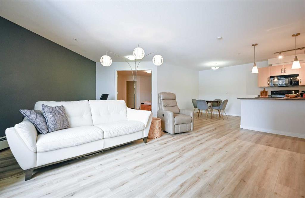 Welcome to this spacious second-floor 1-bedroom plus den condo in Aurora Estates. Featuring durable vinyl plank flooring throughout, this unit offers both style and low-maintenance living. The versatile den includes a walk-in closet—perfect for a home office or additional storage. The functional layout includes a 4-piece main bathroom and a convenient in-unit laundry room with extra storage space. The galley-style kitchen flows into a generous dining area, leading into a bright living room with access to a private balcony—ideal for relaxing or entertaining. Located close to a wide range of amenities including FreshCo, Starbucks, Shoppers Drug Mart, and more, this home also offers the convenience of being within walking distance to Riverstone School.