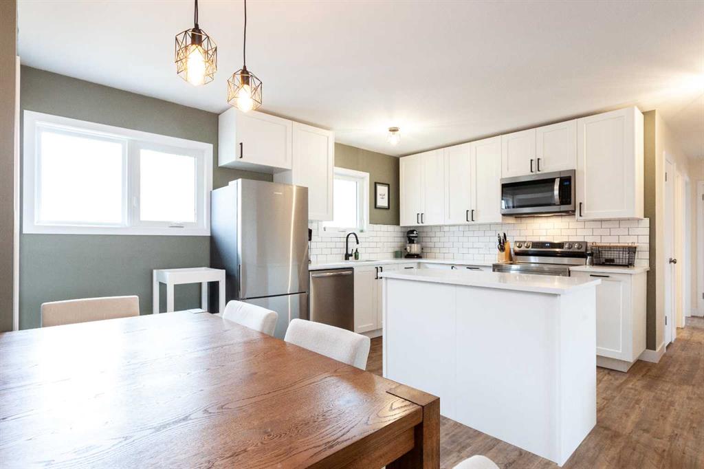 Before we get onto the storybook remarks about this incredible Schuler, Alberta home, let's get the hard facts out the way. The roof is BRAND NEW, the main floor has been completely renovated with an entirely new kitchen and main bathroom and floors throughout, The lot spans across 3 full lots including an open corner lot just begging for a large shop. With that aside, here is the promised storybook: Welcome to your dream home in the serene town of Schuler, Alberta. This completely renovated beautiful bungalow offers a perfect blend of modern comfort and rustic charm, providing ample space for your family's needs. With 1,090 square feet of living area, a HUGE lot, and a delightful view of Schuler Lake just across the street, this property is a true gem. As you step inside, you'll be greeted by a bright, modern, inviting ambiance. The open-concept layout seamlessly connects the living area, dining space, and kitchen, creating an excellent flow for entertaining and daily living with a brand-new kitchen island to gather around. The interior boasts an abundance of natural light that illuminates the space and accentuates its welcoming atmosphere. The heart of the home, the kitchen, has been completely renovated with brand new cabinets, quartz countertop, backsplash, sink, and appliances offering both functionality and style. Whether you're a culinary enthusiast or just love to gather around the table, this kitchen will be a pleasure to use. With five spacious bedrooms, there's no shortage of space for a growing family or visiting guests. The bedrooms are thoughtfully designed to offer comfort and privacy, making this home ideal for a variety of lifestyles. This 5-bedroom bungalow is a rare find in Schuler, offering ample space, modern amenities, and a stunning pond view and a huge lot. Don't miss the chance to call this peaceful retreat your home. Schedule a viewing today and experience the tranquility and charm of this lovely property firsthand.