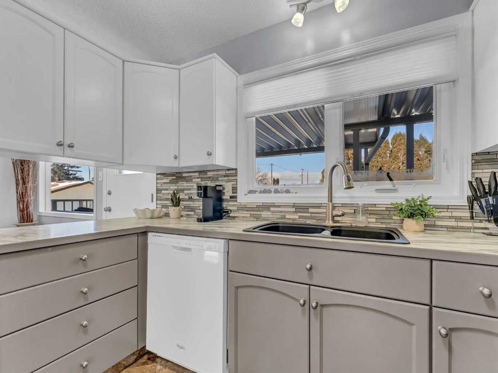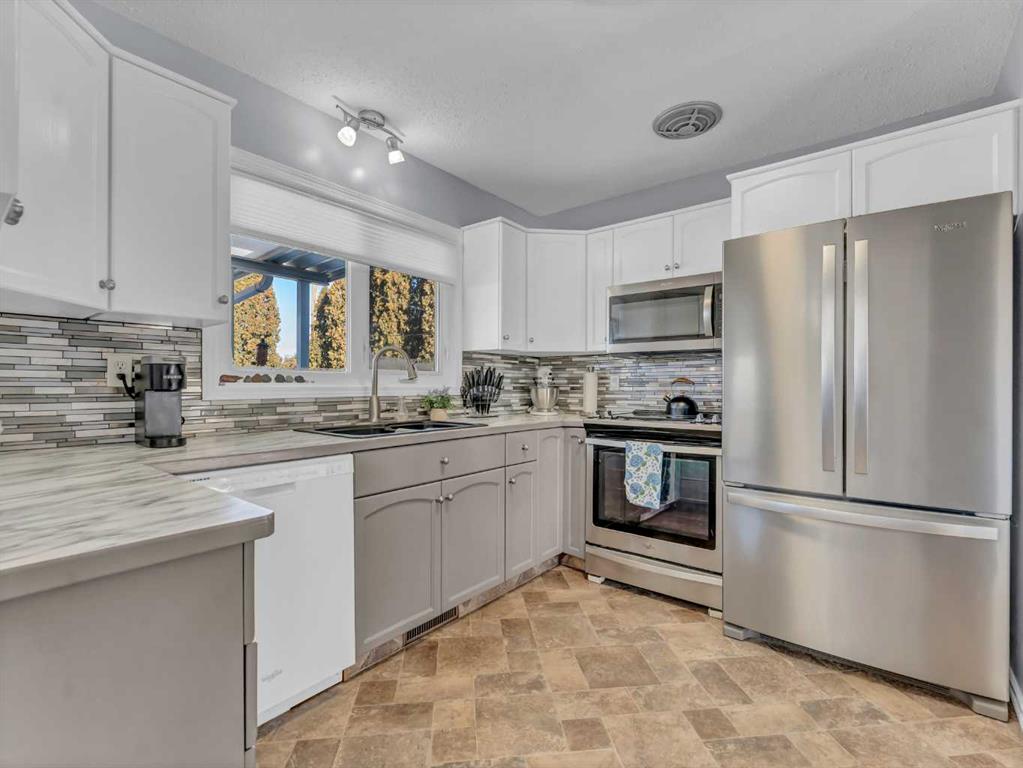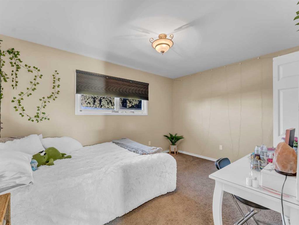 MOVE-IN READY family home in a highly desirable location, perfectly positioned with a greenbelt out front and a park directly behind—offering privacy, views, and only one neighbouring property. From the moment you step inside, you’re welcomed by an abundance of natural light and a thoughtfully designed main floor that blends functionality with modern finishes. The spacious living room flows seamlessly into the dining area, creating an ideal space for everyday living and entertaining. A versatile flex room on the main floor adds exceptional value—perfect for a home office, gym, reading nook, or playroom. The kitchen is both stylish and practical, featuring well-appointed cabinetry, pull-out pantry storage, and ample counter space. Large windows in the kitchen and dining area overlook the beautifully maintained backyard and park beyond, bringing the outdoors in. Step directly from the dining room onto the generous covered deck—ideal for relaxing or hosting guests. The backyard also offers convenient RV parking with alley access. The main floor is complete with two well-sized bedrooms and a full 4-piece bathroom. Downstairs, the fully developed basement expands your living space with a large bedroom currently used as the primary retreat, complete with a walk-in closet. The spacious family room is perfect for gatherings, movie nights, or entertaining. An additional bedroom, a 3-piece bathroom, and abundant storage complete the lower level. Additional features include an attached garage and a rare setting with a park behind and alley access, enhancing both privacy and convenience. A true turnkey property in today’s market—this home is ready for its next owners to move in and enjoy. Book your showing today.