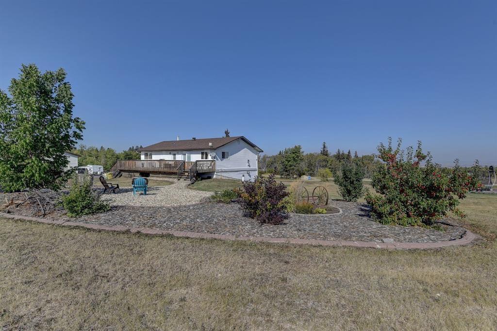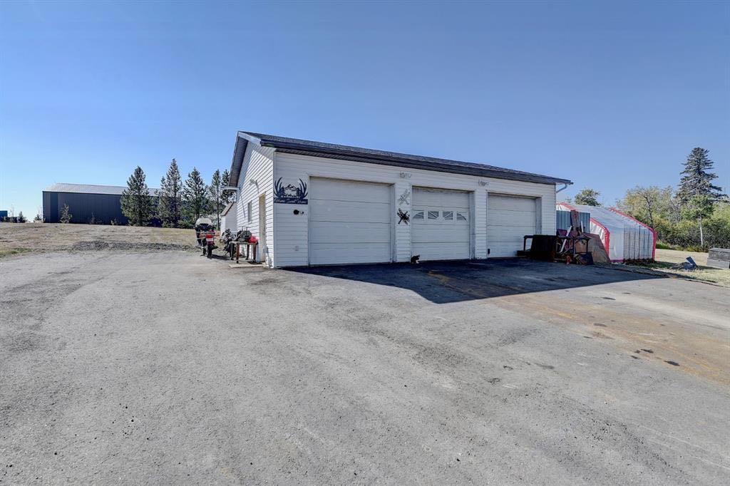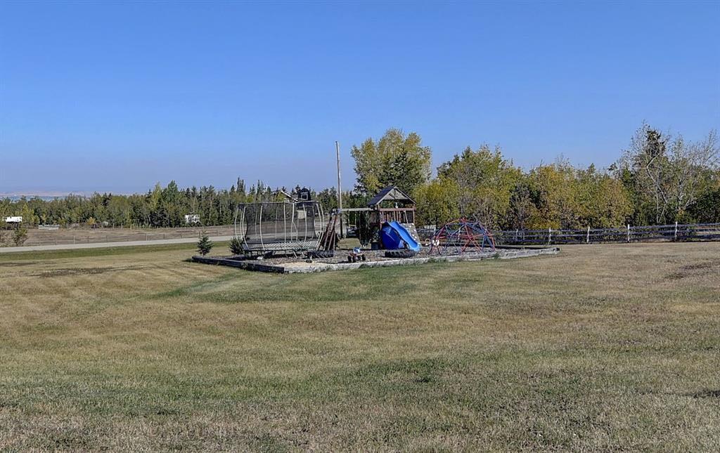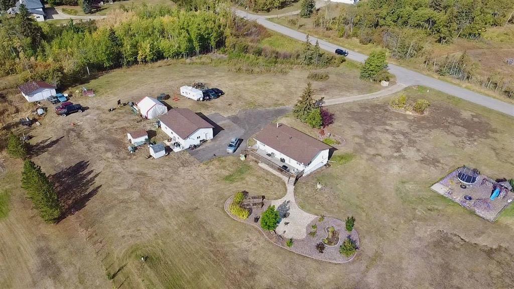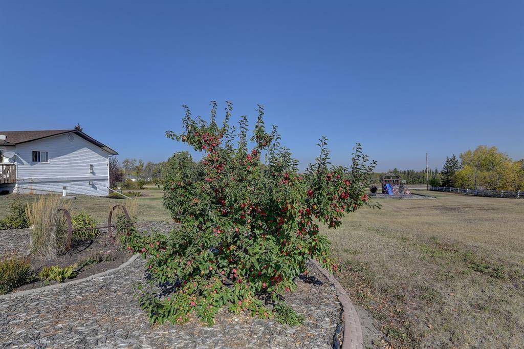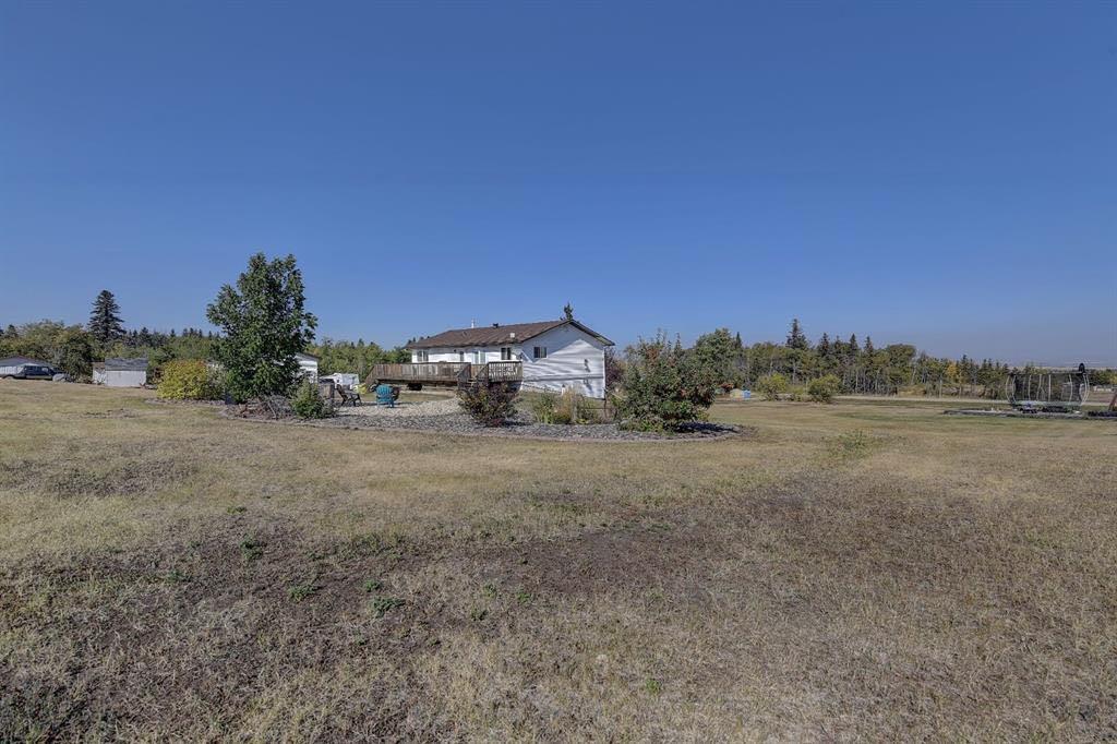 Acreage living in Lakeview Estates! Only minutes from city limits this 3.66 acre property is zoned CR4 and offers the perfect blend of country living and convenience at an affordable price. Featuring numerous updates including windows, roof, appliances, septic system, well — making it truly the perfect family home. Inside, you’ll find 5 spacious bedrooms, three full bathrooms, plenty of natural light and many tasteful renovations throughout. The finished walk out basement is thoughtfully set up providing more than enough space for the whole family. Enjoy the extra space of a triple-car garage for vehicles, toys, and storage, plus several smaller outbuildings ideal for garden sheds or hobby use. For those who enjoy outdoor living, this property has a well maintained fire pit + garden area, loaded apple trees and saskatoon bushes as well as a large kids playground area. Heated triple garage measures 28x36. The stunning view is one you'll enjoy all year round! *list of all updates available upon request*
