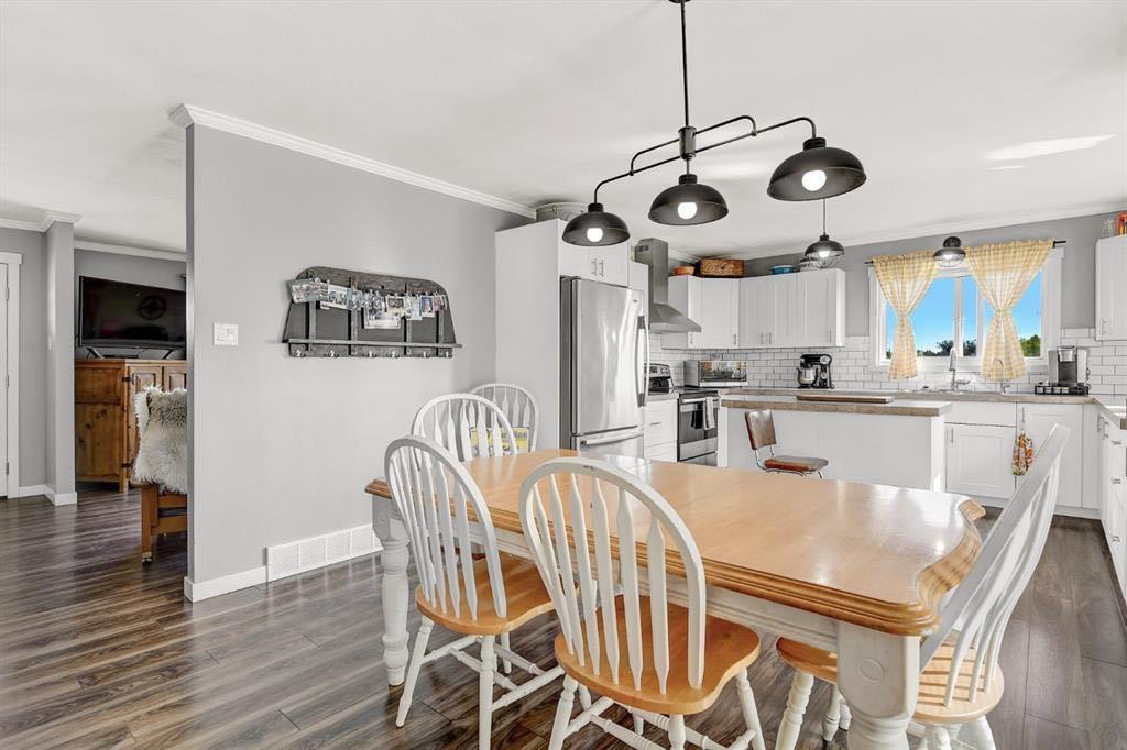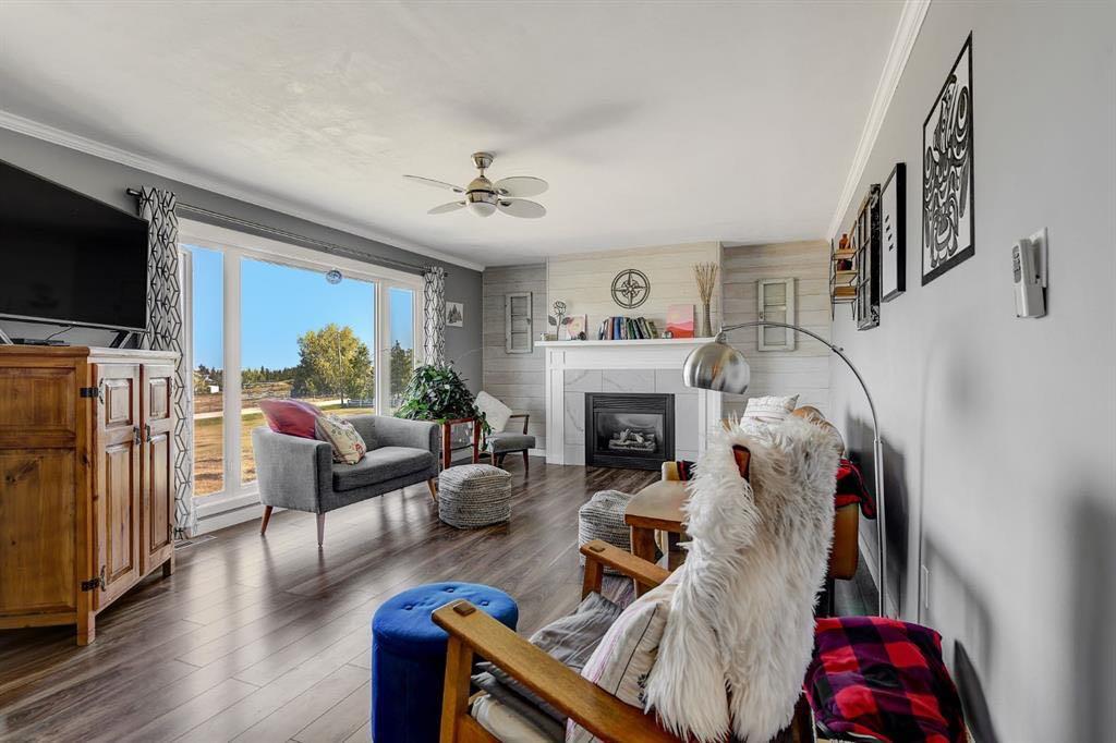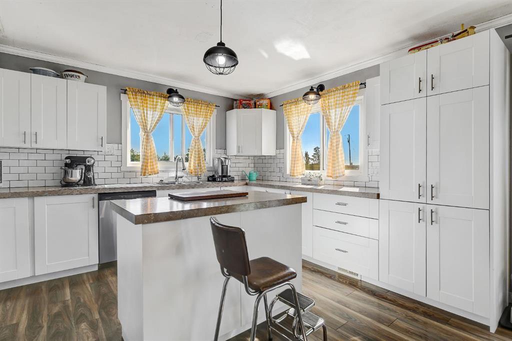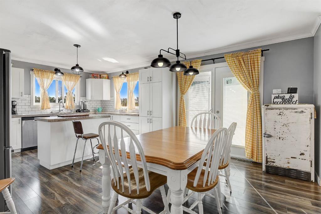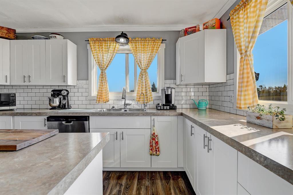 Acreage living in Lakeview Estates! Only minutes from city limits this 3.66 acre property is zoned CR4 and offers the perfect blend of country living and convenience at an affordable price. Featuring numerous updates including windows, roof, appliances, septic system, well — making it truly the perfect family home. Inside, you’ll find 5 spacious bedrooms, three full bathrooms, plenty of natural light and many tasteful renovations throughout. The finished walk out basement is thoughtfully set up providing more than enough space for the whole family. Enjoy the extra space of a triple-car garage for vehicles, toys, and storage, plus several smaller outbuildings ideal for garden sheds or hobby use. For those who enjoy outdoor living, this property has a well maintained fire pit + garden area, loaded apple trees and saskatoon bushes as well as a large kids playground area. Heated triple garage measures 28x36. The stunning view is one you'll enjoy all year round! *list of all updates available upon request*