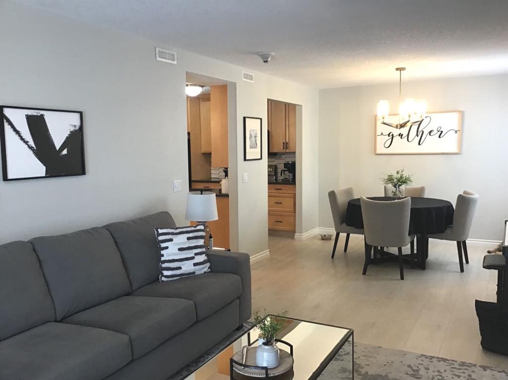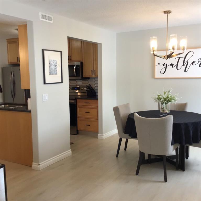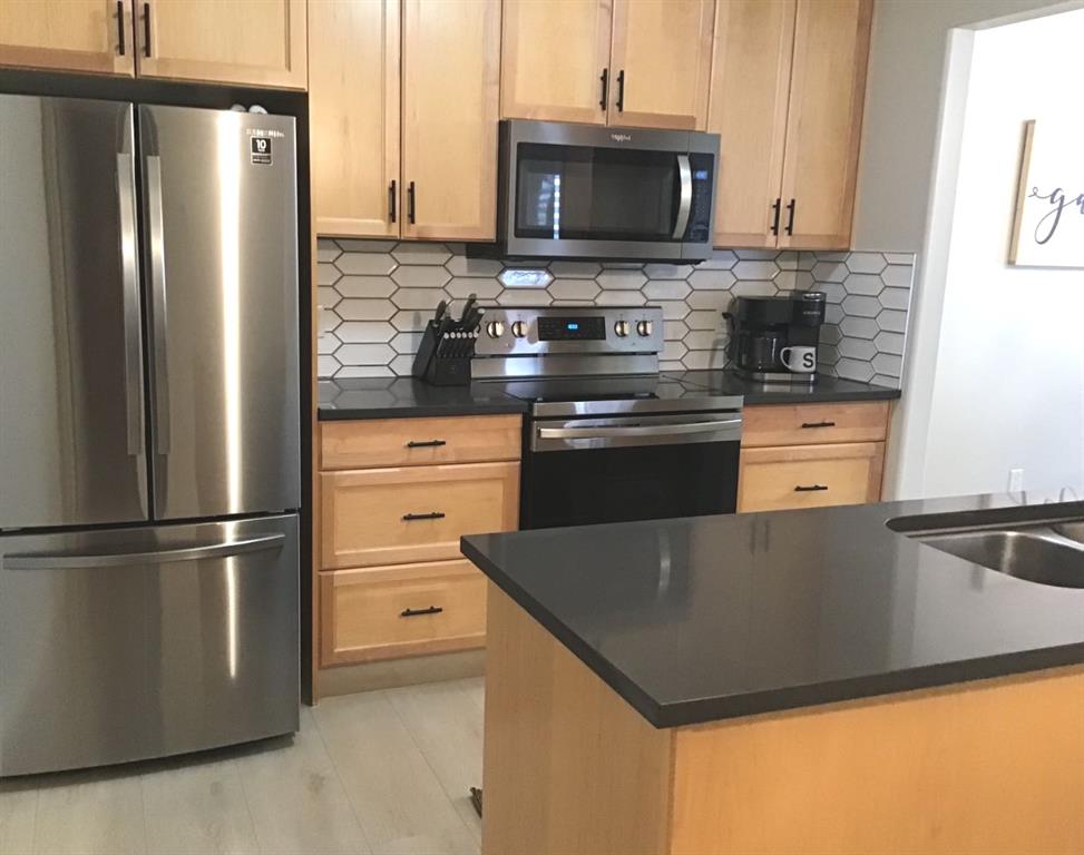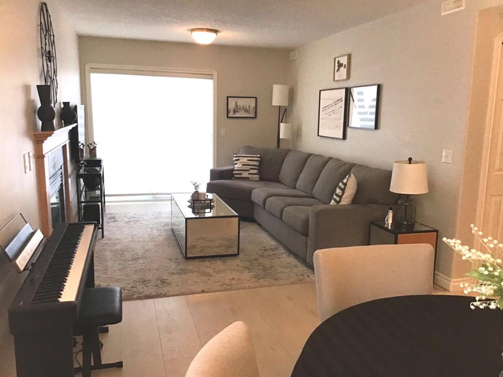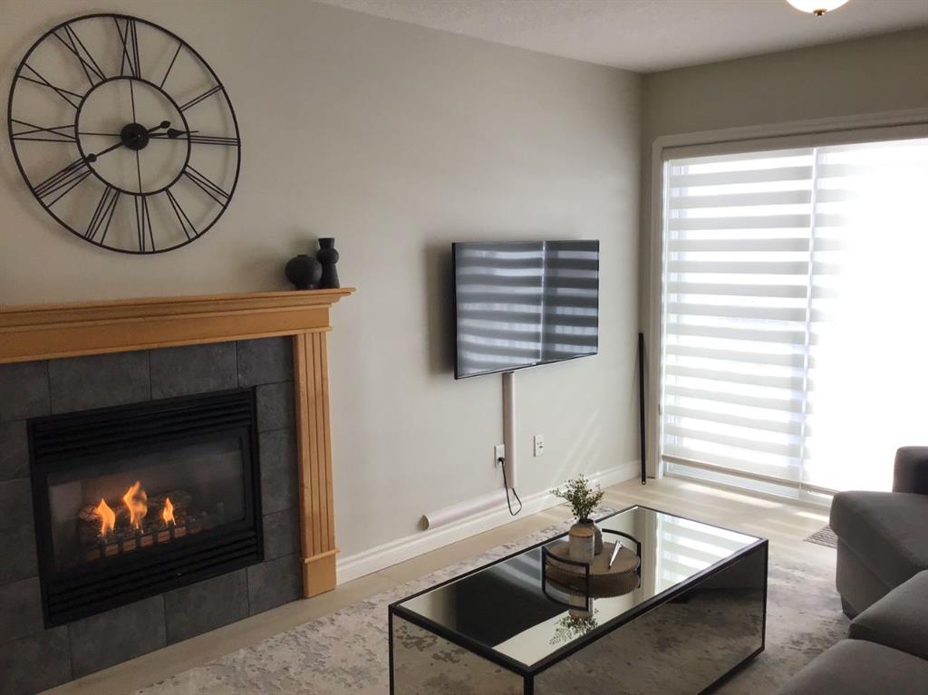 Discover an exceptional opportunity in the heart of Whitecourt with this stunning 2-bedroom, 1-bathroom condo located in the desirable Summer Downs condominiums, built in 2008. Recently renovated, this home showcases modern elegance with new flooring, fresh paint, stylish light fixtures, and exquisite quartz countertops. The beautiful shadow blinds, complemented by drapes, add a touch of sophistication to the living spaces. Equipped with six essential appliances and air conditioning, this condo promises comfort and convenience. The in-suite laundry features stackable units, enhancing the practicality of daily living. The well-thought-out floor plan seamlessly connects the living room and dining area, creating an inviting atmosphere perfect for entertaining or relaxing. The fabulous kitchen boasts ample cabinetry and stone countertops, pot drawers, and pantry making it a chef's dream. A cozy gas fireplace adds warmth to the living area, while patio doors lead to a charming covered deck, perfect for outdoor enjoyment. With condo fees set at $420 per month, residents benefit from included heating, water, building insurance, and comprehensive maintenance services, including snow removal and grass cutting. This economically priced property offers an affordable lifestyle without compromising on quality. Situated in the vibrant downtown area, this condo is conveniently close to schools, churches, shopping centers, drugstores, service stations, parks, a golf course, ball diamonds, and much more. Experience the perfect blend of comfort, style, and location in this exceptional condo.