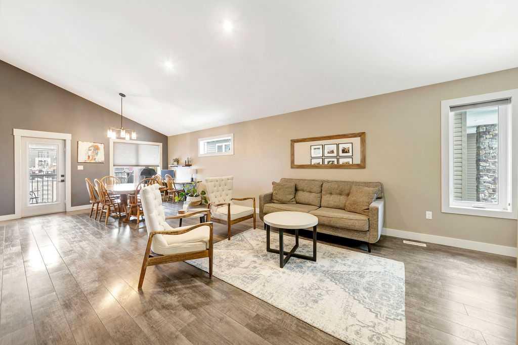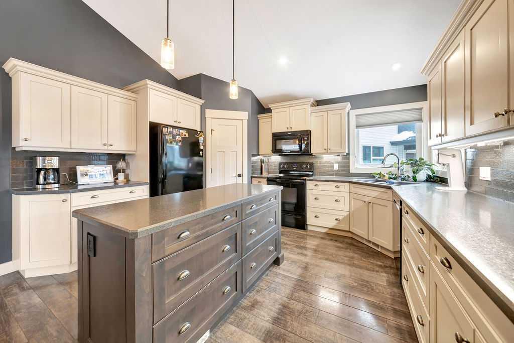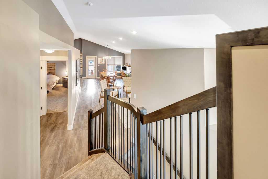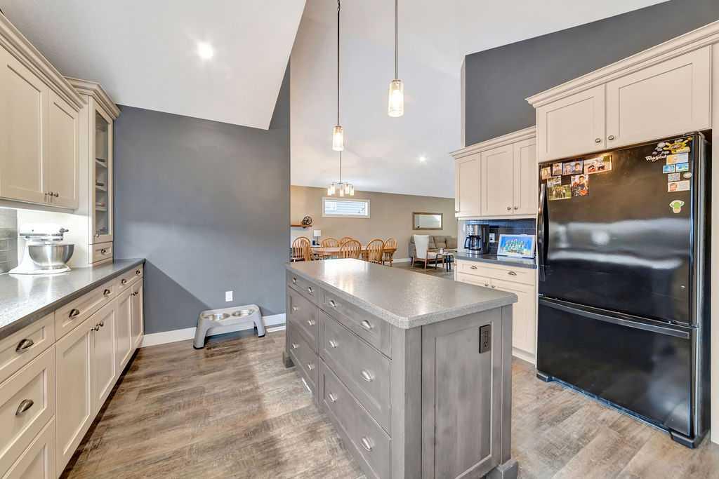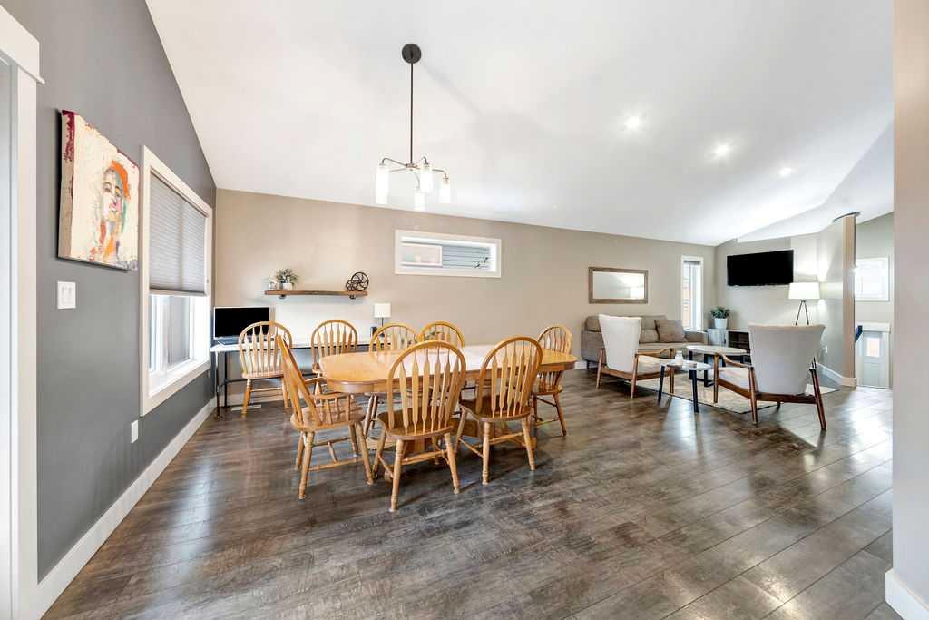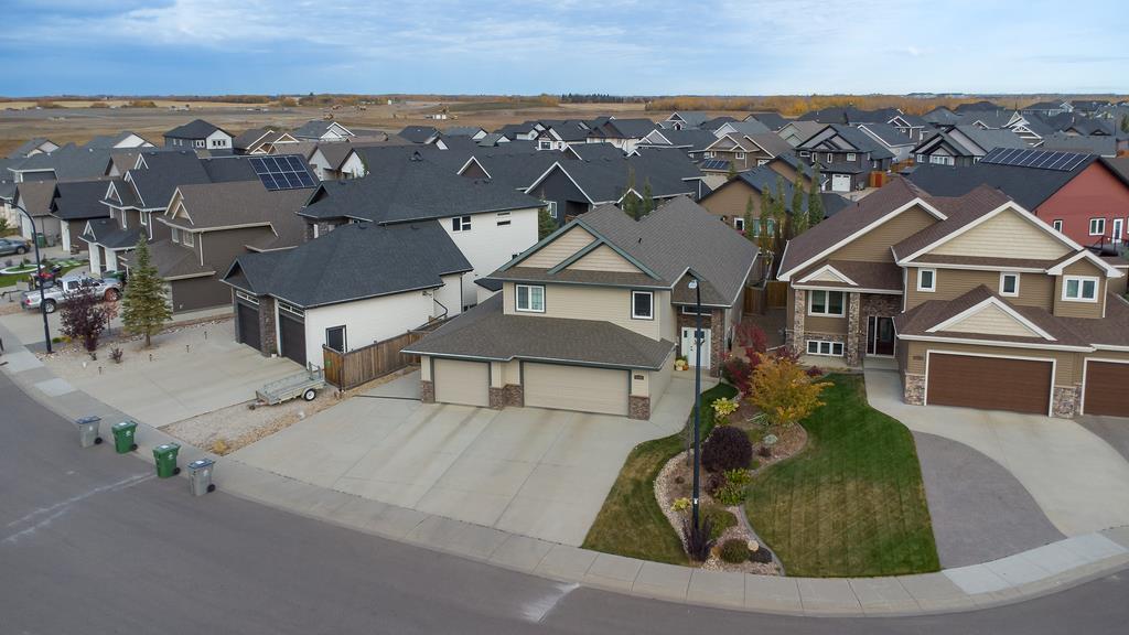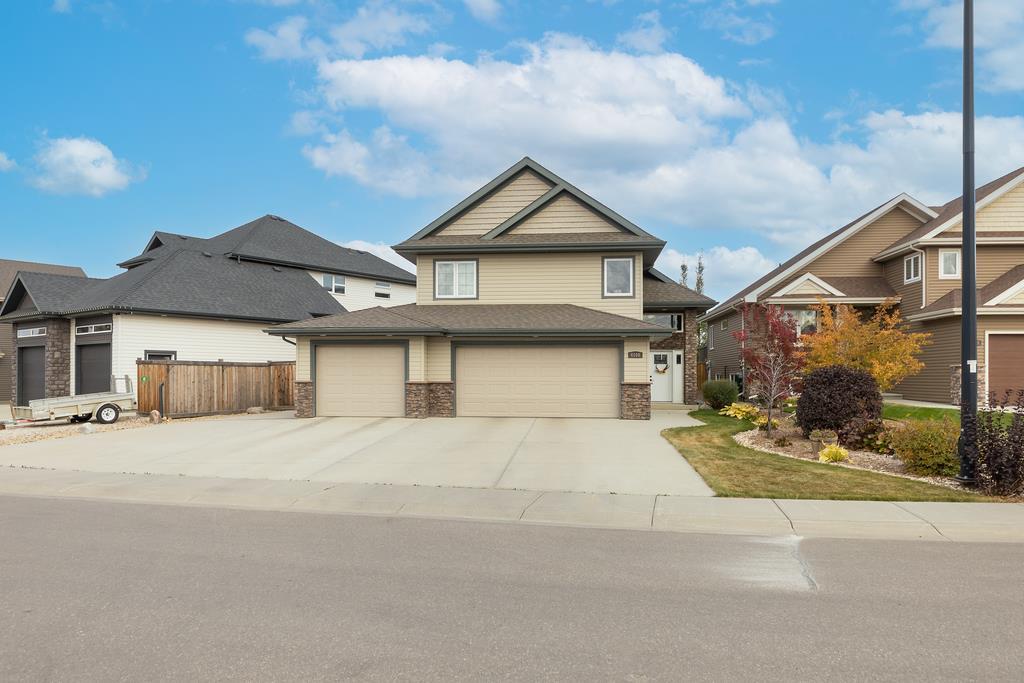 Tucked away in a quiet cul-de-sac, this well-designed modified bi-level offers space, function, and comfort for the whole family. Featuring a triple attached heated garage, this home is perfect for those needing extra room for vehicles, toys, or a workshop. The main level welcomes you with a bright and spacious living area, while the kitchen is neatly positioned at the back of the home, ideal for entertaining without sacrificing flow. A large island anchors the kitchen, providing ample prep and workspace, with the dining area just off to the side and access to a covered deck, perfect for enjoying the outdoors in any season. The primary bedroom is conveniently located on the main floor and features a spacious ensuite. A powder room completes this level. Upstairs, you’ll find two additional bedrooms situated above the garage, along with a well-appointed 4-piece bathroom, perfect for kids or guests. The fully finished basement offers even more living space with a large family room, two additional bedrooms, a full bathroom, and a dedicated laundry room. There’s also handy storage tucked away under the stairs. This home checks all the boxes, thoughtful layout, ample space, and a desirable location in a family-friendly cul-de-sac.