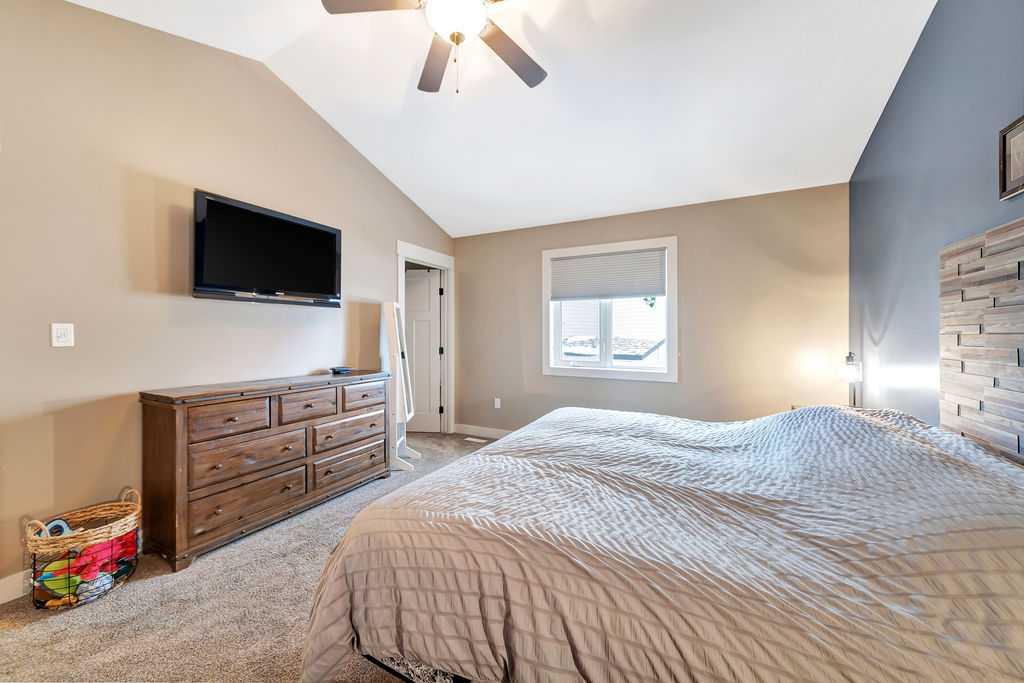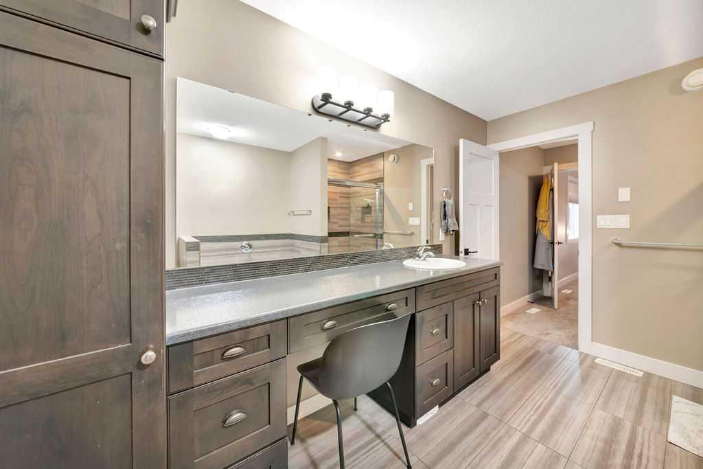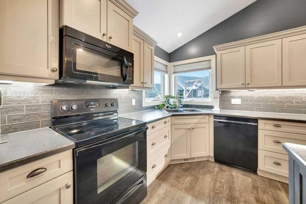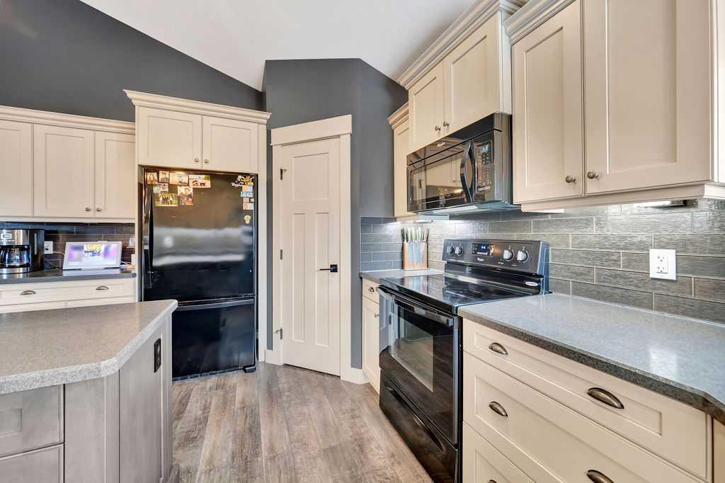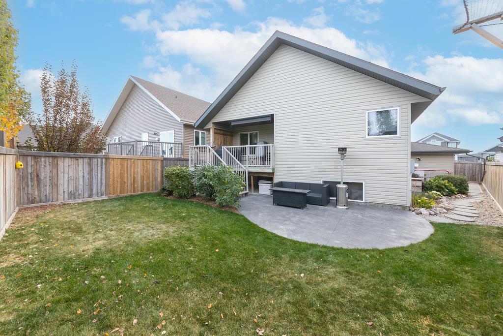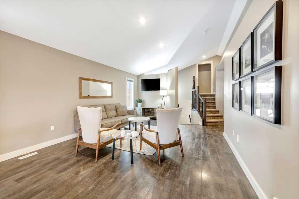 Tucked away in a quiet cul-de-sac, this well-designed modified bi-level offers space, function, and comfort for the whole family. Featuring a triple attached heated garage, this home is perfect for those needing extra room for vehicles, toys, or a workshop. The main level welcomes you with a bright and spacious living area, while the kitchen is neatly positioned at the back of the home, ideal for entertaining without sacrificing flow. A large island anchors the kitchen, providing ample prep and workspace, with the dining area just off to the side and access to a covered deck, perfect for enjoying the outdoors in any season. The primary bedroom is conveniently located on the main floor and features a spacious ensuite. A powder room completes this level. Upstairs, you’ll find two additional bedrooms situated above the garage, along with a well-appointed 4-piece bathroom, perfect for kids or guests. The fully finished basement offers even more living space with a large family room, two additional bedrooms, a full bathroom, and a dedicated laundry room. There’s also handy storage tucked away under the stairs. This home checks all the boxes, thoughtful layout, ample space, and a desirable location in a family-friendly cul-de-sac.