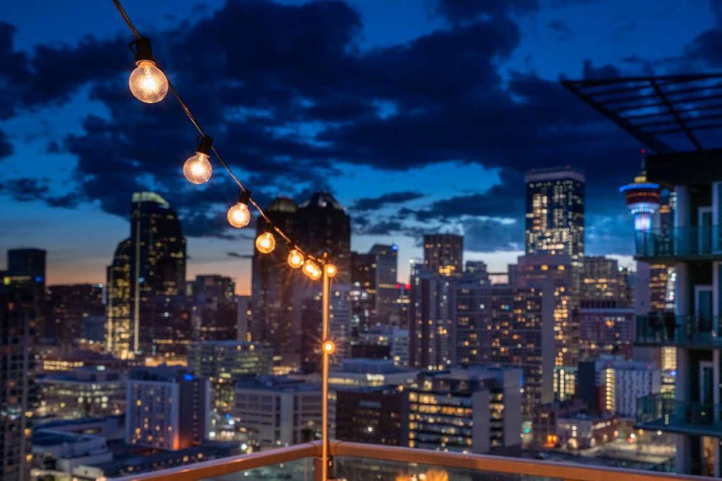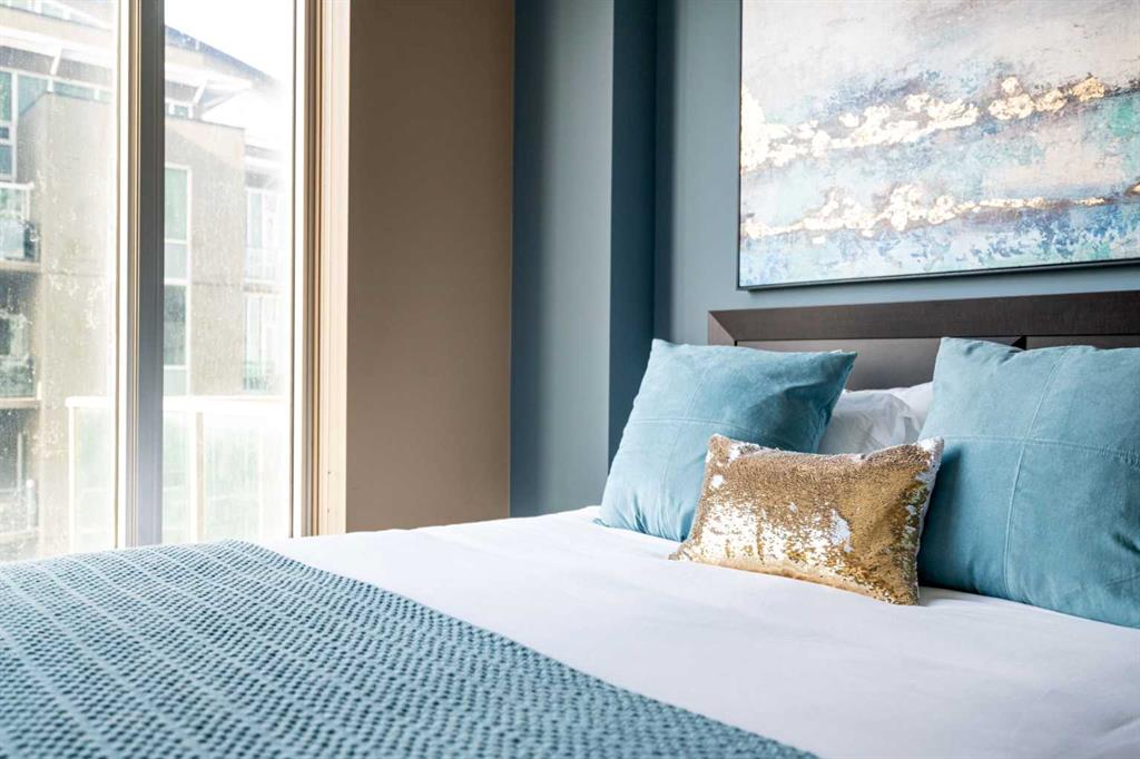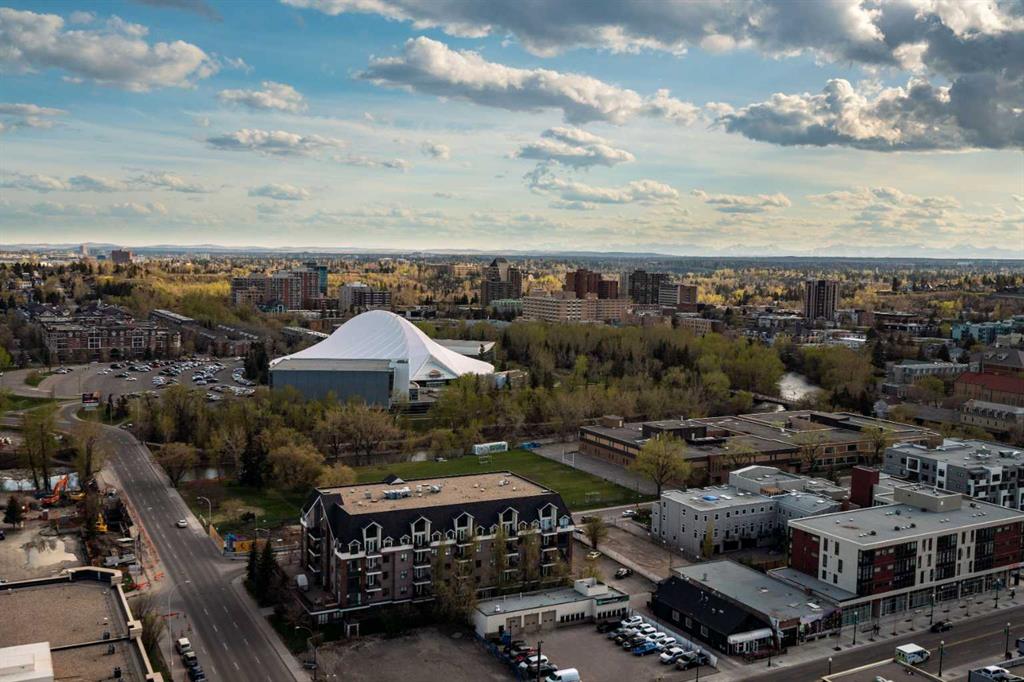 Welcome to your dream home in the heart of the Beltline! This stunning 2-bedroom, 2-bathroom condo offers over 900 sq. ft. of sleek, modern living with unparalleled city and mountain views. Perched high above the city, floor-to-ceiling windows and 10-ft ceilings create a bright, airy, and open atmosphere, showcasing breathtaking vistas of downtown, and the Rocky Mountains. Enjoy west-facing sunsets from your private balcony, the perfect spot to unwind after a long day. The thoughtfully designed layout features a spacious living area, a sleek modern kitchen, and air conditioning to keep you cool in the summer. The primary suite boasts a private ensuite, while the second bedroom offers versatility for guests or a home office. In-suite laundry adds convenience to this urban oasis. This upscale building offers titled underground parking, an assigned storage unit, and exclusive access to a fully equipped fitness center and hot tub. Located steps from the LRT, Stampede Grounds, nightlife, shopping, and entertainment, this is city living at its finest. Don’t miss this opportunity to experience the ultimate urban lifestyle.