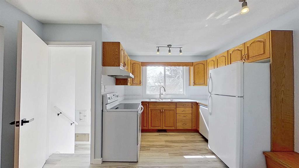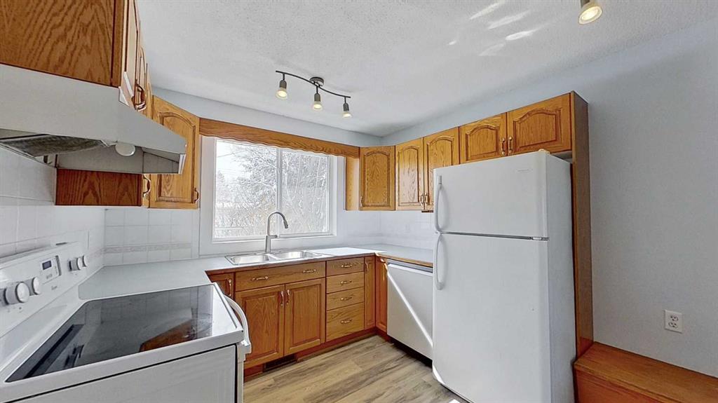Come see this affordable, move-in-ready bungalow in Didsbury! The house has many upgrades and is newly renovated. Located on a quiet, family-friendly cul-de-sac, this property sits on a large lot and is ready for your family. The main floor features a bright, functional layout with three bedrooms and a full bathroom. You’ll find beautifully refinished original hardwood and new vinyl plank flooring throughout. The kitchen is designed for daily life, featuring all standard appliances (fridge, stove, dishwasher) and a practical storage bench nook. The partially developed basement adds significant living space, including two additional bedrooms, a second full bathroom, and a family room featuring a wood-burning stove. This home has been updated with a focus on longevity and energy efficiency, including a high-efficiency furnace, new siding, windows, front steps, and increased insulation for better climate control and lower utility costs. Situated on a massive 60' x 128' lot, the backyard is perfect for playing, relaxing, gardening, or enjoying your own nature sanctuary. It is fully enclosed with maintenance-free vinyl fencing and shaded by mature trees. It features a massive composite deck (350+ sq ft) ready for Canadian BBQs or quiet relaxation. The house includes a single-car garage and additional storage sheds. Location: Didsbury offers a high quality of life with a friendly, small-town atmosphere of 5,000 residents. The house is within walking distance of schools, the downtown core, a swimming pool, golf course, curling/ice arena, and the local hospital. For commuters, Calgary is an easy 45-minute drive away.