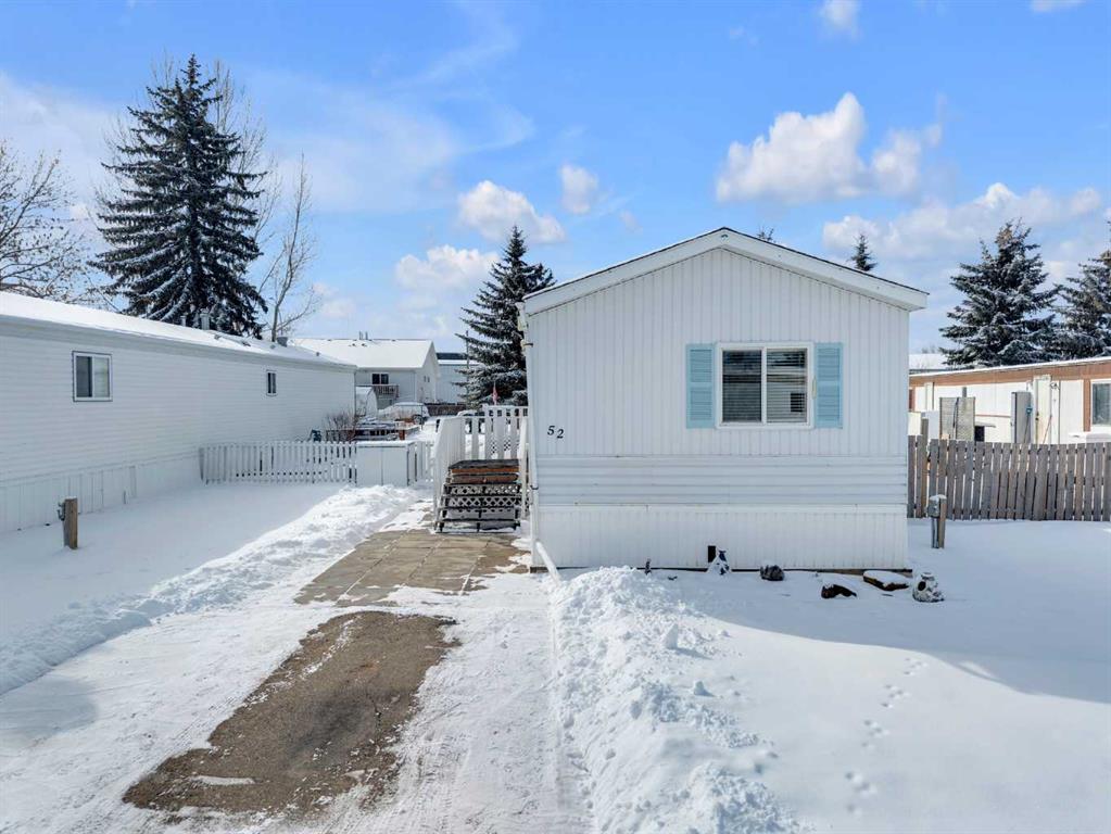 Welcome to #52 4922 Womacks Road, located in the sought after Broadway Mobile Home Park in Blackfalds. This well managed community is known for its quiet setting and convenient location, just minutes to schools, parks, shopping, and with quick access to Highway 2, making commuting to Red Deer or Lacombe easy. This bright and beautifully maintained 3 bedroom, 2 bathroom home shows pride of ownership throughout. The open concept layout creates a warm and inviting space, with plenty of natural light flowing through the main living areas. Whether you are downsizing, starting out, or looking for a low maintenance lifestyle, this home offers comfort and functionality. The kitchen and living space are designed for everyday living, while the thoughtful layout provides separation between bedrooms for added privacy. The primary bedroom features its own ensuite, adding to the convenience of the home. You will appreciate the extra storage this property offers, with two sheds in the backyard, perfect for tools, seasonal items, or hobbies. The yard space is a great bonus, offering room to enjoy the outdoors without the maintenance of a larger property. Additional upgrades include newer double pane windows, improving efficiency and year round comfort. Affordable, well cared for, and in a great location, this is an excellent opportunity to get into the Blackfalds market.