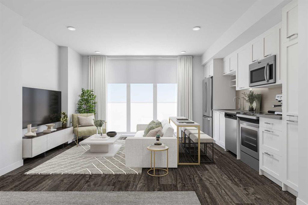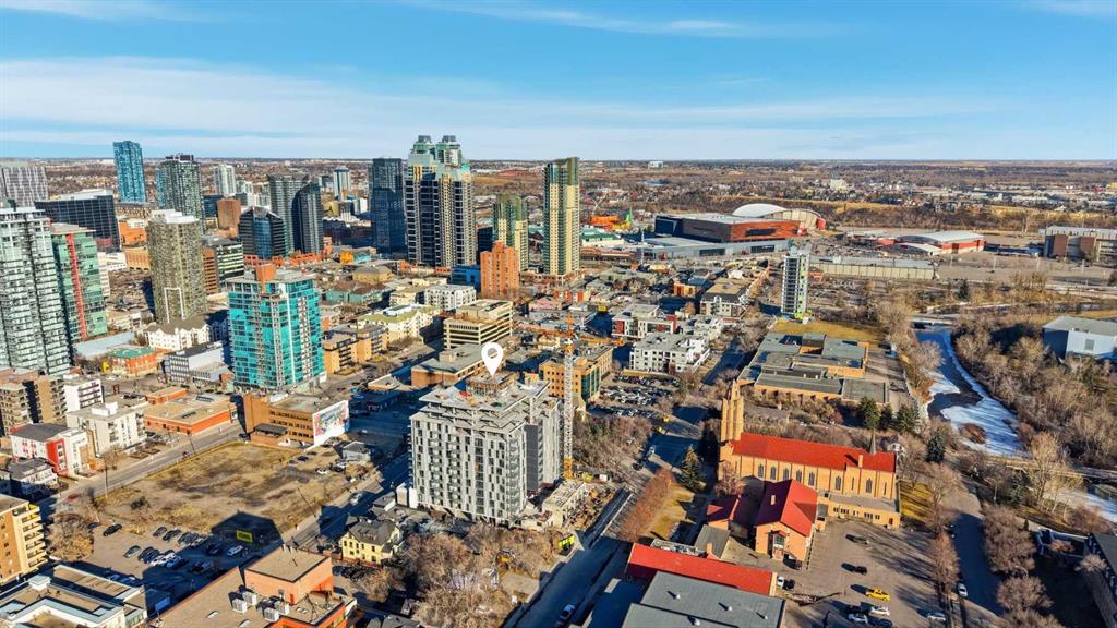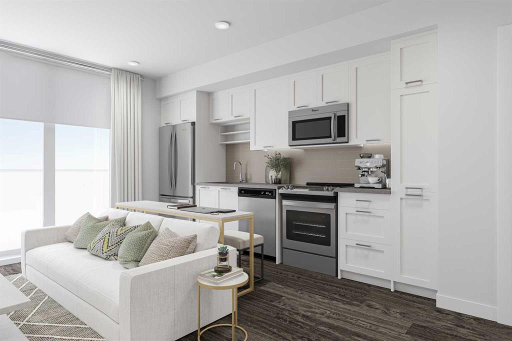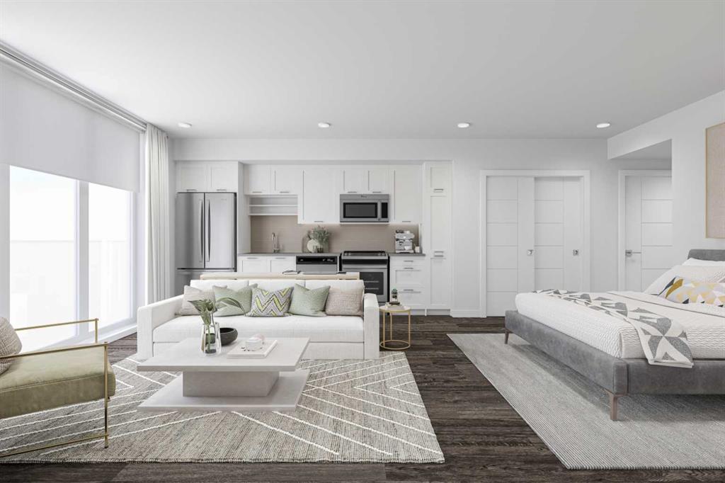 Built by Homes by Avi, this beautifully designed studio suite with the Coco floorplan offers modern living in the heart of Calgary’s vibrant Culture and Entertainment District. Steps from the Calgary Stampede, BMO Centre, Scotiabank Saddledome, and the restaurants and nightlife of 17th Avenue, this location delivers exceptional walkability and urban convenience. Nestled within the sought after community of Mission, you’re also moments from boutique shops, acclaimed dining such as Mercato and Añejo, and the world class MNP Community & Sport Centre. Inside, the condo features premium finishes and thoughtful design throughout. A kitchen island/eating bar with white quartz countertops is complemented by sleek white cabinetry, chrome faucets and hardware, and full size stainless steel appliances. Floor to ceiling windows and durable luxury vinyl plank flooring create a bright, contemporary atmosphere. The bedroom area, a 4 piece bath, large closet/storage space & discreet in suite laundry room complete this studio suite. Included roller shade window coverings add everyday convenience. Concrete construction provides lasting durability, while central air conditioning ensures year round comfort. Additional highlights include an assigned storage locker. From this location, you’ll love being able to walk to everything — from Mission’s cafés and shops to the energy of 17th Avenue. Enjoy the Bow River Pathway just minutes away or spend the day exploring the CORE Shopping Centre with more than 120 retailers, including Holt Renfrew. Whether training at the MNP Community & Sport Centre or meeting friends at local favorites like Ship & Anchor or Model Milk, this is urban living at its finest. Directions: