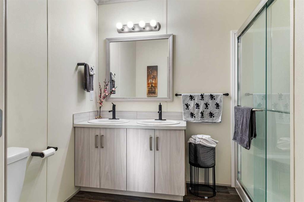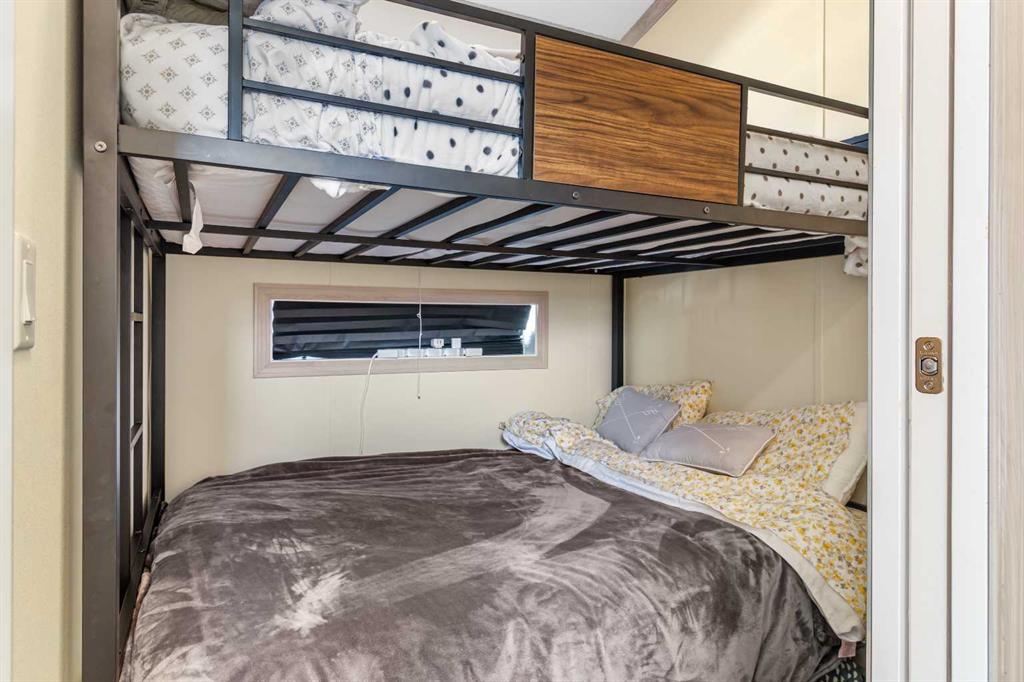 Welcome to this gorgeous 2-bedroom, 1-bathroom four-season home, beautifully nestled among the trees in the desirable Raymond Shores community. This modern, light-filled unit feels bright and welcoming the moment you step inside. The open-concept kitchen and living area is perfect for everyday living and entertaining, featuring a movable island and plenty of cupboard space. The bathroom is thoughtfully designed with dual sinks and a spacious walk-in shower. The primary bedroom offers generous space and convenient access through sliding doors to your private back patio. From here, you can enjoy the best of both worlds — morning sun on the deck in the front, followed by a private, shaded backyard that’s ideal for relaxing or gathering around the firepit with friends and family. This home is perfectly situated in the wonderful Raymond Shores community, where residents enjoy access to an impressive array of amenities: a fantastic clubhouse, indoor pool, private beach, marina, walking trails, and pickleball courts. It truly offers a relaxed lakeside lifestyle with something for everyone. Rare bonus opportunity: The two adjacent lots with homes are also available for purchase — creating a rare chance for family or friends to buy together and build something special side by side. MLS A2297391 and A2297342. If you’re looking for a bright, modern retreat in a vibrant four-season Lake community, this charming home is ready to welcome you.