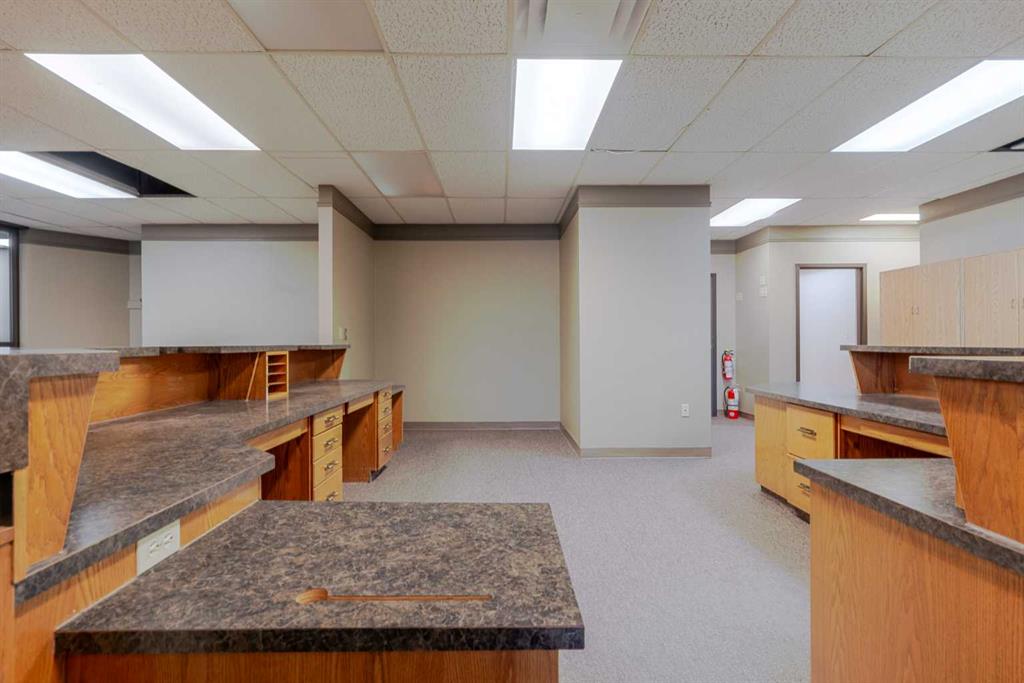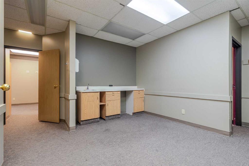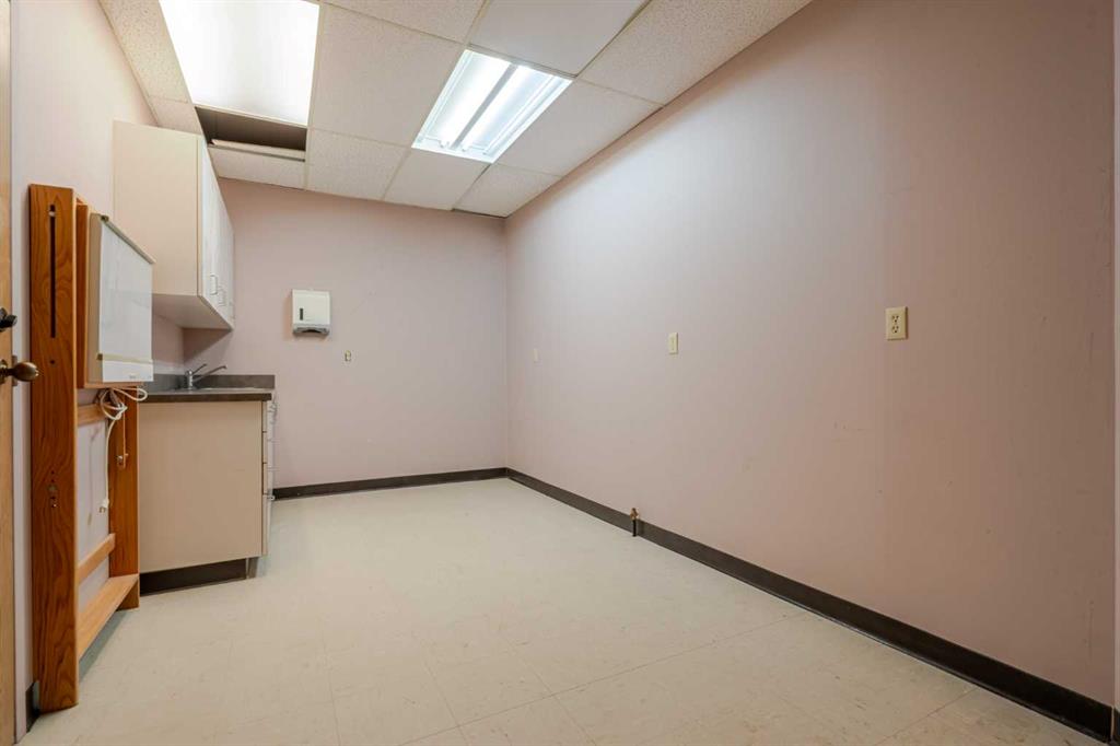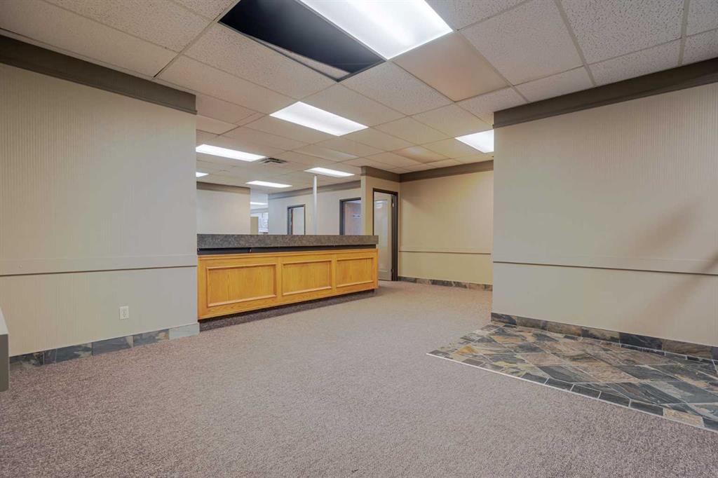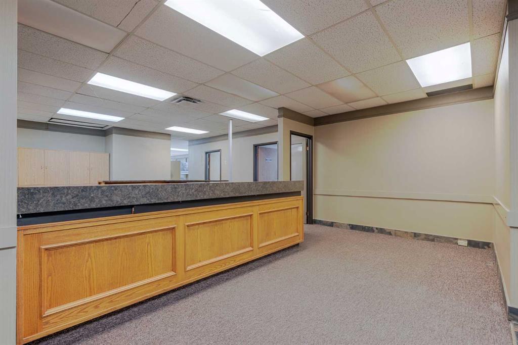 Exceptional opportunity to lease a well-appointed office space in the heart of Downtown Okotoks. Located in a professionally maintained building with elevator access, this unit offers excellent accessibility for both clients and staff, along with the convenience of an on-site parking lot. Previously operated as a dental surgery, the space is thoughtfully designed and highly functional. It features a spacious reception and waiting area complete with built-in counters and desks, five private offices (two equipped with sinks), and a large open-concept workspace with partial partitioning for added privacy. Additional highlights include a generous staff room with sink (which could easily be converted into an additional office), as well as a separate room equipped with two sinks, extensive counter space, cabinetry, and a hood fan—ideal for a variety of professional or medical uses. This versatile unit offers excellent potential for a wide range of business applications in a prime downtown location. Lease rate: $15.00 per sq. ft. + operating costs of $13.41 per sq. ft. (includes electricity, heat, and water).