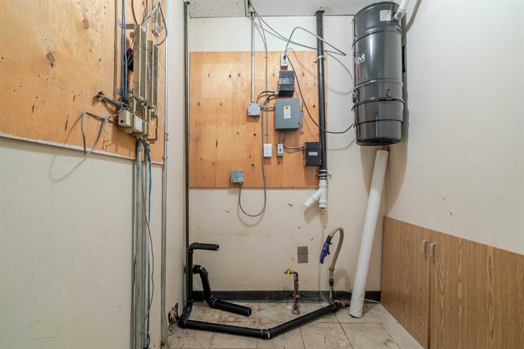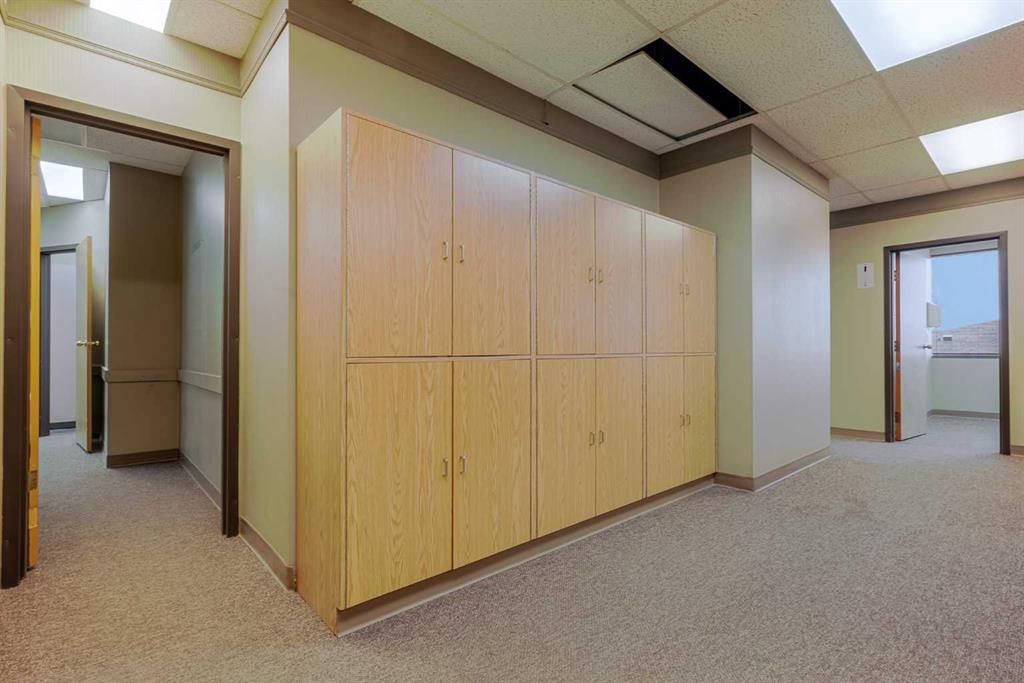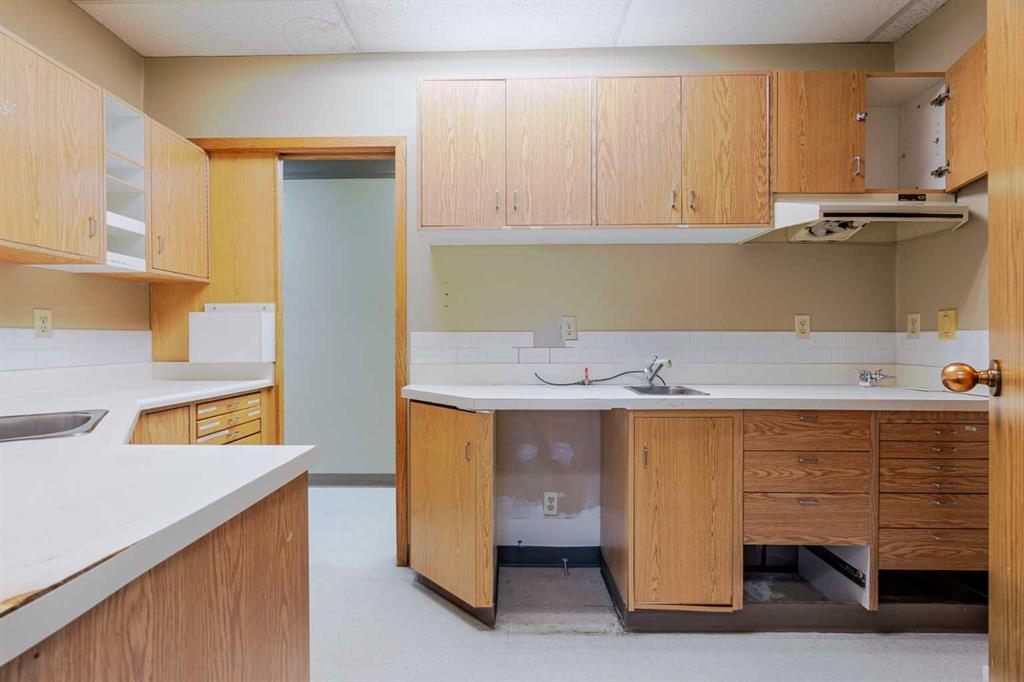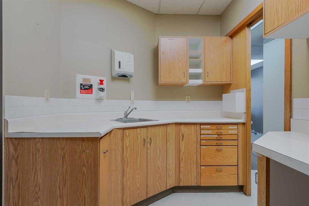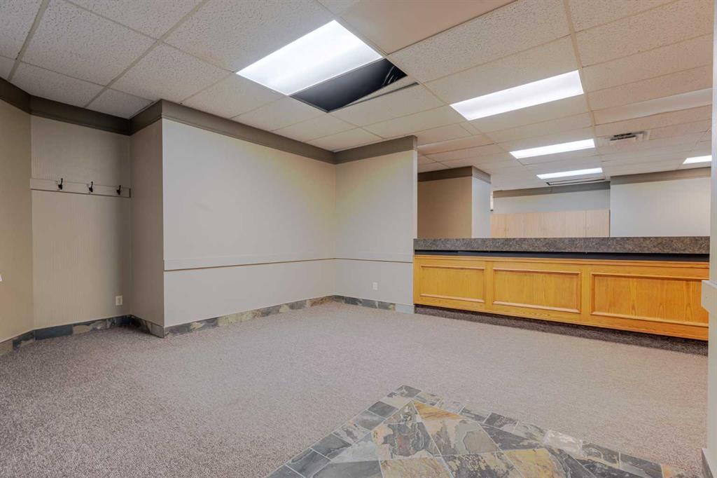 Exceptional opportunity to lease a well-appointed office space in the heart of Downtown Okotoks. Located in a professionally maintained building with elevator access, this unit offers excellent accessibility for both clients and staff, along with the convenience of an on-site parking lot. Previously operated as a dental surgery, the space is thoughtfully designed and highly functional. It features a spacious reception and waiting area complete with built-in counters and desks, five private offices (two equipped with sinks), and a large open-concept workspace with partial partitioning for added privacy. Additional highlights include a generous staff room with sink (which could easily be converted into an additional office), as well as a separate room equipped with two sinks, extensive counter space, cabinetry, and a hood fan—ideal for a variety of professional or medical uses. This versatile unit offers excellent potential for a wide range of business applications in a prime downtown location. Lease rate: $15.00 per sq. ft. + operating costs of $13.41 per sq. ft. (includes electricity, heat, and water).