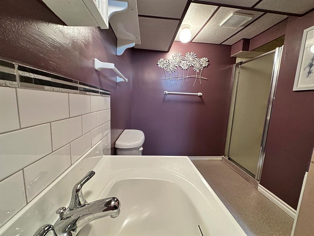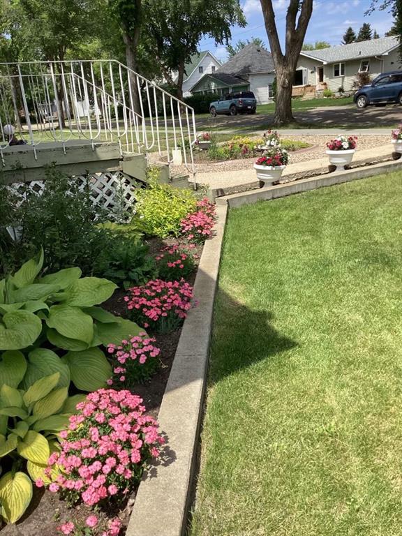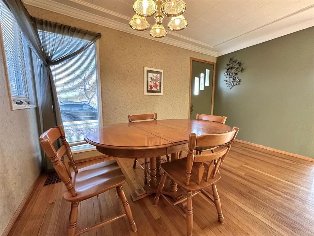 A Rare Find! Charming 1,032 sq ft bungalow with timeless appeal and character throughout. Built in 1951, this home offers two bedrooms plus a bright office/den on the main floor. The office/den is complete with patio doors leading to a 12' x 15' deck complete with an awning—perfect for quiet mornings or evening unwinding. The cozy kitchen flows into a sun-filled dining area and spacious living room, along with a full four-piece bathroom. Downstairs features a spacious family room, two additional bedrooms, a three-piece bathroom, laundry, and plenty of storage. Recent upgrades bring peace of mind, including new basement carpet, a new furnace, hot water tank, and a low-maintenance tin roof. Step outside to a beautifully landscaped yard and a 24' x 24' double detached garage that is powered, insulated, and heated—ready for all seasons. Located in a sought-after area on one of the most beautiful tree-lined streets in Wainwright just half a block from Blessed Sacrament School, this is a home that offers comfort, practicality, and lasting value.