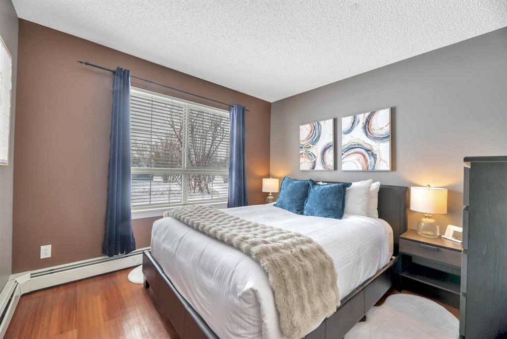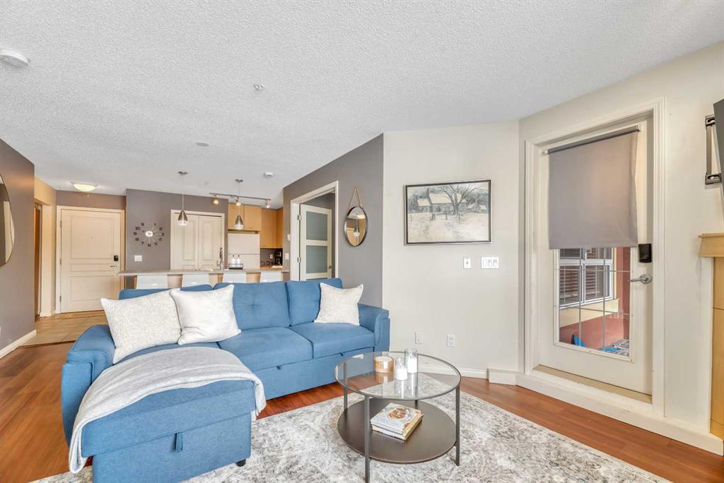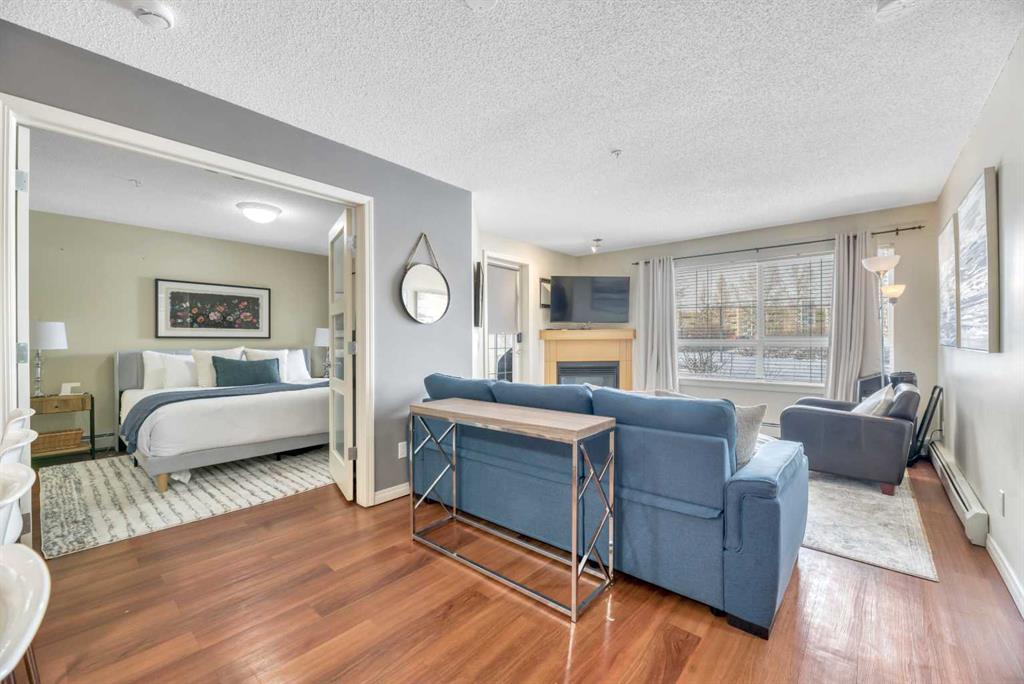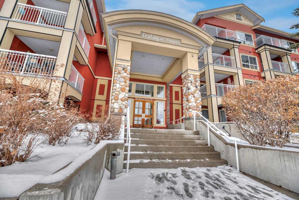 Welcome to this exceptional 2-bedroom, 2-bathroom ground-floor unit in Trafalgar House—perfectly located directly across from Mount Royal University, making it an outstanding opportunity for investors, students, or professionals seeking unmatched convenience. Designed with functionality in mind, the open-concept layout seamlessly connects the kitchen, dining, and living areas, complete with a cozy gas fireplace and large windows that bring in natural light. A dedicated home office/den with built-ins adds valuable flexibility for remote work or study. The spacious primary bedroom features a walk-through closet and private 3-piece ensuite, while the second bedroom includes its own walk-in closet and easy access to a full 4-piece bathroom—ideal for roommates or guests. Step outside to your private covered patio, offering easy ground-level access and a natural extension of your living space. This unit stands out with two titled underground parking stalls—a rare and valuable feature—along with a separate storage locker and in-suite laundry for added convenience. The building offers excellent amenities, including a fitness centre, party room, courtyard, and secured parking. With transit, shopping, and parks all nearby, the location is as practical as it is desirable. For investors, this property presents strong income potential, with similar units renting for approximately $2,300 per month, and the option to purchase the unit fully furnished creates an immediate turnkey rental opportunity. Call your realtor to view the condo docs and write your offer!