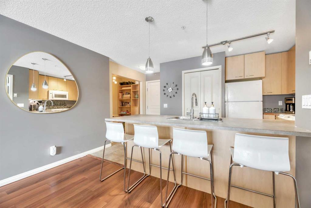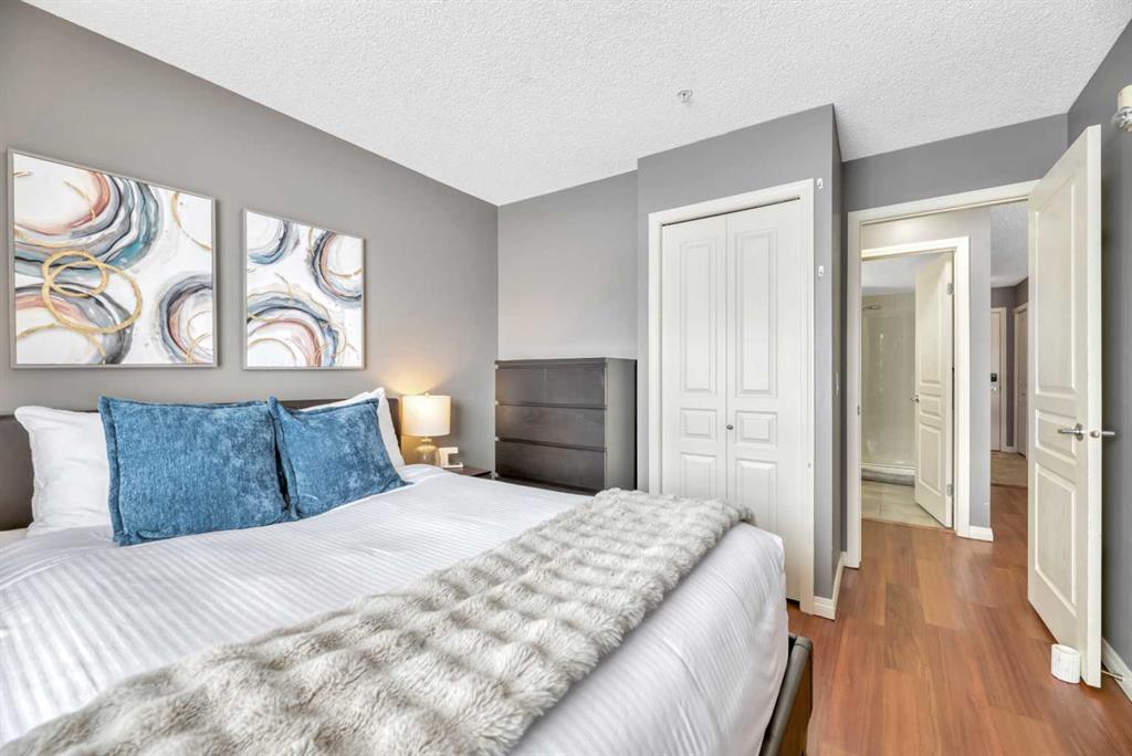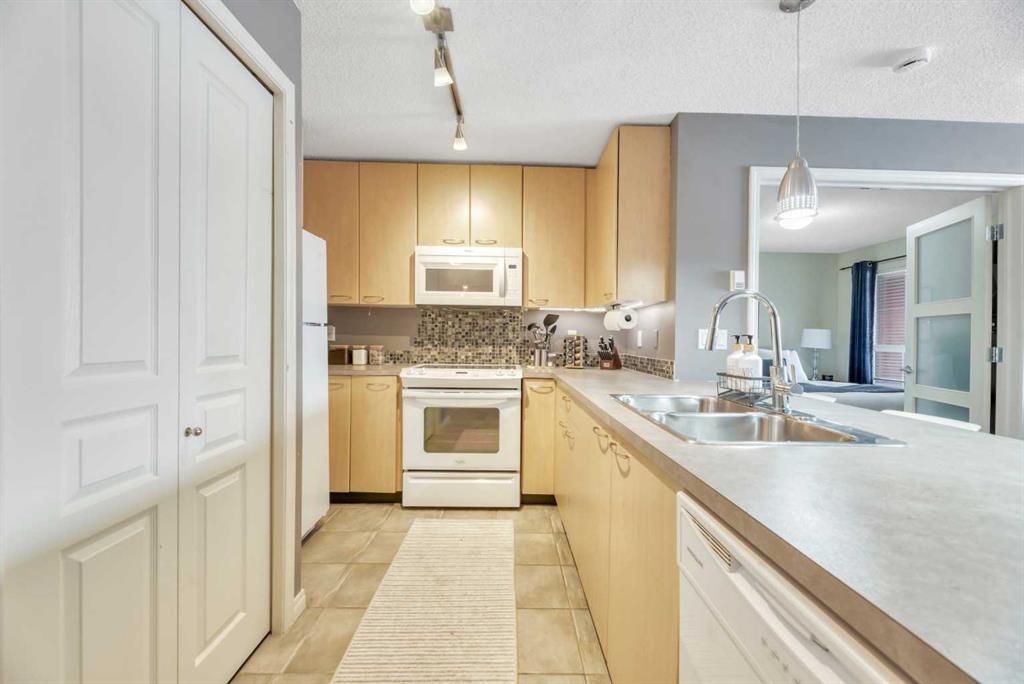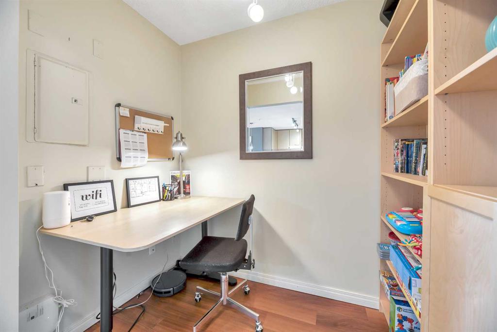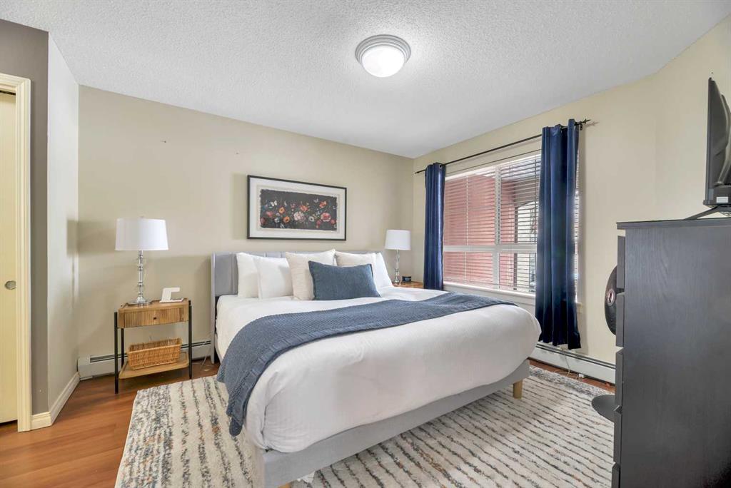 Welcome to this exceptional 2-bedroom, 2-bathroom ground-floor unit in Trafalgar House—perfectly located directly across from Mount Royal University, making it an outstanding opportunity for investors, students, or professionals seeking unmatched convenience. Designed with functionality in mind, the open-concept layout seamlessly connects the kitchen, dining, and living areas, complete with a cozy gas fireplace and large windows that bring in natural light. A dedicated home office/den with built-ins adds valuable flexibility for remote work or study. The spacious primary bedroom features a walk-through closet and private 3-piece ensuite, while the second bedroom includes its own walk-in closet and easy access to a full 4-piece bathroom—ideal for roommates or guests. Step outside to your private covered patio, offering easy ground-level access and a natural extension of your living space. This unit stands out with two titled underground parking stalls—a rare and valuable feature—along with a separate storage locker and in-suite laundry for added convenience. The building offers excellent amenities, including a fitness centre, party room, courtyard, and secured parking. With transit, shopping, and parks all nearby, the location is as practical as it is desirable. For investors, this property presents strong income potential, with similar units renting for approximately $2,300 per month, and the option to purchase the unit fully furnished creates an immediate turnkey rental opportunity. Call your realtor to view the condo docs and write your offer!