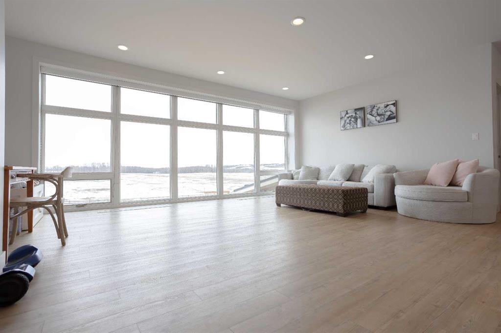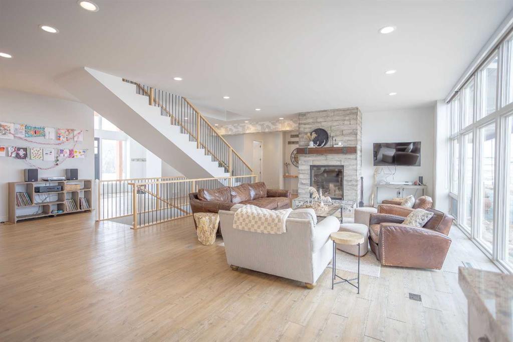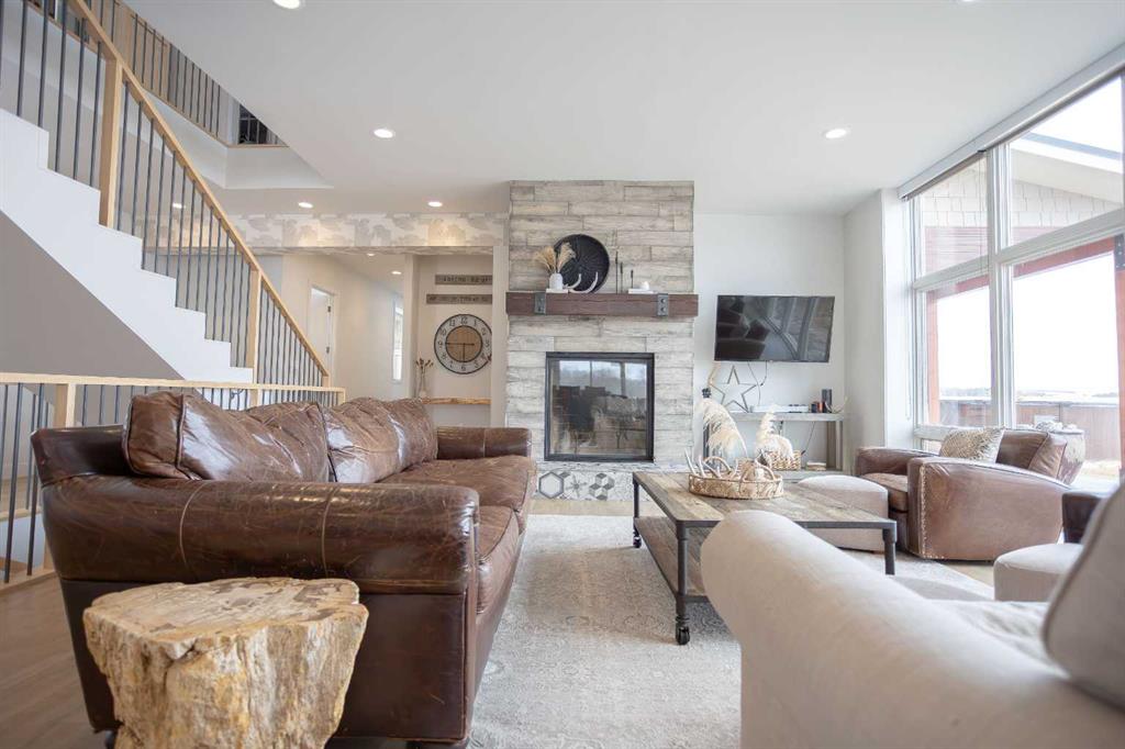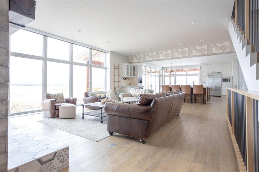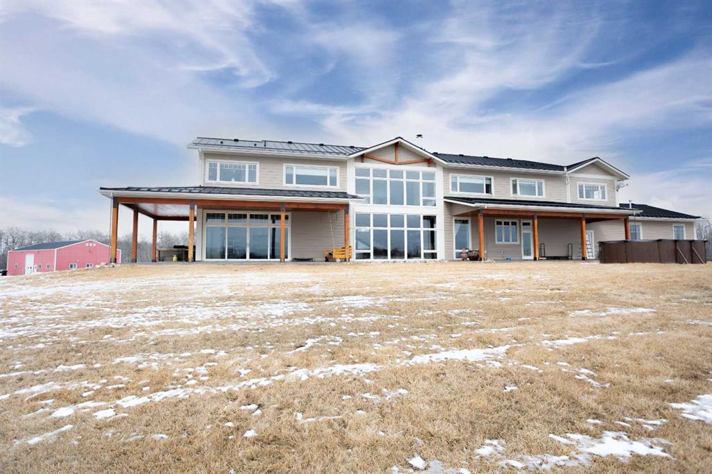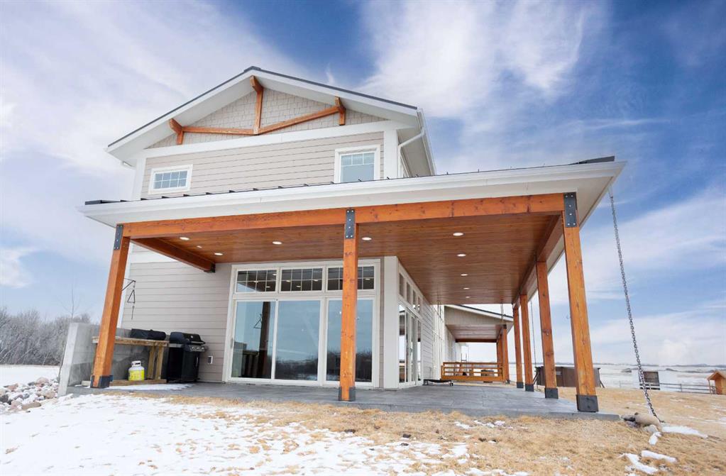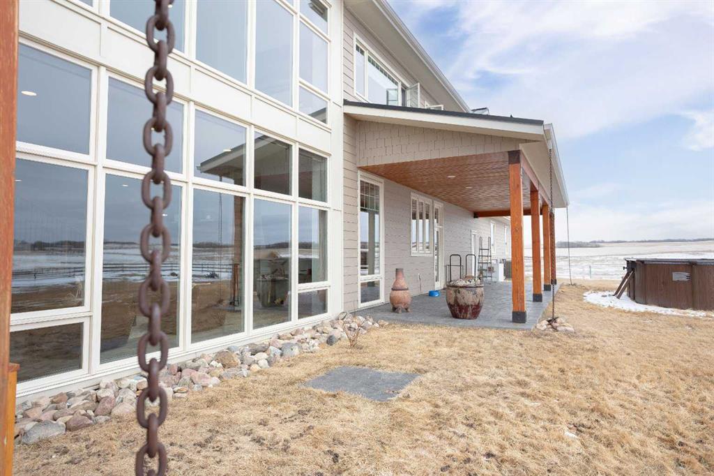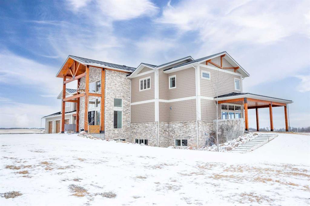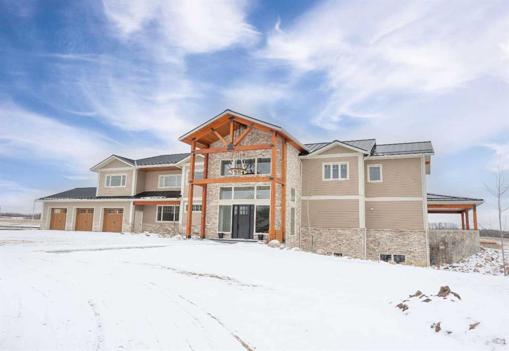 Welcome to this architecturally designed, custom-built 5,460 sq ft executive 2-storey set on a full 159-acre quarter section just outside Chauvin, AB. Offering a rare combination of luxury living, functional space, and income potential, this property is built for both lifestyle and practicality. The striking post and beam front entry with vaulted cedar ceiling and natural rock landscaping sets the tone as you arrive. Inside, the open-concept main floor features soaring floor-to-ceiling windows that flood the home with natural light and capture expansive prairie views. A wood-burning fireplace with custom rock surround anchors the living space. The chef’s kitchen is designed for both entertaining and everyday use, complete with quartz countertops, premium appliances, custom cabinetry by Redl Kitchens, and two large islands. Step outside to the concrete wrap-around covered porch with matching cedar post and beam detail. The main floor also includes a large laundry/mudroom with built-in lockers, guest bathroom, dedicated office/flex space, and access to the heated triple attached garage with epoxy flooring. Upstairs, the primary suite offers dual walk-in closets and a spa-inspired ensuite with custom stone shower and freestanding tub. Two additional oversized bedrooms each feature walk-in closets and private 4-piece ensuites. A bonus/playroom and craft area overlook the main entry, while a separate bonus room above the garage includes a 2-piece bath and windows on three sides. The fully developed lower level features in-floor heated polished concrete, a theatre room wired for sound, gym area, storage, and two large bedrooms with a shared 3-piece ensuite—ideal for guests or extended family. Additional features include dual modulating furnaces, dual two-stage A/C units, and a zoned HVAC system, along with a high-efficiency boiler, Hardie board siding, and a standing seam metal roof. The home is fully constructed with ICF (Insulated Concrete Form) exterior walls from foundation to roof trusses, offering exceptional energy efficiency, structural strength, and sound insulation. The yard is partially irrigated, and the fully finished 72’ x 40’ heated shop provides exceptional space for equipment, hobbies, or business use. The 159-acre parcel offers a mix of cultivated land and cross-fenced pasture, making it well-suited for farming, horses, or private country living. Conveniently located on pavement, just 58 km to Wainwright and 78 km to Lloydminster. A rare opportunity to own a high-end rural property combining space, functionality, and long-term value.