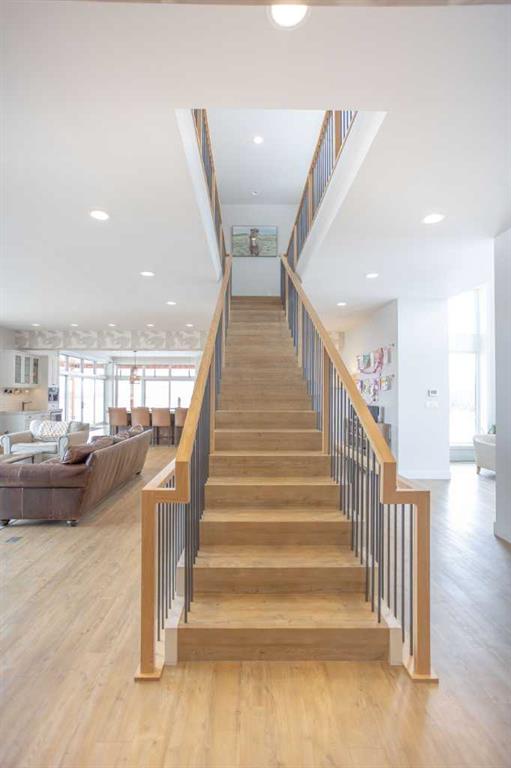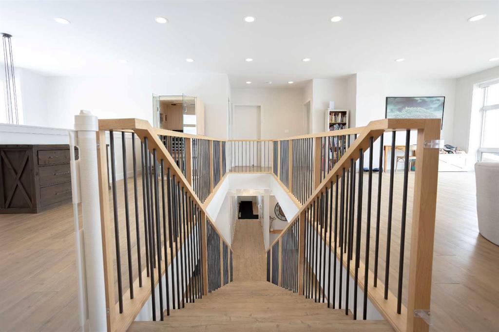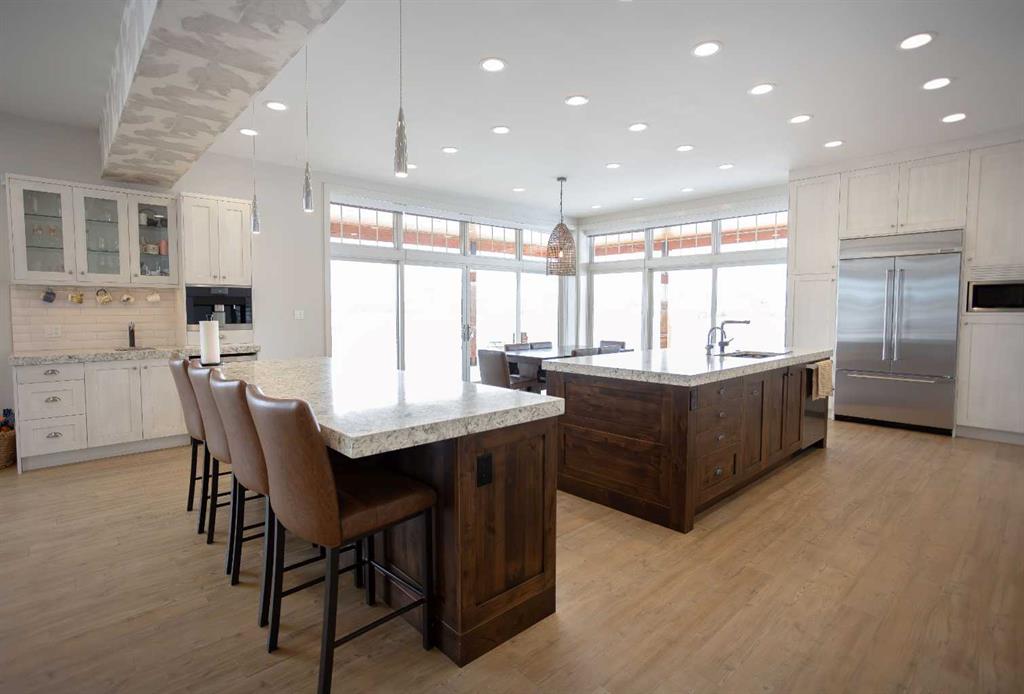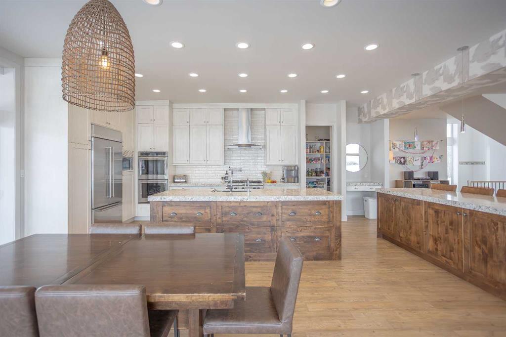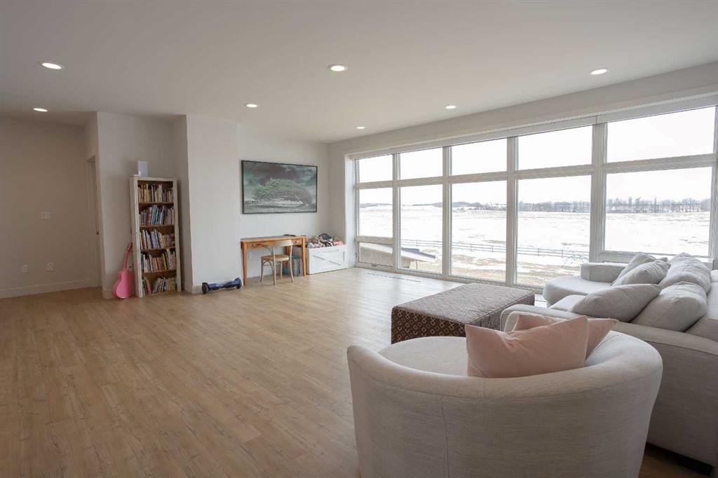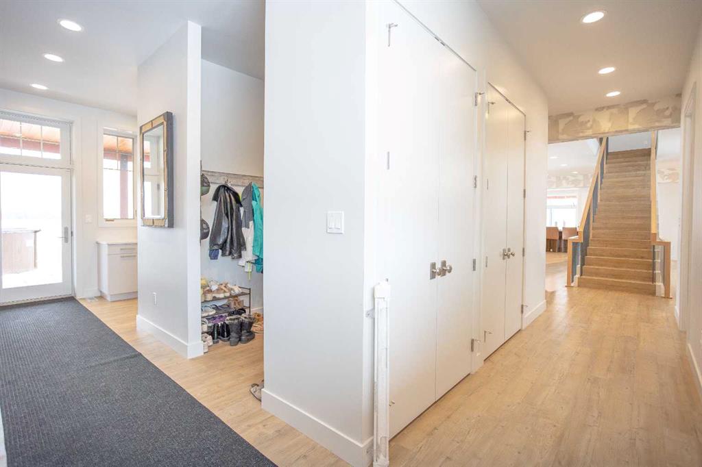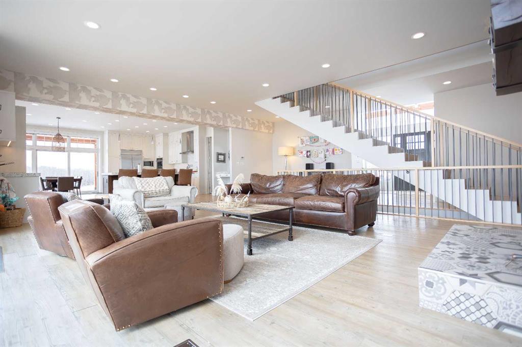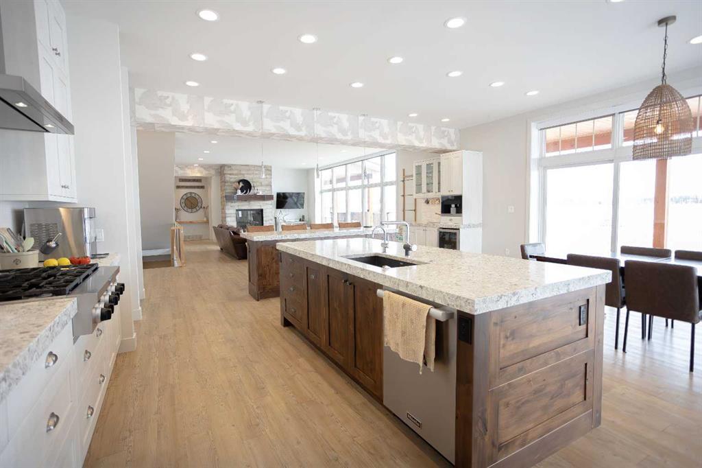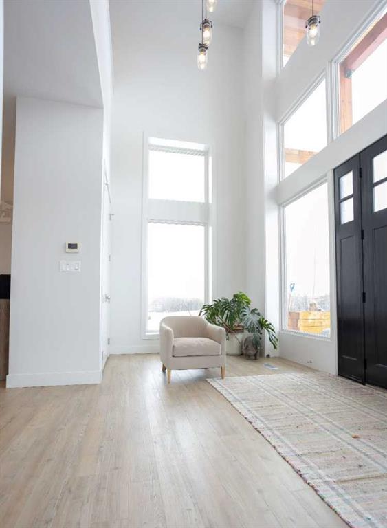 Welcome to this architecturally designed, custom-built 5,460 sq ft executive 2-storey set on a full 159-acre quarter section just outside Chauvin, AB. Offering a rare combination of luxury living, functional space, and income potential, this property is built for both lifestyle and practicality. The striking post and beam front entry with vaulted cedar ceiling and natural rock landscaping sets the tone as you arrive. Inside, the open-concept main floor features soaring floor-to-ceiling windows that flood the home with natural light and capture expansive prairie views. A wood-burning fireplace with custom rock surround anchors the living space. The chef’s kitchen is designed for both entertaining and everyday use, complete with quartz countertops, premium appliances, custom cabinetry by Redl Kitchens, and two large islands. Step outside to the concrete wrap-around covered porch with matching cedar post and beam detail. The main floor also includes a large laundry/mudroom with built-in lockers, guest bathroom, dedicated office/flex space, and access to the heated triple attached garage with epoxy flooring. Upstairs, the primary suite offers dual walk-in closets and a spa-inspired ensuite with custom stone shower and freestanding tub. Two additional oversized bedrooms each feature walk-in closets and private 4-piece ensuites. A bonus/playroom and craft area overlook the main entry, while a separate bonus room above the garage includes a 2-piece bath and windows on three sides. The fully developed lower level features in-floor heated polished concrete, a theatre room wired for sound, gym area, storage, and two large bedrooms with a shared 3-piece ensuite—ideal for guests or extended family. Additional features include dual modulating furnaces, dual two-stage A/C units, and a zoned HVAC system, along with a high-efficiency boiler, Hardie board siding, and a standing seam metal roof. The home is fully constructed with ICF (Insulated Concrete Form) exterior walls from foundation to roof trusses, offering exceptional energy efficiency, structural strength, and sound insulation. The yard is partially irrigated, and the fully finished 72’ x 40’ heated shop provides exceptional space for equipment, hobbies, or business use. The 159-acre parcel offers a mix of cultivated land and cross-fenced pasture, making it well-suited for farming, horses, or private country living. Conveniently located on pavement, just 58 km to Wainwright and 78 km to Lloydminster. A rare opportunity to own a high-end rural property combining space, functionality, and long-term value.