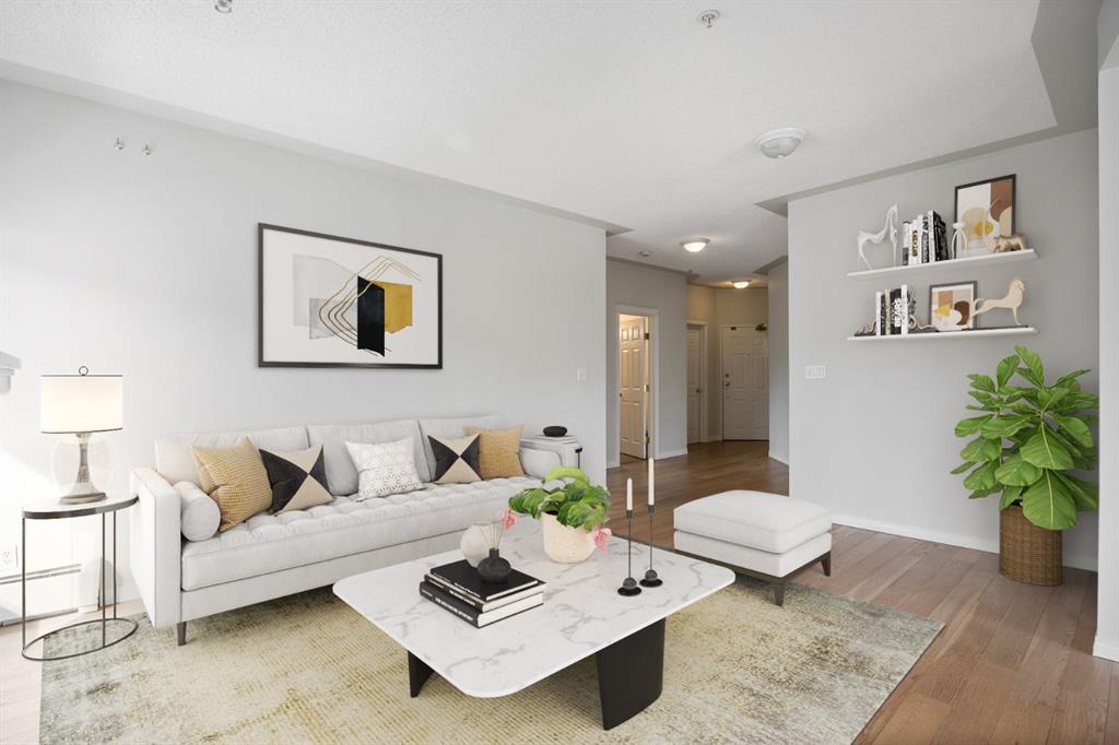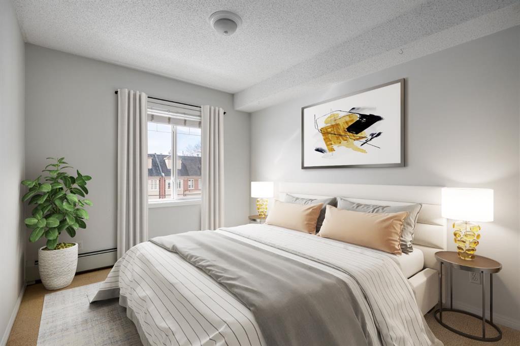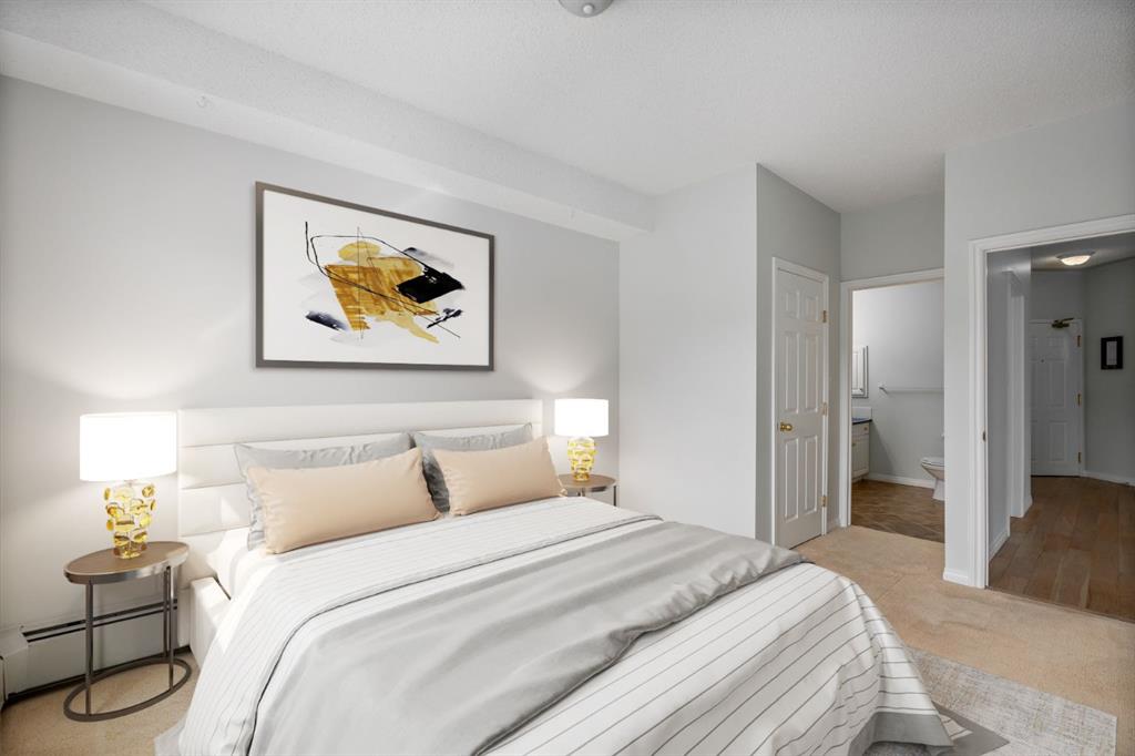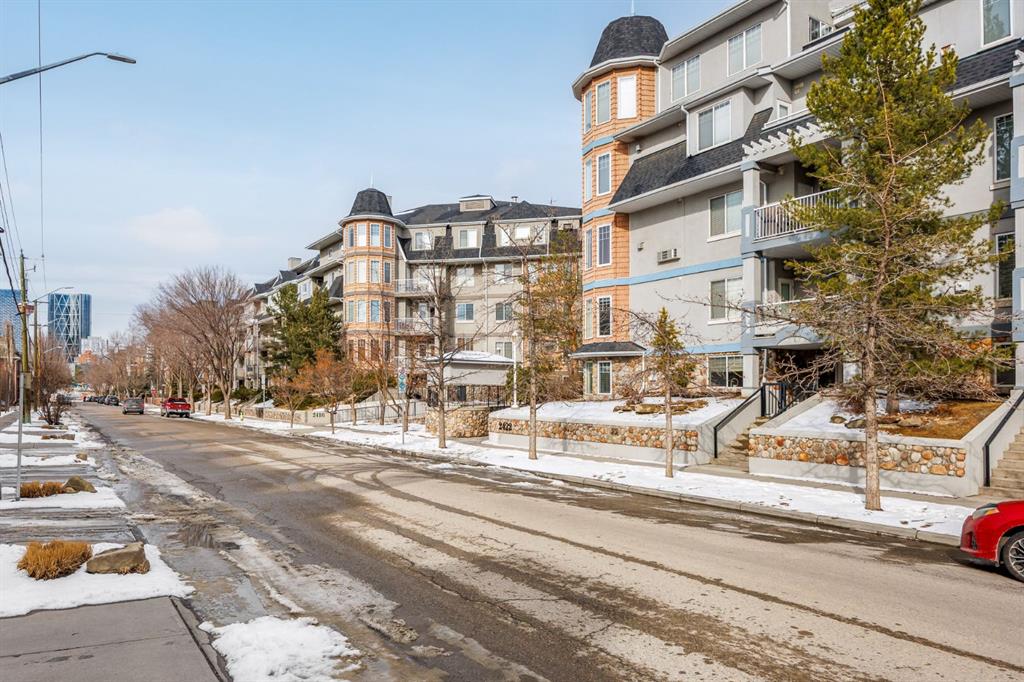 Experience an exceptional inner city lifestyle mere steps from the Elbow River. This stunning corner unit at The Waterford of Erlton encompasses over 1,100 sq. ft. of well-appointed living space on the third floor, complete with two titled underground parking stalls and stunning views. The modern, open concept design features 9-foot ceilings, updated hardwood flooring, and a bright, inviting living area highlighted by a gas fireplace. The kitchen is thoughtfully curated with upgraded stainless steel appliances and ample cabinetry that marry function and style. Each of the two generously sized bedrooms include private and semi-private ensuite bathrooms and spacious walk-in closets, ensuring comfort, privacy, and versatility of living arrangements. Additional features include a large covered South and West facing balcony overlooking the scenic river pathways, as well as a dedicated in-suite laundry room equipped with a washer and dryer. Residents of the building enjoy access to a range of amenities, including bicycle storage, a car wash bay, visitor parking, and a reservable courtyard pavilion with a party room for larger gatherings. Ideally situated within walking distance to the MNP Community & Sport Centre, the Calgary Stampede Grounds, shops along 4th Street, fine dining in Mission, 17th Avenue Entertainment & Retail District, and the Downtown Core, this home offers unrivalled urban convenience amongst some of the city's most beautiful natural landscapes. A pedestrian-oriented haven with reduced commute time when needed, with proximity to Erlton LRT Station and major thoroughfares like Macleod Trail.