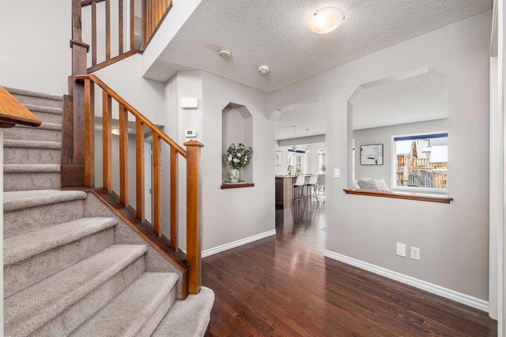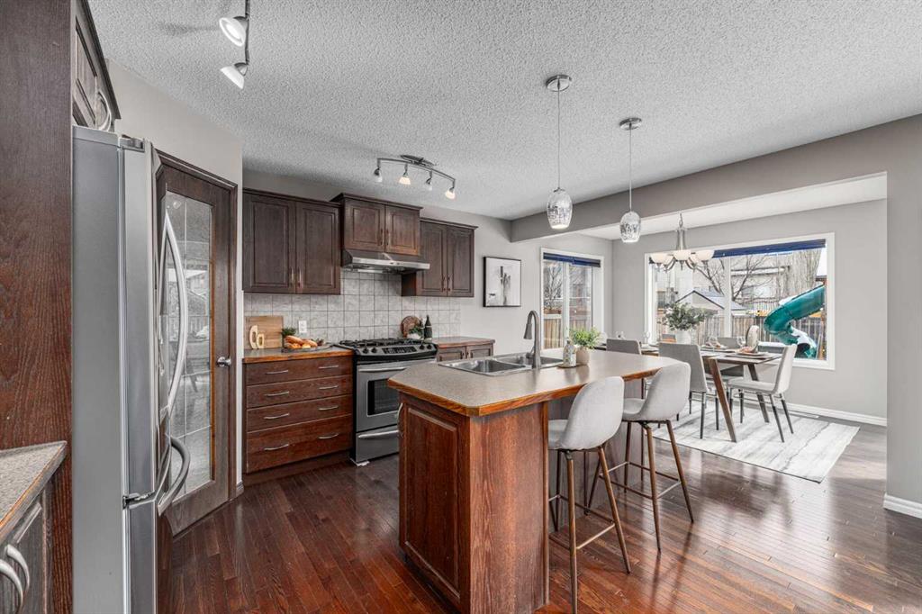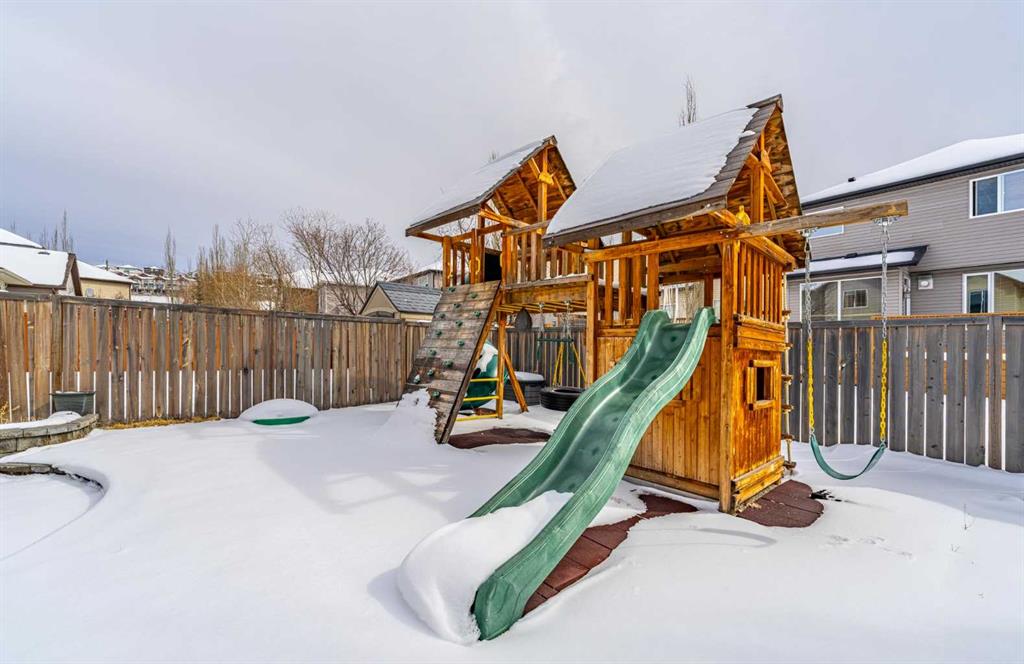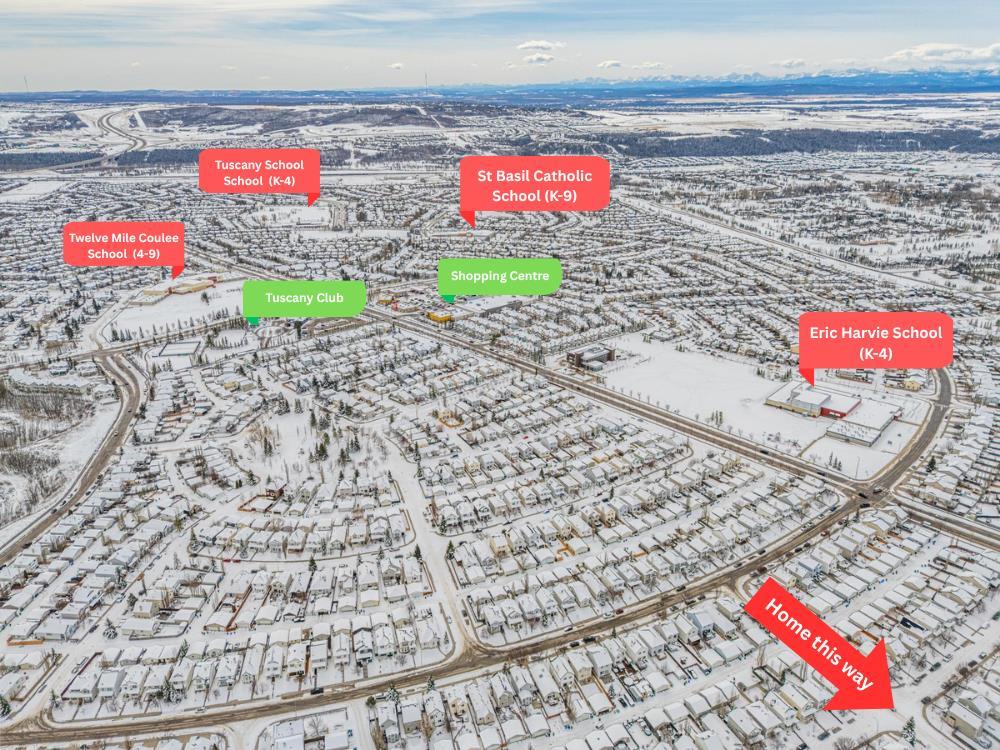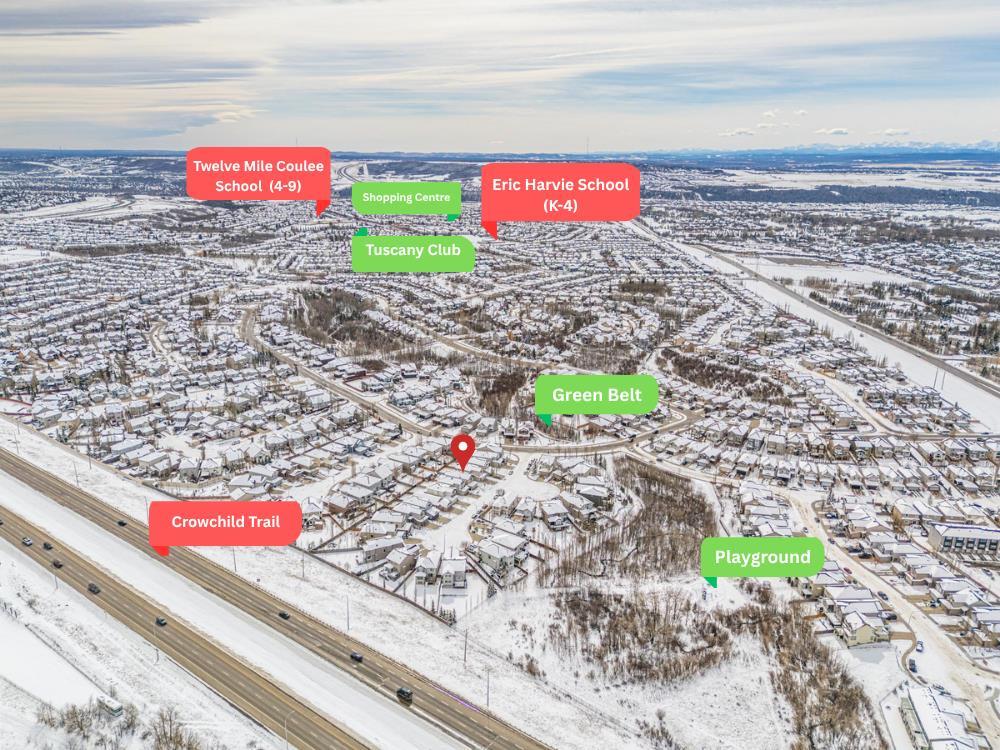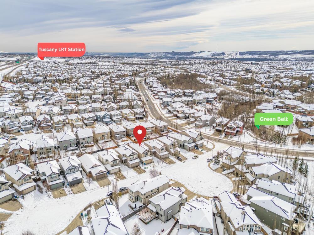 Welcome to a beautifully maintained family home offering an exceptional combination of comfort, functionality, and lifestyle in one of NW Calgary’s most desirable communities. Situated on a quiet street just steps from green space, this home is perfect for families who enjoy outdoor living, whether it’s walking the dog or enjoying daily exercise. The southeast-facing backyard is filled with natural sunlight and features a professionally installed playground with a soft rubber surface—creating a safe and fun environment for children. Inside, you are welcomed by an open-concept main floor filled with natural light from large southeast-facing windows. The inviting living room features a cozy gas fireplace, while the kitchen is equipped with a gas stove and powerful range hood—perfect for home chefs. A convenient walkthrough pantry connects seamlessly to the garage and laundry area, where the laundry machines have been recently updated. Stay comfortable year-round with central air conditioning, keeping the home cool during Calgary’s warm summer months. Upstairs, the home offers a thoughtfully designed layout featuring an oversized bonus room—ideal for family gatherings, a media space, or a kids’ play area. The spacious primary bedroom includes a bright ensuite with large windows that bring in beautiful natural light. Two additional well-sized bedrooms each feature customized closet organizers, making it easy to keep everything neat and organized. A full shared bathroom completes the upper level. The fully developed basement expands your living space with a large recreation room, featuring a wet bar with a bar fridge—perfect for entertaining. A generous bedroom and a high-end full bathroom with in-floor heating provide added comfort and flexibility for guests or extended family. Location is a standout feature of this home. You are just 3 minutes from the Tuscany LRT station and only 2 minutes to Crowchild Trail, with quick access to Stoney Trail, making commuting anywhere in the city convenient. Tuscany also offers excellent access to schools for families, including Tuscany School and Eric Harvie School (K–4), Twelve Mile Coulee School (Grades 4–9) within the community, St. Basil School (K–9) for Catholic education, and Bowness High School (Grades 10–12) just a short drive away. Residents also enjoy access to the Tuscany Club, a private community facility offering year-round amenities including a splash park, skating rink, tennis courts, and multiple playgrounds—making it an ideal environment for families. Recent upgrades include fresh paint throughout the entire home (2026), updated laundry machines (2024), Range Hood and Refrigerator (2025) , basement development (2016), and the professionally installed backyard playground with rubber flooring (2020). This is a rare opportunity to own a well-upgraded, move-in ready home in a highly sought-after, family-friendly community.