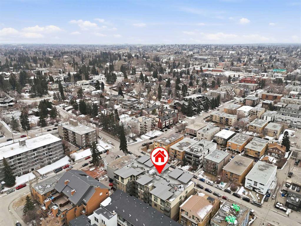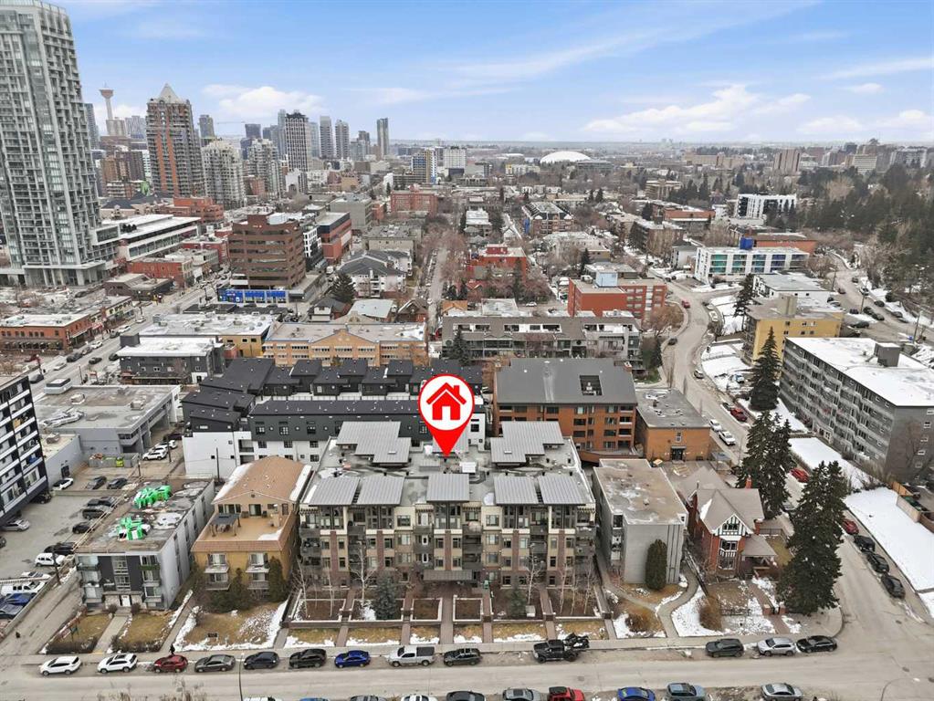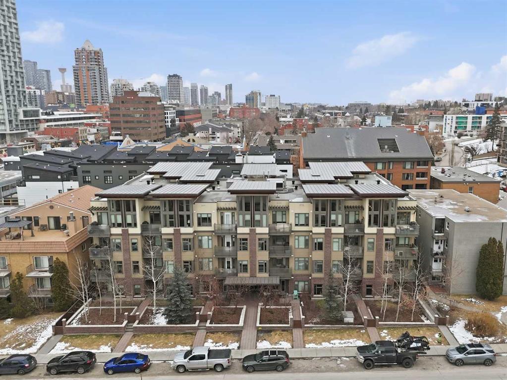 Do you want to be in the heart of all the action of downtown Calgary? This GROUND FLOOR CORNER CONDO is just steps from 17th Ave - located in the well managed, PET FRIENDLY, 2015 built TEN building - one of the most sought-after modern builds in the prestigious community of LOWER MOUNT ROYAL. Offering tremendous value at $434,000 - this 762 square foot 2 BEDROOM, 2 BATHROOM home is the perfect purchase for those looking for modern finishes and a newer building. This unit offers affordable monthly fees of $613.78, an ASSIGNED STORAGE LOCKER, and a TITLED PARKING SPACE located just steps from the elevator. In the well planned open concept design, you'll find two bedrooms, both with their own ensuite bathroom, as well as a FULL-SIZED LAUNDRY PAIR. The living space features West exposed windows making this a light-filled, cozy space. In the spacious kitchen and dining area, you'll love the cork floors, large island with QUARTZ COUNTERTOPS, and stainless steel appliance package complete with a beverage fridge. You’ll be impressed by the easy access into the unit from the TWO PATIO DOORS - forget the elevator and buzzing guests in—enjoy the direct-access convenience that FEELS MORE LIKE A TOWNHOUSE than a condo. FRESHLY PAINTED and cleaned (including the carpet), this unit is move-in ready and completely turn-key. With an INCREDIBLE LOCATION IN THE HEART OF CALGARY'S DOWNTOWN - the list of amenities just a short stroll away is endless. If you’re looking for that vibrant city lifestyle at an amazing price, this home is a must-see. With Calgary's ever-growing popularity, stop renting and watch your investment continue to rise. Call for a private showing!