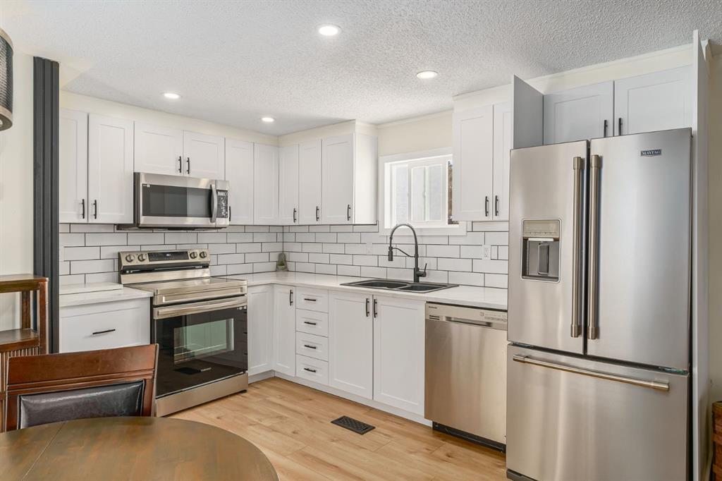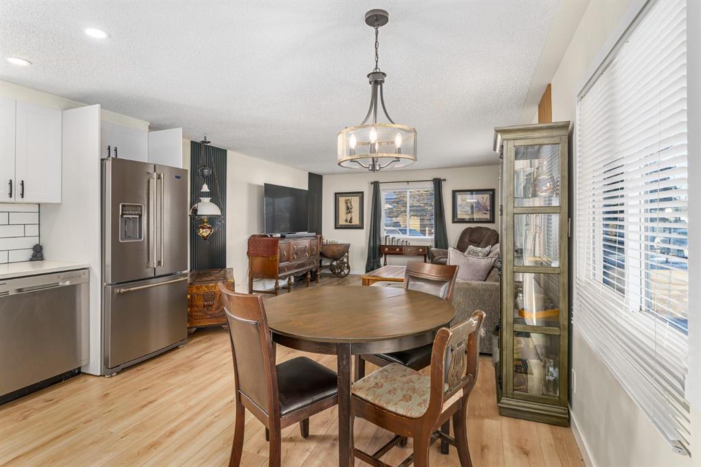 This EXTENSIVELY RENOVATED home located in the desireable community of Greenwood Village offers an unparalleled blend of comfort, style & tranquility. Boasting generous living space, this open-concept home is bathed in natural light thanks to its abundant windows throughout. Recently updated laminate flooring adds a touch of sophistication, while the thoughtfully designed layout provides ample space for both relaxation and entertaining. The modern kitchen features ceiling height cabinetry, tile backsplash, quartz countertop and stainless steel appliances. The spacious dining space seamlessly flows into the bright and welcoming living room. This home offers 2 well-sized bedrooms, as well as a generous 4 piece bathroom. Bathroom features newer toilet, vanity and lighting. Other recent updates include dimable potights and tasteful ceiling lights throughout, baseboards, newer skirting (2023), newer siding (2022), newer roof vents, shingles, and eaves (2022) and vinyl windows. Exterior has a large deck as well as a new fence and new shed (2024). Greenwood Villiage is a well-managed community located in Greenbrier right next to the Calgary Farmers Market. Residents enjoy access to the community center which includes a games room. Close to Canada Olympic Park and quick access to the Trans-Canada Highway, as well as Stoney Trail. This stunning home offers a rare opportunity to own a piece of paradise at great value!