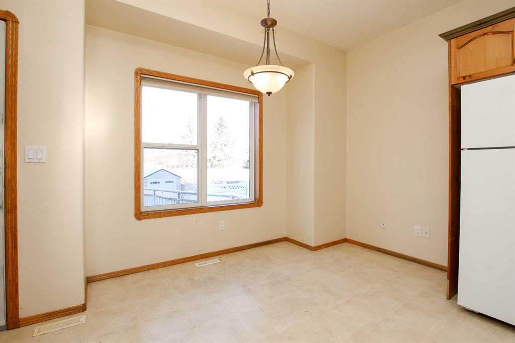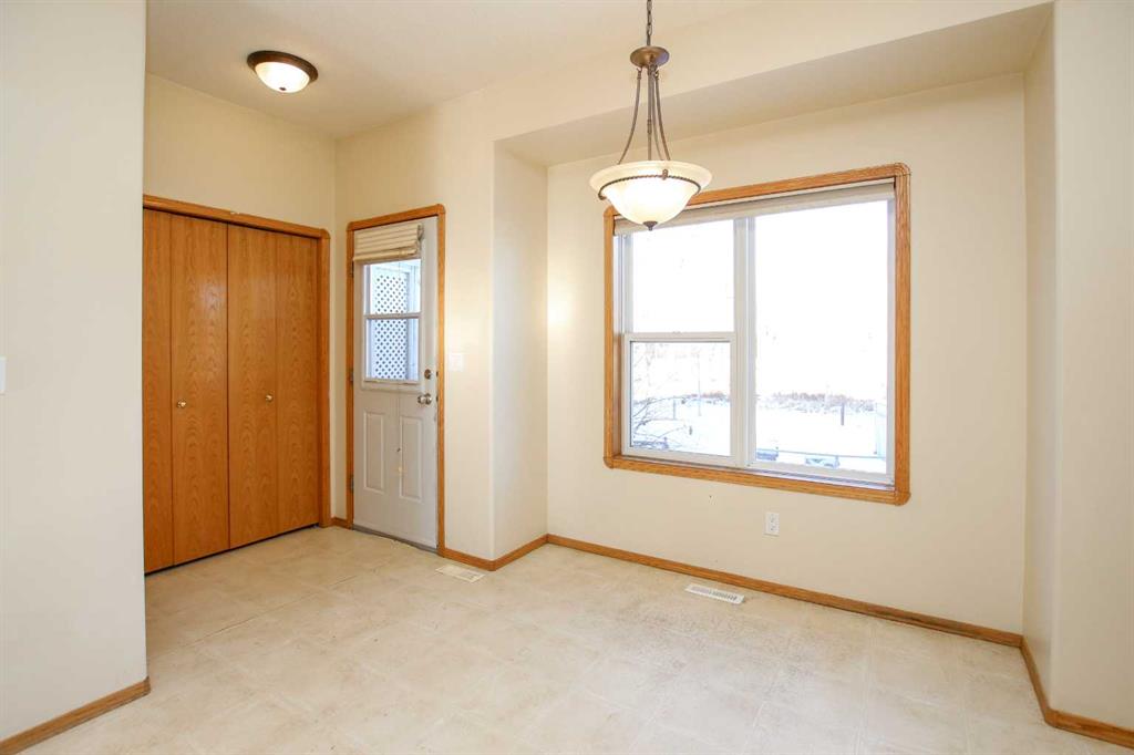 IMMEDIATE POSSESSION AVAILABLE ~ 3 BEDROOM, 2 BATH 2-STOREY TOWNHOME IN ANDERS SOUTH ~ LOCATED IN A KEY HOLE CLOSE WITH NO NEIGHBOURS BEHIND & TONS OF OFF STREET PARKING ~ A sun filled foyer welcomes you and opens to the spacious living room with 9' ceilings and a large south facing window that overlooks the front yard and allows natural light to fill the space ~ The kitchen offers a functional layout and features warm stained wood cabinets, ample counter space including an island with an eating bar, wall pantry, and opens to the dining room with more large windows that overlook the backyard ~ Rear entry just off the dining room has access to the rear deck and backyard ~ 2 piece main floor bathroom ~ The primary bedroom can easily accommodate a king size bed plus multiple pieces of furniture and features a walk in closet with dual doors and built in shelving ~ 4 piece bathroom has an oversized vanity, and a tile tub surround ~ The basement has laundry with built in cabinets, a storage area with built in shelving, bathroom plumbing roughed in, with tons of space for a family room and bedroom with future development ~ Central vacuum ~ The backyard is fully fenced, landscaped with mature trees and shrubs and backs on to a green space with mature trees ~ Huge rear parking with back alley access has a plug in and space for multiple vehicles/potential RV parking ~ Located in desirable Anders South with tons of walking trails, a lake, playgrounds, and shopping with easy access to schools and all other amenities.