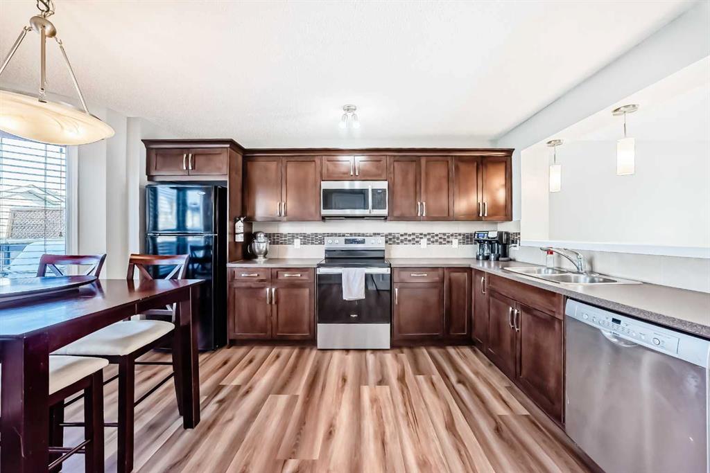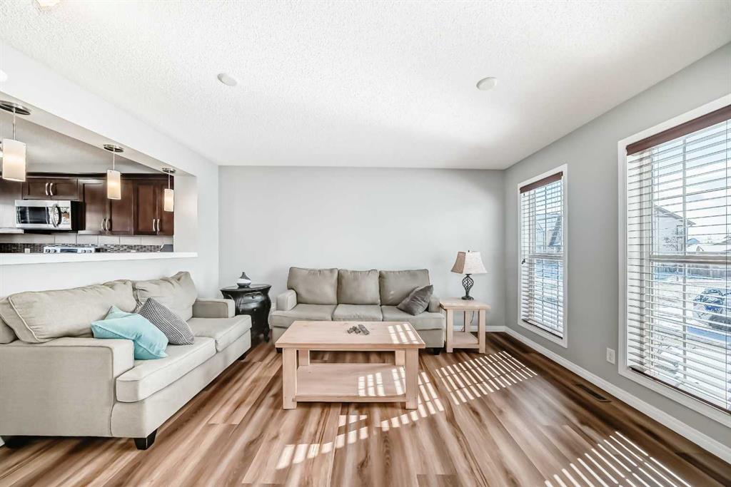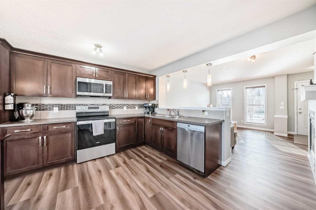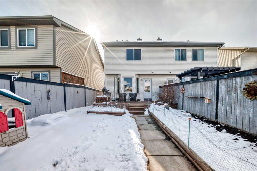 Located on a quiet street in the SE corner of McKenzie Towne, this home is a short walk from shopping, parks and the McKenzie Towne bus terminal. Main floor offers a bright, open layout with new LVP flooring throughout. The living room has large windows bringing in plenty of natural light, a gas fireplace with mantle and TV ledge. The kitchen includes full-height cabinetry, ample counter space, tile backsplash, and a raised eating bar overlooking the living room. Stainless steel dishwasher, OTR microwave and stove are newer. Adjacent dining nook is positioned in a bay window setting with backyard views. Convenient main floor 2-piece bath plus a functional rear mudroom with built-in storage provides access to the deck and yard. The yard is large with raised garden bed ready for your green thumb. Plenty of space beyond the yard for a future double garage. The second floor configuration offers options for a young couple or roommates. The front primary bedroom includes a walk-in closet and 4-piece ensuite. Rear bedroom is slightly smaller and also has a full ensuite and walkin closet. Unfinished basement offers excellent potential for future development, with a wide open layout ready to be customized to your needs. Currently set up with a dedicated workshop area complete with (negotiable) workbench and storage, plus plenty of additional space for recreation, home gym, or added bedrooms. Mechanical and laundry areas are neatly organized and easily accessible, with rough-in plumbing already in place for a future bathroom.