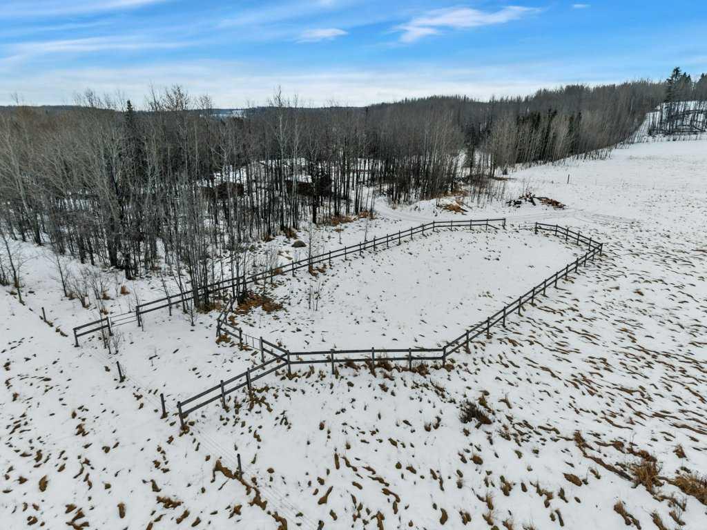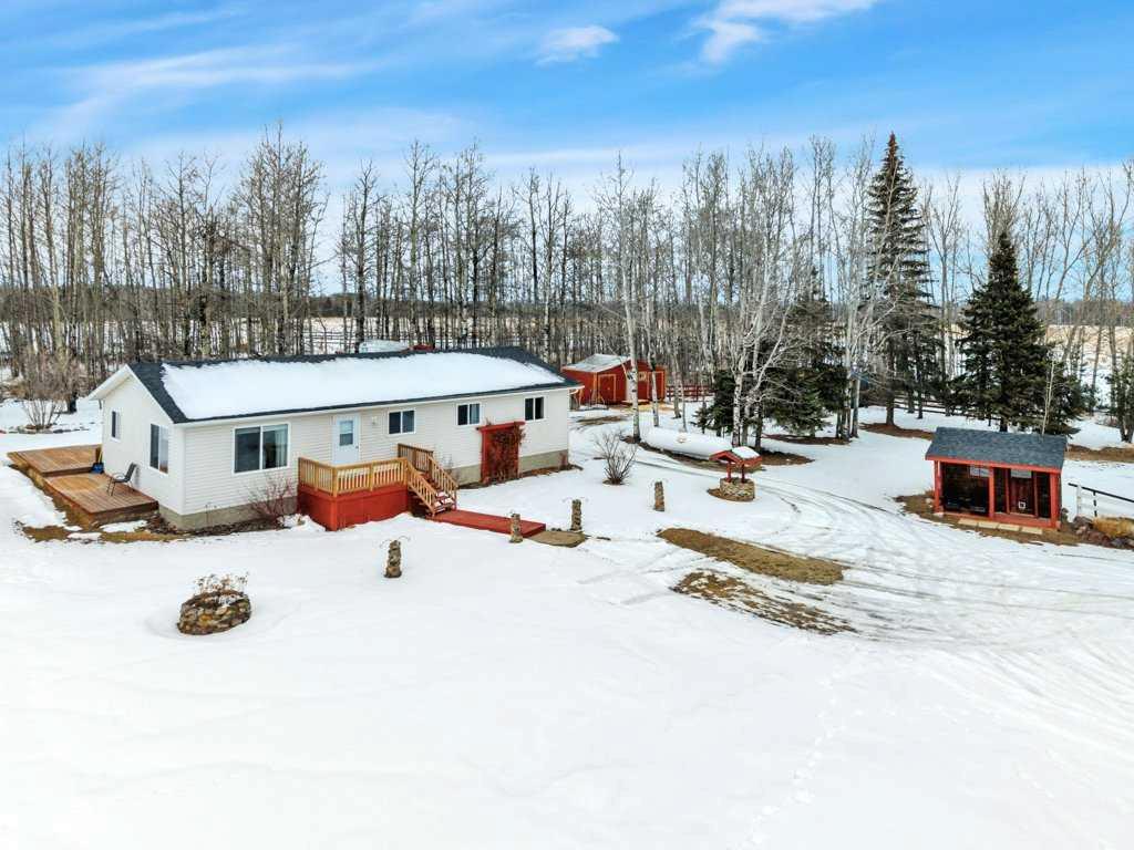 Tucked away on a quiet dead-end road, this immaculate 3.97-acre property offers the privacy and peaceful lifestyle rural Alberta buyers are searching for—just minutes from Buck Lake and within easy reach of Twin Lakes, Battle Lake or Pigeon Lake to the East and Rocky Mountain House & beyond to the West. Location is ideal for an outdoor enthusiast and has also been an easy commute for owners working in town. And you are just 3.5 miles away from the best pizza in the area at Pendryl Store! This beautifully maintained 2005, 1,286 sq ft manufactured home truly stands out from the rest. Thoughtful updates throughout include new shingles (2023), stylish composite wood flooring, and new vinyl flooring in the kitchen. The refreshed kitchen, complete with updated lighting and a functional island, creates a warm and inviting space that feels both modern and practical. Outside, the property is equally impressive and well set up for country living. Previously home to horses, the acreage features a small barn with water service, along with multiple outbuildings including a workshop, sheds, and a sea can—all included. The yard and gardens have been meticulously cared for, showcasing established perennials and newly planted saskatoon bushes added just last year. The home is serviced by propane with a 1,000-gallon leased tank through the Co-op (which the new owners could transfer to themselves if they choose), and natural gas is conveniently available at the property line should a buyer wish to connect (standard connection fees apply). Zoned Conservation District, this versatile acreage offers excellent potential for a hobby farm or a peaceful rural retreat. Whether you're looking to keep animals, garden, or simply enjoy the outdoors, this property delivers space, privacy, and location in one exceptional package.