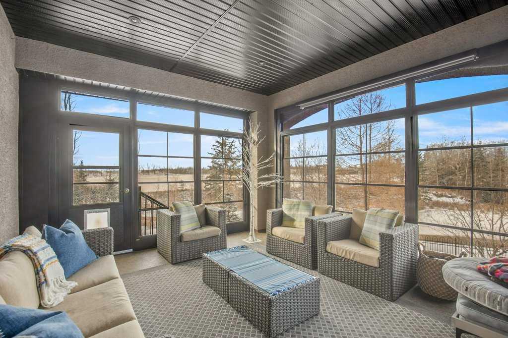 This STUNNING TWO STORY is a custom built Sorrento Home with exquisite details and thoughtful design. Located in one of Red Deer's most prestigious neighborhoods, backing on to the Piper Creek natural reserve. The curb appeal is top notch with earth toned stucco accented with archways and stonework. The heated triple garage is a dream for hobbyists, complete with two built-in work benches and plenty of room for projects. Step into a home that defines luxury living. Rich hardwood floors lead you through the main level. Elegant coffered ceilings compliment the large living room. The two sided fireplace creates a warm ambiance both inside and out on the southwest-facing deck. The 3-season sunroom extends your living space, surrounded in scenic views. At the heart of the home, the Chef's kitchen is a showstopper! Premium Viking appliances, a gas range, and double ovens. The two-toned maple cabinetry and massive island are draped in granite countertops. The large pantry offers a desk drop zone and ample storage. The mudroom provides a wonderful walk-in closet and access to the garage. The second floor is the family zone and features three large bedrooms. You will enjoy relaxing in this primary suite with the warmth of the two-sided fireplace. Soak your worries away in the spa-like 5-piece ensuite. The massive walk-in closet connects to the convenience of second level laundry. The fully developed walkout basement is designed for entertaining. It features a stylish wet bar, ice maker, and dishwasher. Impress your guests with the wine cellar, accented with gorgeous glass doors. The family room is anchored by a cozy gas fireplace, flanked by built-in shelving. Perfect for hosting company, this lower level offers a large bedroom and a 4-piece bathroom. The home gym is an added perk for that healthy lifestyle. Garden doors give you easy access to this beautiful backyard, bordered with mature trees and shrubs. It comes complete with a golf green to perfect your putting game. Front and rear yards are both maintenance free with artificial turf. Step thru the gate to gain access to the City Trail System that runs along the Red Deer River, leading to the beautiful parks of Heritage Ranch and Bower Ponds. This impressive home offers a perfect balance of sophistication and comfort. Located in a highly desirable neighborhood, close to amenities, schools, and scenic surroundings, this home offers not just a place to live - but a lifestyle to enjoy!