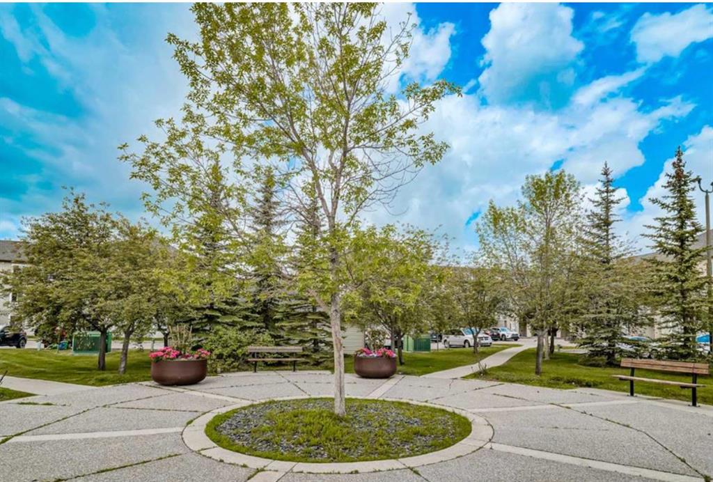 CORNER UNIT | UTILITIES INCLUDED | PRIME LOCATION | 2 BED + 2 BATH Bright and spacious 930 sq. ft. second-floor corner unit featuring 2 bedrooms and 2 full bathrooms. Open-concept layout with numerous windows, filling the home with natural light. Comfortable living area with direct access to a private balcony with gas line—perfect for BBQs. Functional kitchen with window overlooking a mature deciduous tree, adding natural light and privacy. Large primary bedroom with double closet and 4-piece ensuite. Generous second bedroom ideal for guests, family, or a home office, plus an additional 4-piece bathroom. Convenient in-suite laundry with newer washer and dryer and extra storage. Parking stall located directly outside the front entrance. Condo fees include electricity. Prime location with schools and public transit across the street. Easy access to Stoney Trail. Minutes to shopping and amenities including YMCA, Crowfoot Shopping Centre, Costco, Walmart, Superstore, and Calgary Public Library. Close to parks and pathways. Move-in ready and a great opportunity for homeowners or investors.