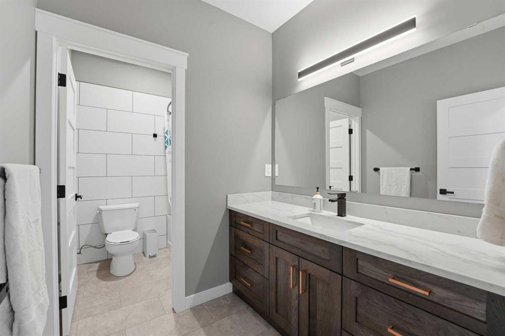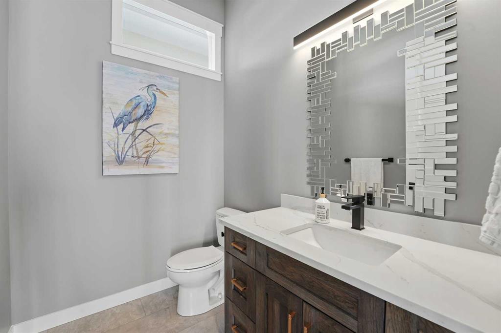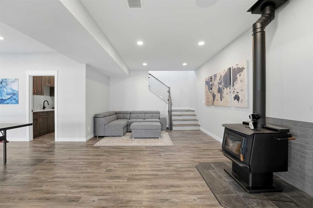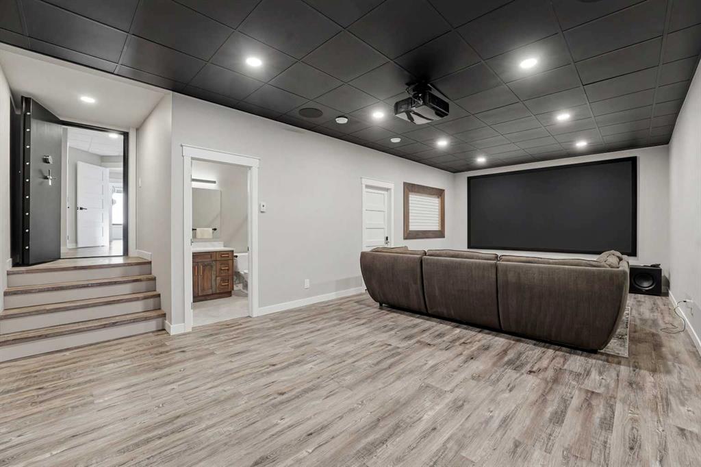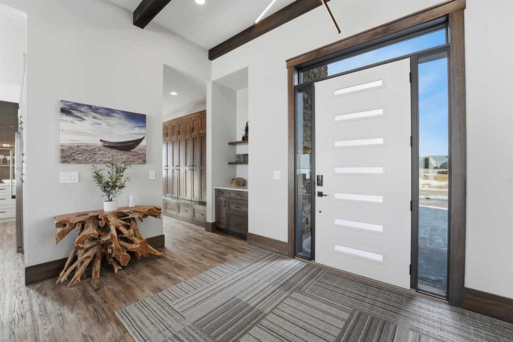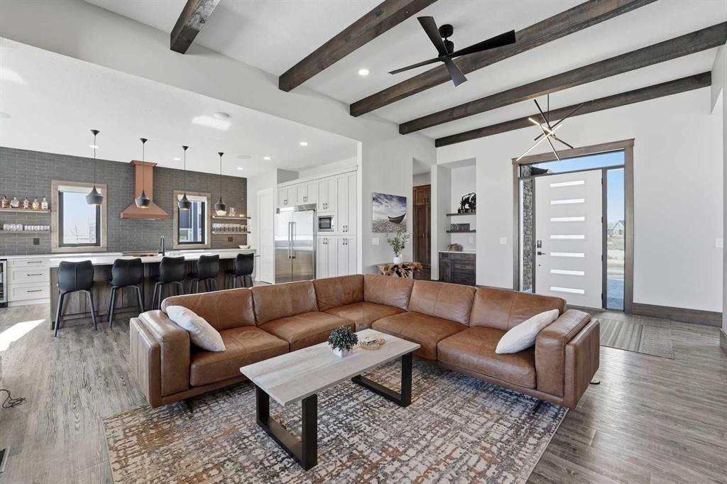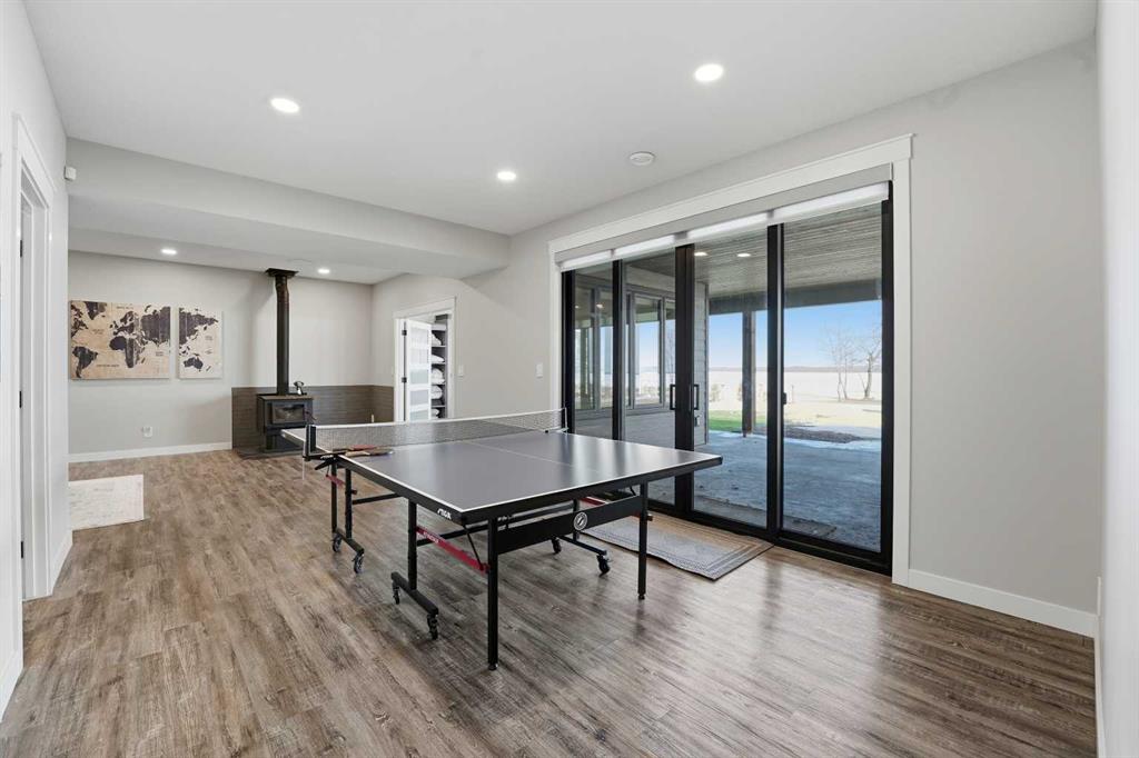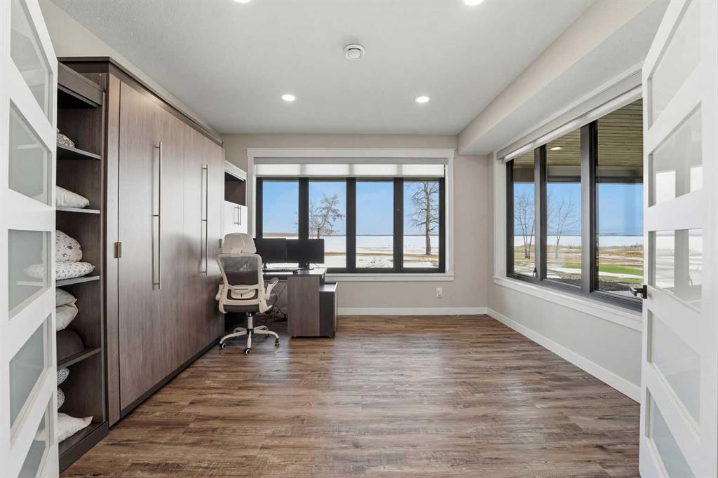 Be prepared to be impressed by this luxury lakefront home in Pelican View Estates offering nearly 3,400 sq ft of finished living space! From the moment you arrive, the curb appeal stands out with composite siding, stone accents, and an oversized stamped concrete driveway, along with additional paved parking beside the garage ideal for an RV or guests. Inside, the main living area features 10’ ceilings, luxury vinyl plank flooring, upgraded thick hickory trim, and expansive lake views through the large triple-pane windows. The kitchen is a true showpiece with white cabinetry, expansive quartz countertops, and an upgraded stainless steel appliance package including a 36” induction cooktop, side-by-side fridge/freezer, beverage fridge, and a kegerator that can also be used for carbonated drinks, while the oversized island adds even more space with a huge quartz counter and stylish hickory cabinetry. The dining area is surrounded by windows with lake views, and the living room showcases a striking 12’ ceiling with fir finished beams. Just off the entrance is a mudroom with hickory lockers and garage access. The primary bedroom offers lake views through the sliding doors to the deck, and a feature shiplap wall with an electric fireplace, along with an ensuite featuring dual sinks, a custom tiled steam shower, and access to a spacious walk-in closet. A 2-piece bathroom completes the main level. The walkout basement opens to a large family and games area with a wood stove and access to the outside stamped concrete patio. There is also two bedrooms, an office with included Murphy bed (or can be a third bedroom if desired), a 4-piece bathroom, laundry room, a cold storage room, and a dedicated home theatre with an included projector and screen. The theatre room also features a vault-style metal door, allowing the area to double as secure storage or a safe room, plus an additional 4-piece bathroom and storage room. The attached garage is heated, finished with Trusscore panels which are waterproof, includes hot and cold water taps, 8’ overhead doors, and measures over 36’ wide by 28’ deep. The outdoor living is exceptional with a full-width deck accessible from the dining area and primary bedroom, finished with Duradek, frameless glass railing, a covered section with a built-in heater and a powered screen to enclose it, while below the deck is a stamped concrete walkout patio extending to a fire pit area and a low-maintenance artificial turf yard. Both the upper covered deck and lower patio feature tongue-and-groove pine ceilings. The home also includes permanent perimeter lighting. Another standout feature is the $80,000 Control4 system offering remote control of lighting, blinds, security cameras, HVAC and more. Pelican View Estates provides community trails, a shared dock with the option to own a boat slip (negotiable on this sale, with slips valued around $7,500), and raking of the beach making it one of the nicest beaches in central Alberta just steps from your back door!