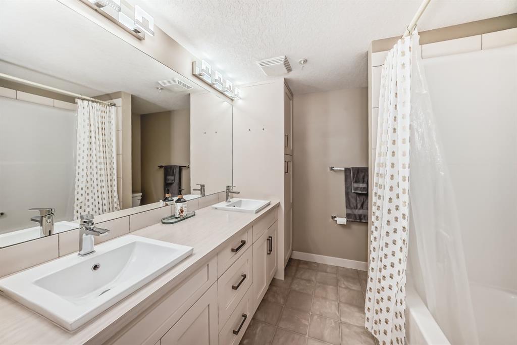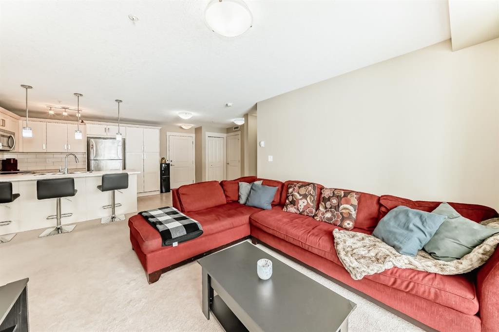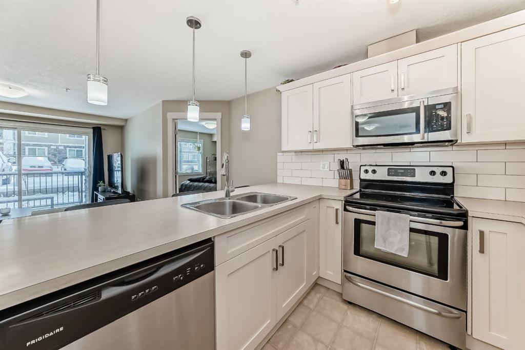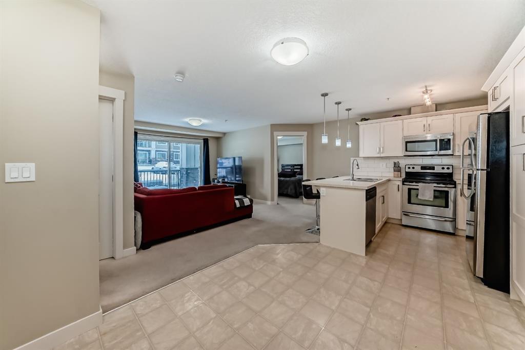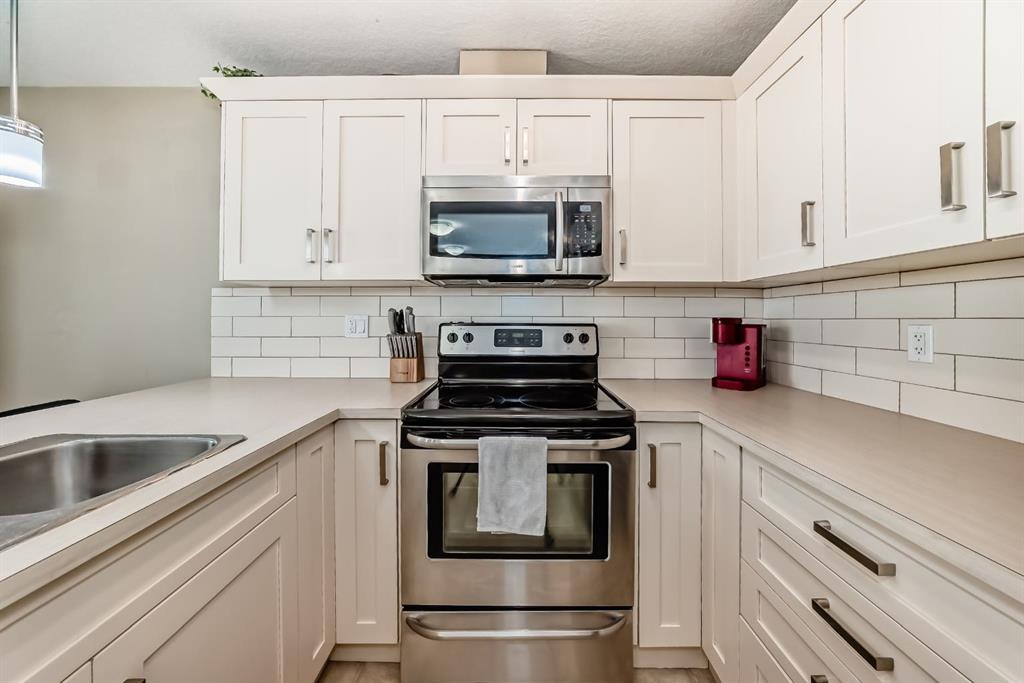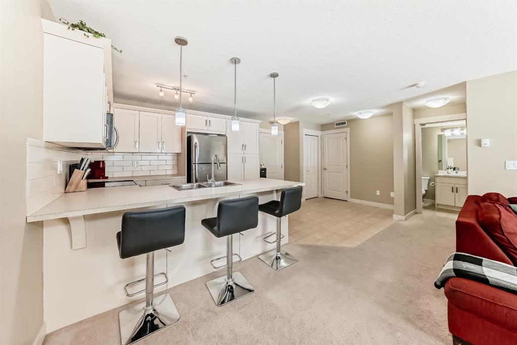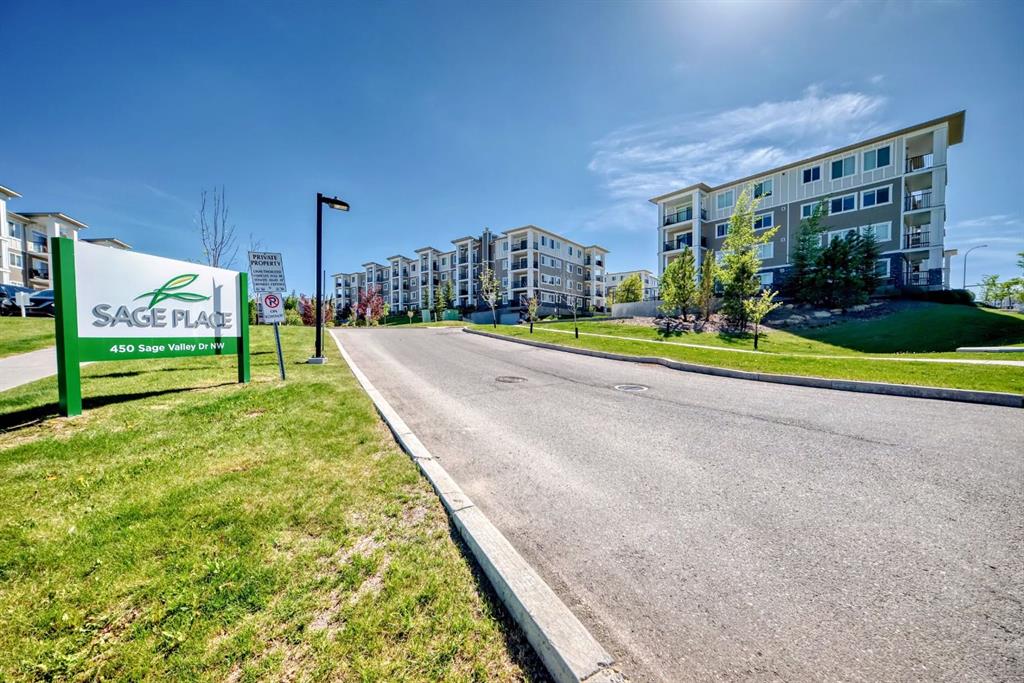 WELCOME TO YOUR NEW HOME! Don’t PAY someone else mortgage and become a homeowner and start building your EQUITY. The complex of Sage Place is in NW community of Sage Hill that offers blend of convenience of shops, banking, restaurants, parks, schools, bike paths, and transit. This pride of ownership main floor condo features over 840 sqft of living space located in the 2th building. The condo comes with 2 spacious bedrooms + 2 bathrooms + 1 outdoor titled parking stall + 1 assigned underground heated storage cage. The open concept floorplan offers AMAZING kitchen with upgraded kitchen cabinets with ample of storage space, large island, subway tile backsplash, and stainless steel appliances. The inviting living room leads you onto a massive west facing 33 ft x 6 ft patio. The primary bedroom offers walk-in closet and 5-piece ensuite with his/her sink and built-in cabinets. On the opposite side, you will find a 2nd bedroom and full 4-piece bathroom and in unit full size washer/dryer. Conveniently located just across the street from Sage Hill Plaza and Walmart & T&T and shops are minutes away. Quick access to Shaganappi Trail, 144 Ave and Stoney Trail. Mins from Beacon Hill & Costco and YYC airport. Don’t miss out on this opportunity. View Today!!
