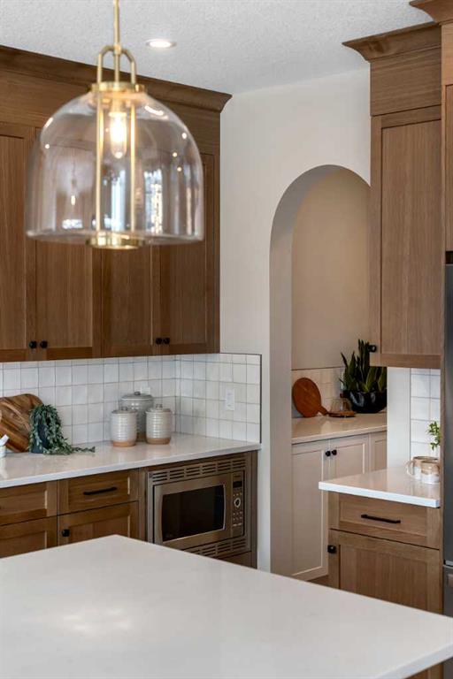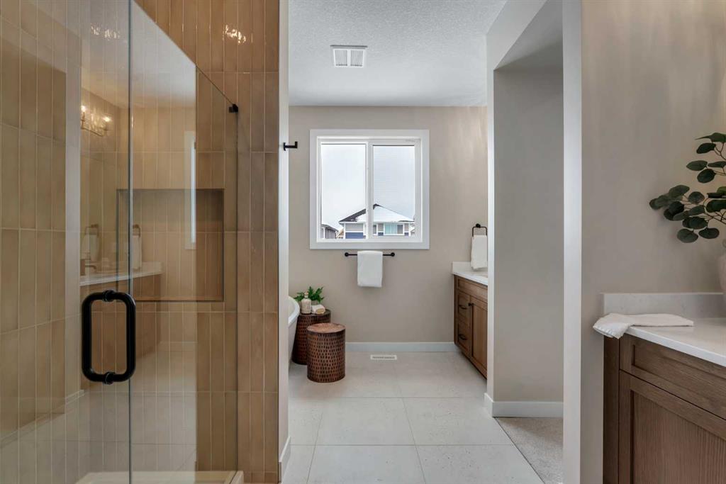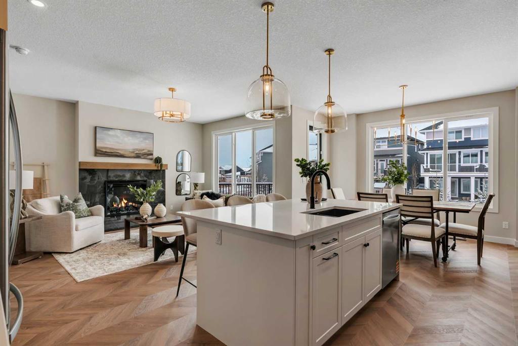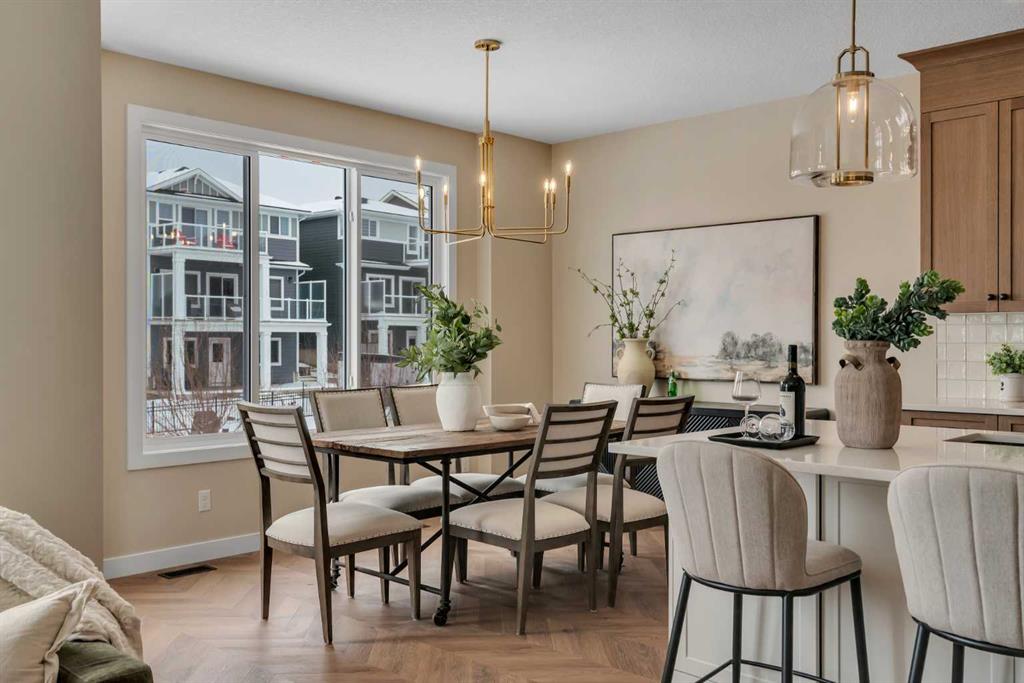 *Watch the video* Dreams of elevated family living come true in Sunset Ridge, Cochrane. Welcome to 47 Sundown Crescent, located in one of Cochrane’s most family-oriented communities. Built by Aspen Creek Designer Homes, Cochrane’s Builder of the Year 3 years in a row, this stunning Shelby model is set on a premium walkout lot backing onto a scenic walking path and showcases high-end finishings, superior craftsmanship, luxury upgrades, and exceptional attention to detail that truly sets it apart from typical new construction. Finished with timeless Hardie Board siding and an engineered structure, this home is built to last. Offering over 2,300 SQ FT of beautifully designed and highly functional living space, this home impresses from the moment you arrive. Premium Quality Finishings | Upgraded Sherwood Chevron Laminate Flooring | Gorgeous Chef's Dream Kitchen | Sleek Upgraded Lights | Butler's Pantry | Custom Curved Arch's | 9FT Ceilings Throughout | Vaulted Ceilings in Bonus Room | 8ft Doors | Vinyl Deck |West Backyard Walkout Lot | Green Pathway | Minutes to School. Step inside to an inviting open foyer with upgraded flooring throughout and a main floor den that works perfectly as a home office. At the heart of the home is the dreamy kitchen, where Aspen Creek truly shines. You’ll find rift-cut oak cabinetry, ceiling-height cabinets, quartz countertops, a beautifully upgraded backsplash, upgraded appliances, a gas stove, and a custom cabinet-covered range hood. The dual-tone cabinetry adds depth and elegance, while the well-designed butler’s pantry and adjacent walk-in pantry provide exceptional storage and prep space. Even the fixtures have been elevated, including a premium Delta Trinsic black faucet and upgraded sink. The spacious west-facing living room is perfect for entertaining and everyday living, highlighted by an upgraded tile fireplace with custom mantle and a clean, modern finish. Just off the living area, the raised vinyl deck overlooks the backyard and scenic walking path, perfect for morning coffee or summer gatherings. Upstairs, the spacious bonus room is a true showstopper with vaulted ceilings, pot lights, and a statement chandelier, making it the ideal space for movie nights. With 9-foot ceilings continuing throughout the upper level, the entire floor feels bright and open. All bedrooms are generously sized, while the primary suite stands out as a true private retreat with a feature wall, upgraded finishes, and custom MDF shelving in the walk-in closet. The ensuite is beautifully appointed with a freestanding tub, full-height tiled shower, dual vanities, and premium fixtures throughout. Large windows fill the space with natural light. Located just 20 minutes to Calgary, 30 minutes to downtown, and only an hour from the mountains. This is your opportunity to own stunning home with a spacious layout on a premium lot. This is more than with upgrades, this is where design, quality, and detail come together. This is Aspen Creek Designer Homes.