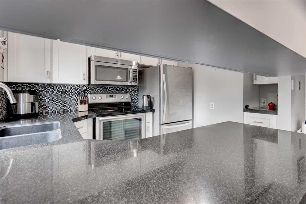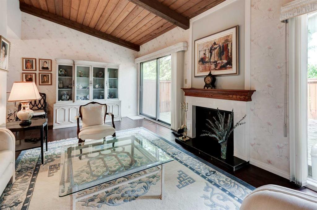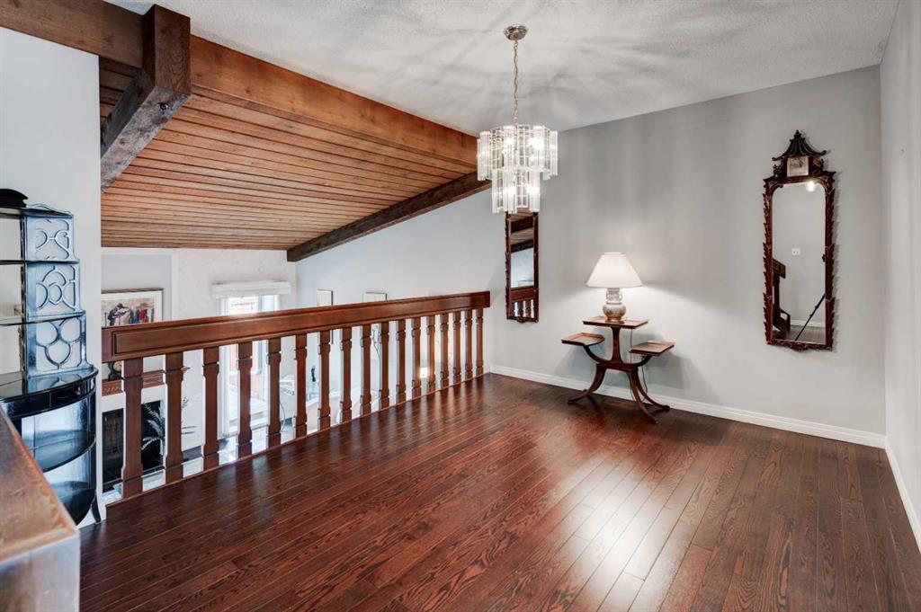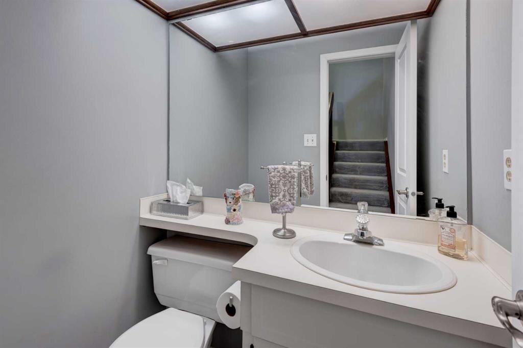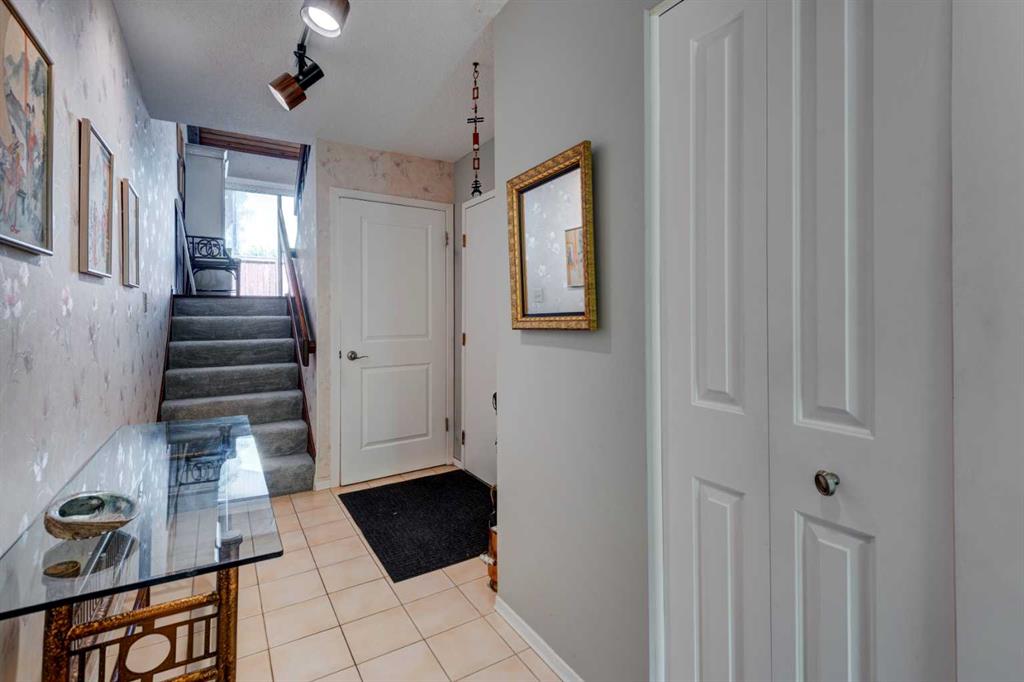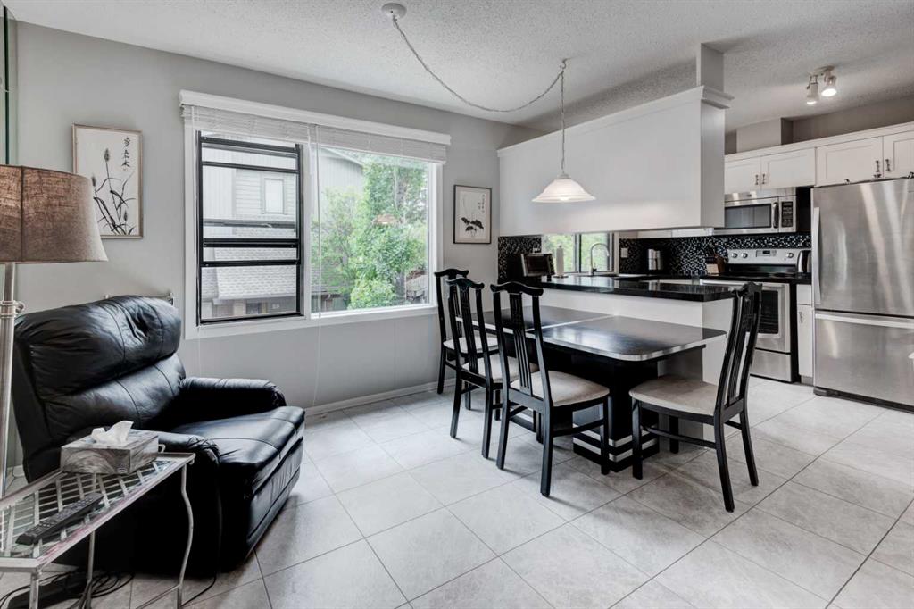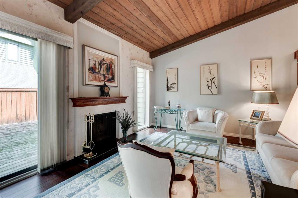 Welcome to Oakwood Lane — a wonderfully maintained, quiet, and family-friendly complex known for its mature trees, peaceful atmosphere, and excellent management. This beautifully designed 4-level split townhome offers a unique layout, thoughtful updates, and warm character throughout. The welcoming foyer provides convenient access to the heated attached garage, basement, and the rest of the home. Just a few steps up, you'll find a spacious living room with stunning cedar-vaulted ceilings, a cozy wood-burning fireplace, and access to a large private deck — perfect for relaxing or entertaining. Gorgeous hardwood flooring in the living room and continues into the bright flex space on the next level, ideal for a family dining room, home office, or playroom. The adjacent kitchen is a true highlight, featuring quartz countertops, soft-close cabinets and drawers, a sleek glass tile backsplash, stainless steel appliances, and a granite double sink. Recent 2024 upgrades include the fridge, dishwasher, kitchen faucet, washing machine, and a 2025 hot water tank. The white cabinetry and natural light make the space feel fresh and inviting, while the nearby dining area is perfect for everyday meals or hosting. A small powder room completes this level. Upstairs, you’ll find two spacious bedrooms, including a generous primary suite with its own private balcony, a walk-through closet, and access to the full bathroom. While the upstairs full bath is fully functional, it presents a great opportunity to add value with your own personal touch and modern updates. The top floor also includes a large linen closet and an additional storage closet — a rare and welcome bonus. This home offers exceptional value and is conveniently located just steps from a nearby shopping area for everyday essentials. You'll also enjoy quick access to transit, Stoney Trail, Glenmore Park, Fish Creek Park, and the Southland Leisure Centre. With its functional layout, tasteful upgrades, and unbeatable location in a well-maintained complex, this is a home you won’t want to miss!