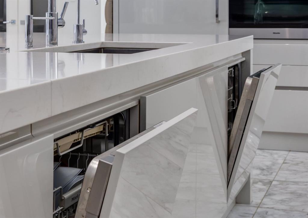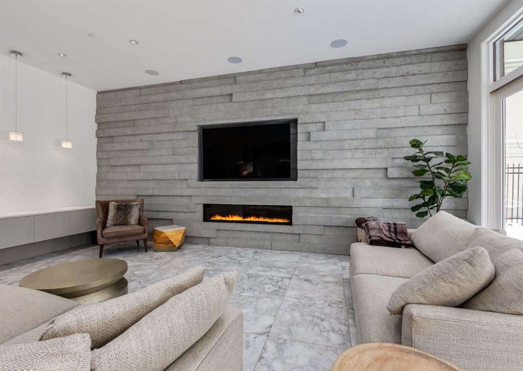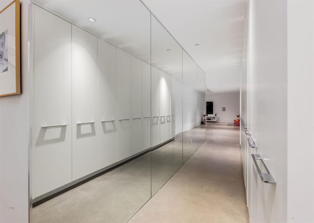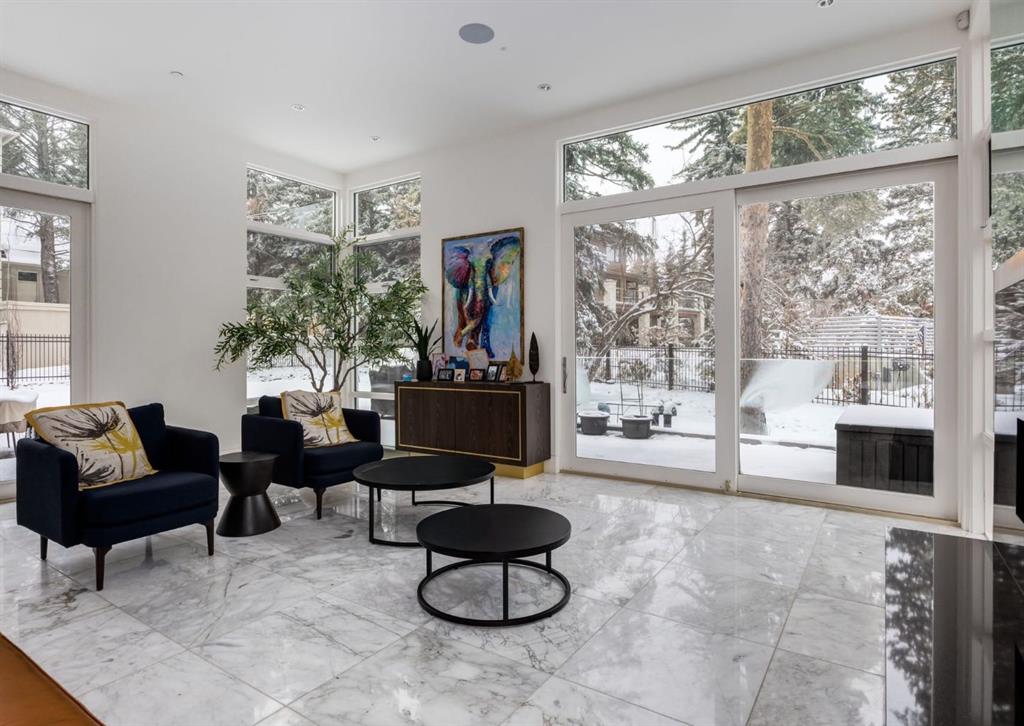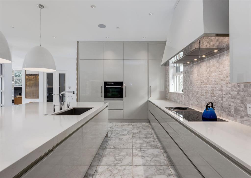 Stunning modern estate offering a rare combination of architectural excellence, elevated craftsmanship, and thoughtfully designed family living, ideally situated on a quiet cul-de-sac on over a quarter acre in the prestigious community of Pump Hill. Built in 2016, this remarkable legacy home was designed by the award-winning Vancouver firm Stuart Howard Architects, with interiors by acclaimed designer Paul Lavoie, and constructed by Riverview Custom Homes. From the moment you arrive, the home makes a statement. An impressive 9-foot pivot door opens to a grand foyer with soaring ceilings, expansive walls of triple-pane windows, a dramatic open-riser staircase, dual closets, and a newly upholstered bench. Inside, 5,500 square feet of living space unfolds with light-filled rooms and seamless indoor-outdoor connections. The open-concept main level is designed for both elegant entertaining and comfortable everyday living. A stunning executive office features custom millwork and tranquil views of the surrounding trees. The living room is anchored by a sleek Ortal fireplace and heated marble flooring, creating a warm yet contemporary gathering space. At the heart of the home is a chef-inspired kitchen showcasing quartz countertops and a premium Miele appliance package, including 72" of panelled refrigeration, induction cooktop, dual dishwashers, wine fridge, and built-in coffee system—perfect for both casual family meals and sophisticated entertaining. Designed with families in mind, the home offers five spacious bedrooms, each with its own ensuite, walk-in closet, and built-in desk space. Every bathroom is finished with timeless floor-to-ceiling marble and designer fixtures. Comfort is exceptional year-round thanks to hydronic in-floor heating on every level and two air conditioning units, while a fully integrated home automation system manages lighting, security, and built-in speakers throughout. The lower level features polished concrete floors and offers incredible flexibility with a large guest bedroom, full gym, and spacious recreation room. A massive mudroom connects to the attached heated triple garage, providing abundant storage for busy family life. Outside, the sunny WEST-facing backyard is a private retreat surrounded by mature trees, while the snowmelt driveway and front walkway ensure effortless winters. Located just minutes from Glenmore Reservoir and Rockyview General Hospital, this home offers the tranquility of an established neighborhood with convenient access to top amenities, parks, and pathways. A rare opportunity to own a truly distinctive modern estate in one of Calgary’s most sought-after communities. Floor plans and a 3D tour are readily available, providing a glimpse into this dream home.