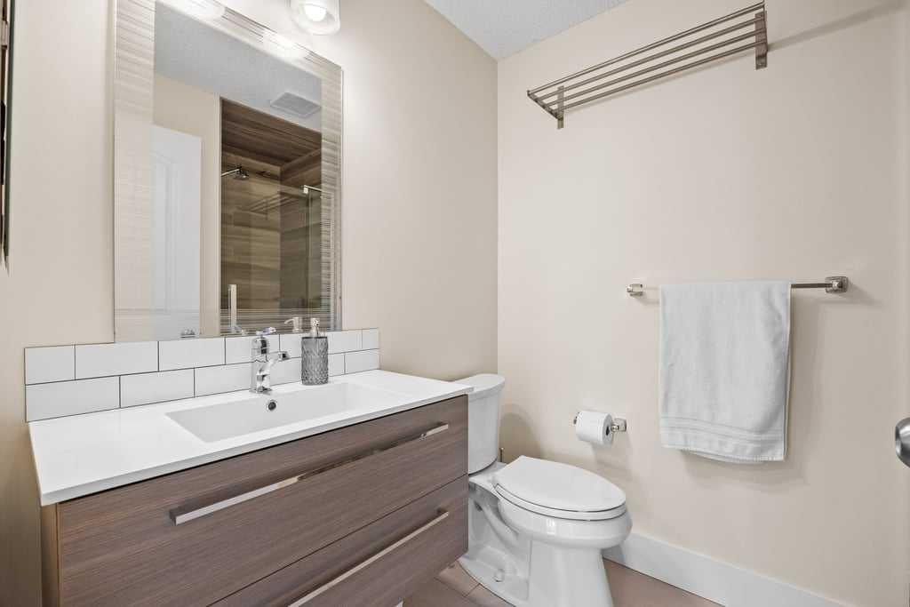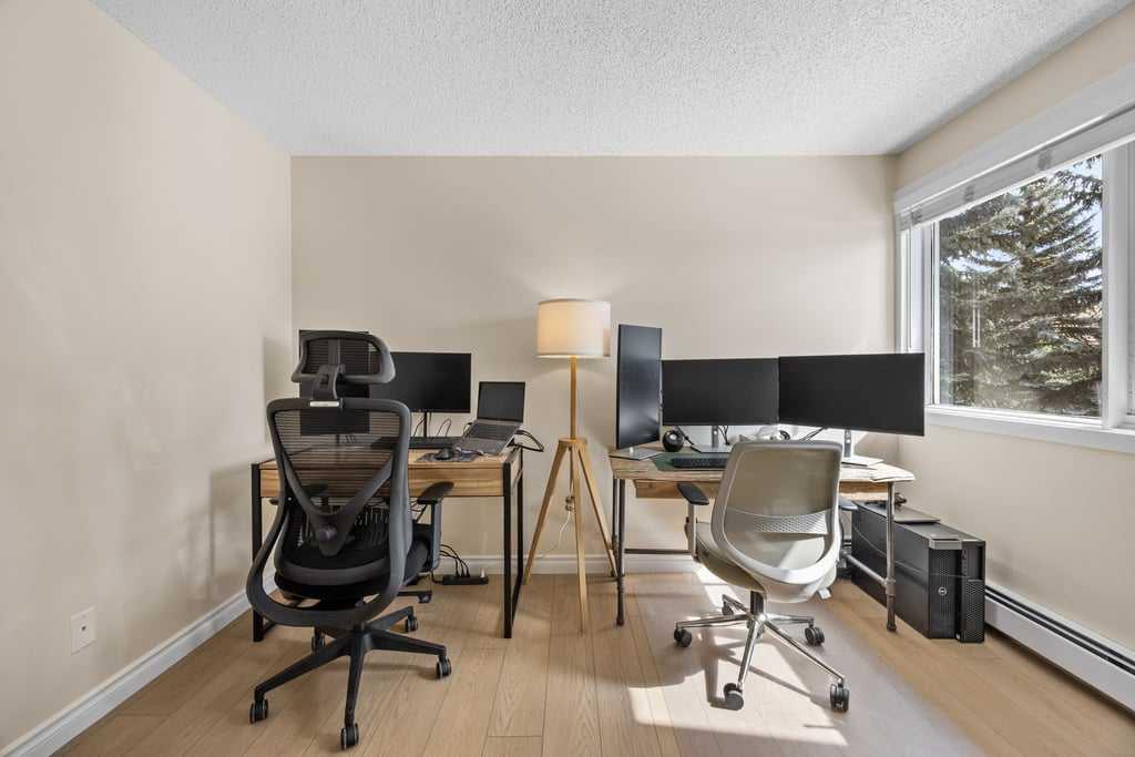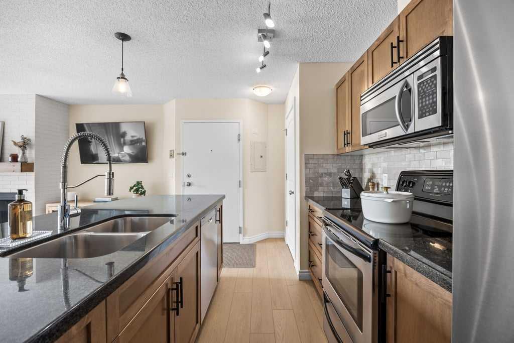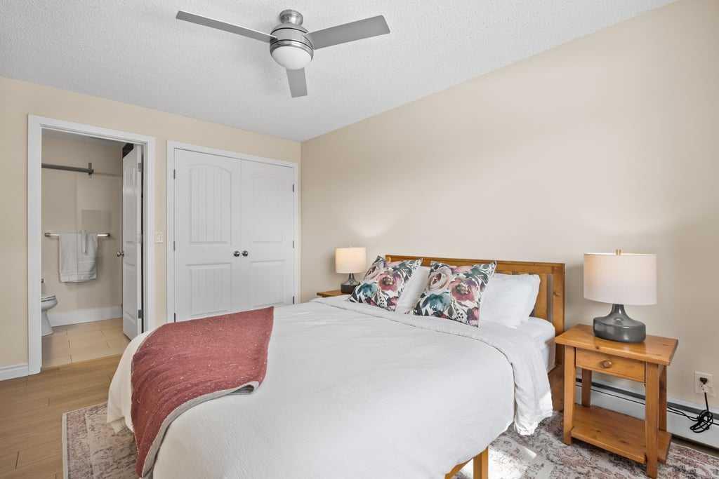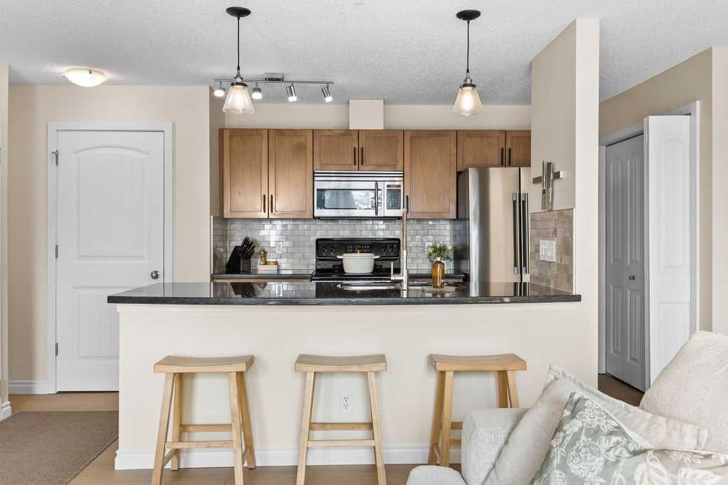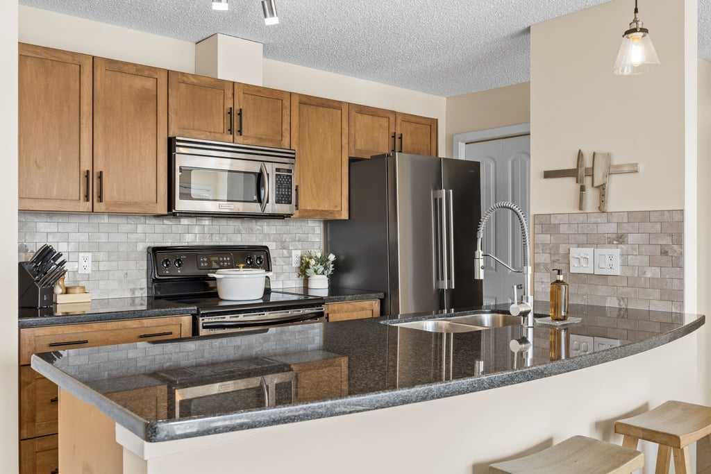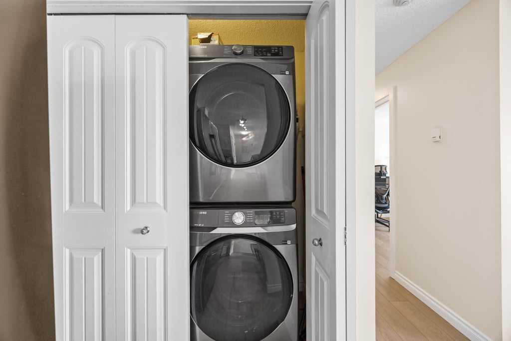 Set within an established and truly unique community, this is a quiet, elevated lifestyle just minutes from the city. This bright and beautifully maintained second-floor condo offers 2 bedrooms and 2 full bathrooms, thoughtfully designed for easy, low-maintenance living. Recent updates including new luxury vinyl plank flooring, fresh paint, and updated baseboards give the home a clean, modern feel, while large windows fill the space with natural light throughout. The living room is warm and inviting, centred around a wood-burning fireplace and flowing seamlessly into a generous dining area—perfect for hosting or easily reimagined as a comfortable home office. The kitchen balances style and function, featuring granite countertops, maple cabinetry, a curved eating bar, subway tile backsplash, an upgraded dishwasher, and updated laundry appliances for everyday convenience. Both bedrooms offer excellent storage, including a spacious primary retreat with a built-in wardrobe and private ensuite. The bathrooms have been thoughtfully renovated, offering both a full tub and a stand-up shower for added flexibility. A second full bathroom is ideally located just across from the second bedroom, making it perfect for guests or shared living. Step outside to your southeast-facing balcony and enjoy morning sun along with open views across the surrounding neighbourhood and toward the horizon. Additional features include in-suite laundry, a large private storage locker, and a reserved parking stall in the heated parkade—conveniently located on the same level as the unit for easy access. Residents of this pet-friendly complex (with board approval) enjoy beautifully maintained grounds with an ornamental pond and fountain, along with access to exceptional amenities including tennis courts, a fitness centre, indoor pool and hot tub, and a welcoming party room with fireplace. Condo fees include heat and water/sewer for added peace of mind. Originally built as the media village for the 1988 Winter Olympics, this iconic location offers a rare blend of history, community, and convenience. Just minutes to shopping, transit, recreation, and with quick access to downtown, this is a home that delivers both lifestyle and location.