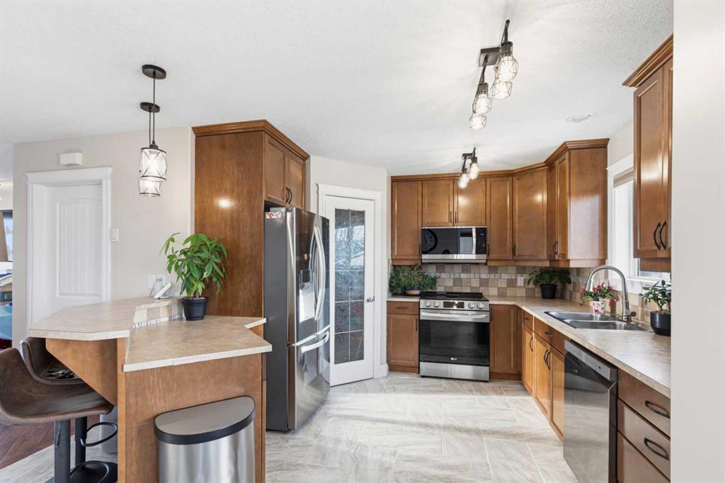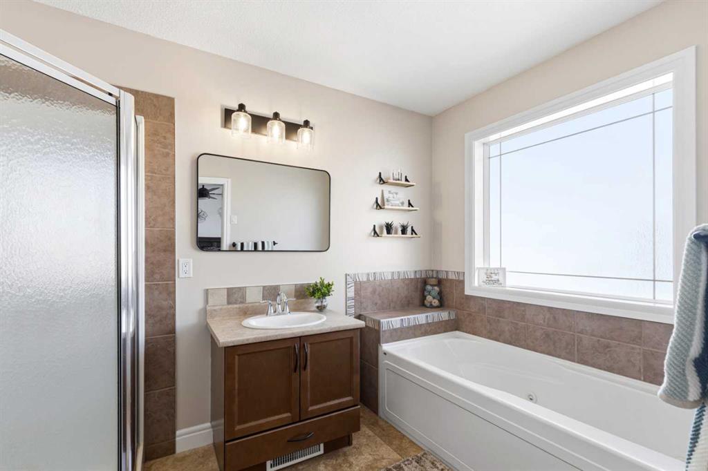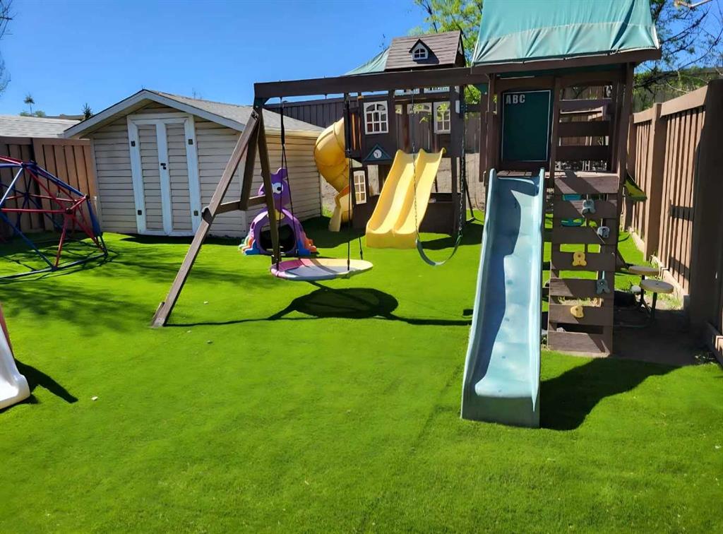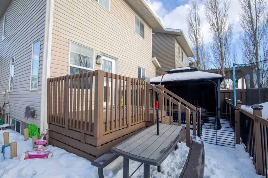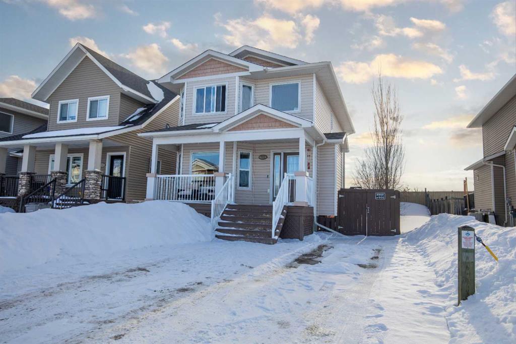 Beautifully maintained two-storey home set in a prime location directly across from a park on Grande Prairie’s south side, offering the perfect blend of comfort, style, and everyday convenience. This inviting home features an open-concept main floor highlighted by hardwood flooring, large windows that fill the space with natural light, and a cozy gas fireplace that anchors the living room, while central A/C keeps things cool and comfortable through the summer months. The kitchen offers a great layout with a pantry, newer stainless steel appliances, and rich cabinetry that flows seamlessly into the dining area. Recent improvements throughout the home include new tile flooring, fresh paint, updated light fixtures, new carpet, a new sump pump, and a newly built deck, along with low-maintenance astro turf in the backyard creating a clean, functional outdoor space. A convenient two-piece powder room completes the main level, while upstairs you’ll find three bedrooms including a spacious primary with ensuite featuring a soaker tub and separate shower, plus an additional full bathroom. The fully finished basement adds valuable living space with a den, storage/flex room, laundry area, and a roughed-in bathroom offering great potential for future completion. Located close to schools, the Eastlink Centre, walking trails, and major routes for easy commuting, this well-cared-for home truly needs to be seen in person to be fully appreciated. Book your showing today!