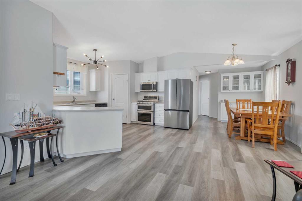 There’s a difference between affordable—and comfortable. This one delivers both. Set in a quiet pocket of Aspen Creek, this well-kept 3-bedroom home offers something many buyers struggle to find at this price point: space, privacy, and a double garage. Inside, the fully drywalled interior creates a feel that’s noticeably different from typical manufactured homes. The spacious, open floor layout is practical and easy to live in, with updated flooring, fresh paint, newer lighting, and air conditioning already in place. The kitchen is built for function, featuring a double electric oven, gas range, oversized fridge, a pantry and reverse osmosis system. om adds to the everyday functionality. Step outside to a west-facing front deck—ideal for evening sun—and a well-maintained yard that reflects the overall care of the property. The 25 x 23.5 garage adds real flexibility, whether for parking, storage, or workspace. Located in a quiet, established community, this is a strong option for downsizers or buyers looking to simplify without giving up independence.