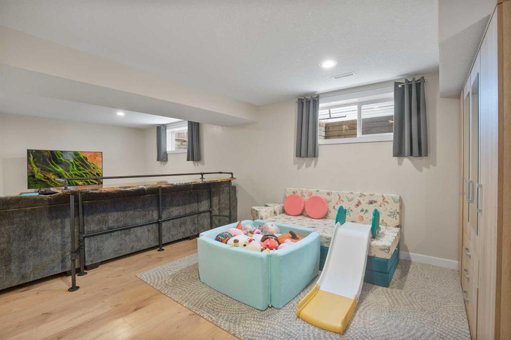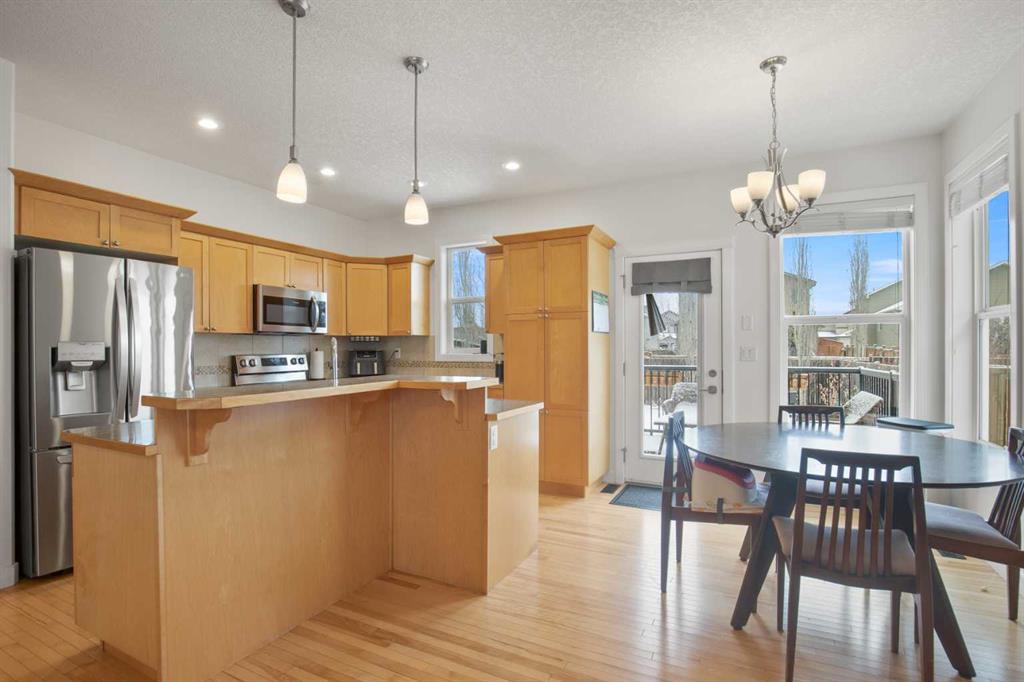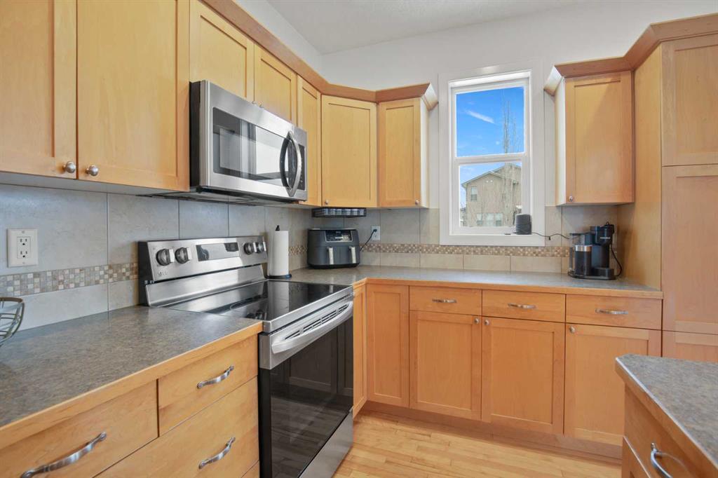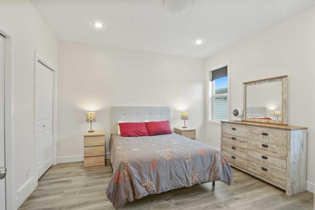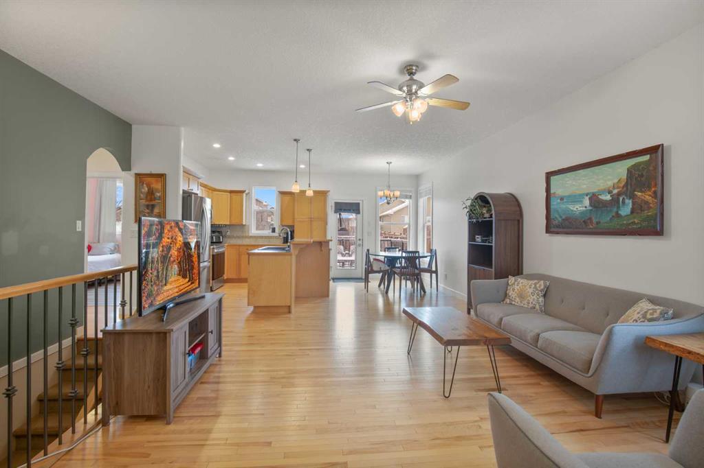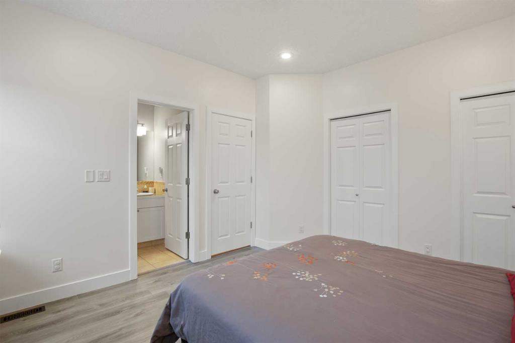 NOW OFFERING this fully finished family home with attached double garage on a quiet cul-de-sac! This home has great curb appeal with its dark garage door and trim, and covered front deck. Enter into a large tiled entrance and an open floor plan main floor. You'll love the warmth of the hardwood flooring, tall ceilings, and large windows. There are extensive cabinets, stainless steel appliances, tiled backsplash, and a large island in the kitchen. The master bedroom is spacious and has his and hers closets, and a three piece ensuite bathroom. There's a second bedroom and full bathroom upstairs as well. The basement is very large and has an open floor plan. The family room has plenty of room for your entertainment area, plus home office, play area or whatever you desire. There's a third and third and fourth bedroom and another full bathroom downstairs as well. Enjoy the back yard on your two-level deck with aluminum railing, overlooking the fully fenced and landscaped yard. The double attached garage is insulated and roughed in for in-floor heat.