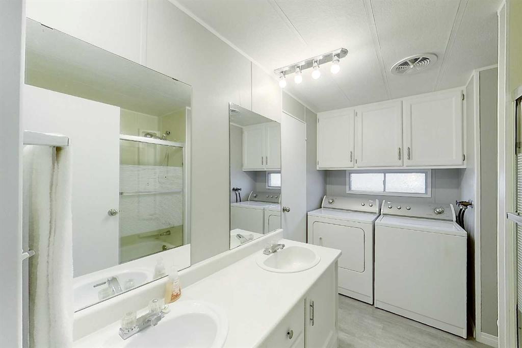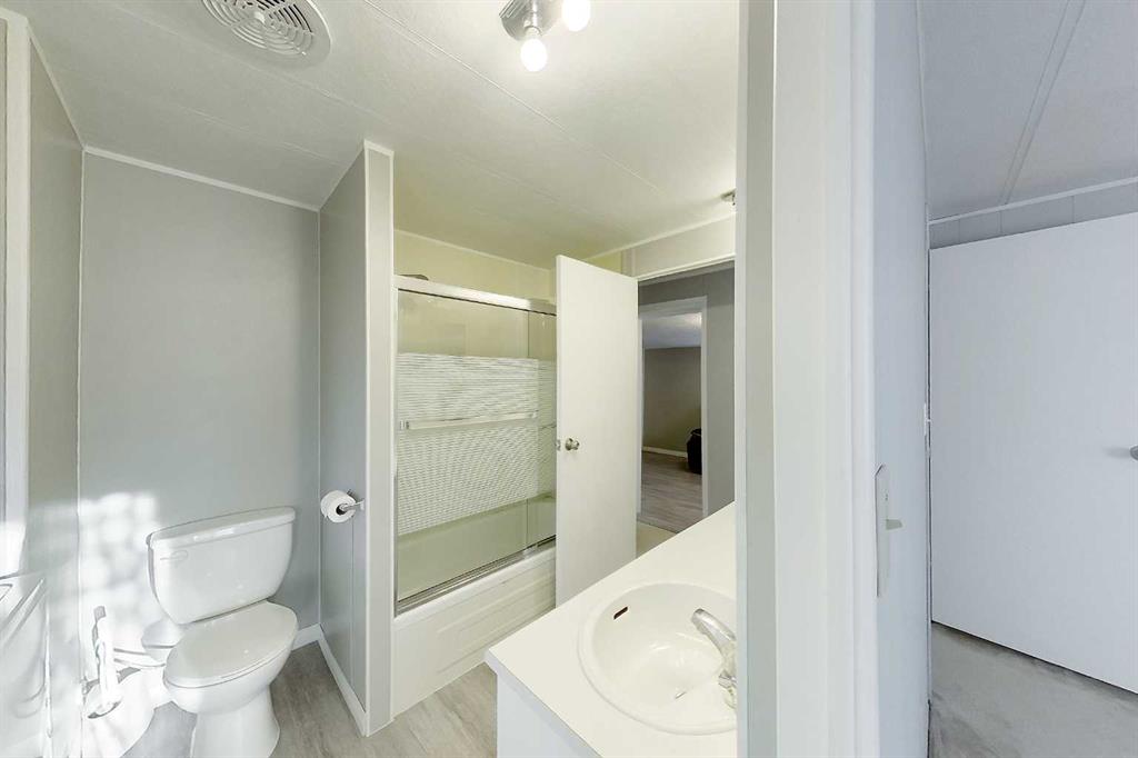 Don't let the price fool you — this home punches well above its weight. Extensively renovated from top to bottom, 108 3 St SW is move-in ready and loaded with value. Fresh paint, new vinyl plank flooring, updated bathrooms, and a clean modern feel throughout make this home feel brand new. The brand new furnace (2020) and new hot water tank mean the big-ticket items are already done for you. At over 1,085 sq ft, the layout is surprisingly spacious — a generous living room with large windows, a separate dining area, good-sized kitchen, den perfect for a home office or guest room, and an impressive 25-foot sunroom that adds incredible bonus space year-round. The primary bedroom features a 5-piece ensuite with double vanity, and the main bath conveniently houses the laundry — no hauling laundry through the house. Outside, you'll find a massive, fully fenced backyard with mature trees, established rose bushes, and a large garden space ready for spring planting — plus a substantial storage shed to keep everything organized. Fee simple lot — you own the land. Low taxes. Walking distance to schools and shopping. If you've been waiting for a well-cared-for, affordable home in a great location, the wait is over.