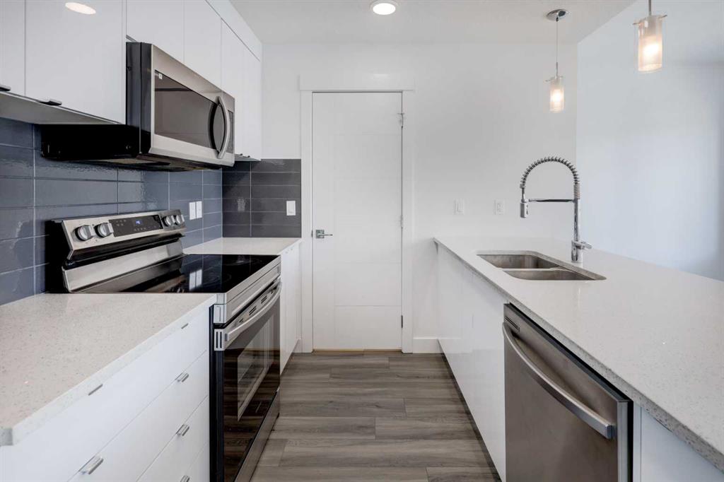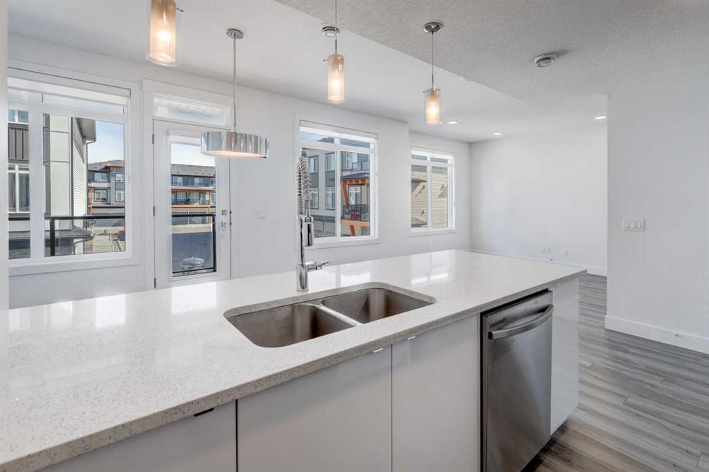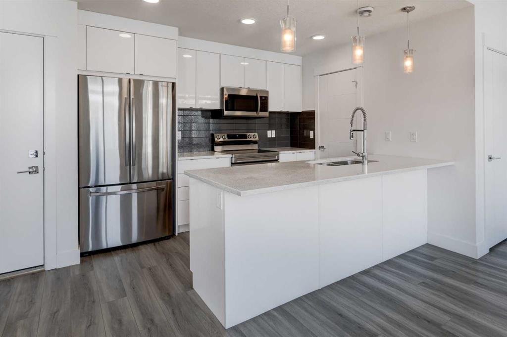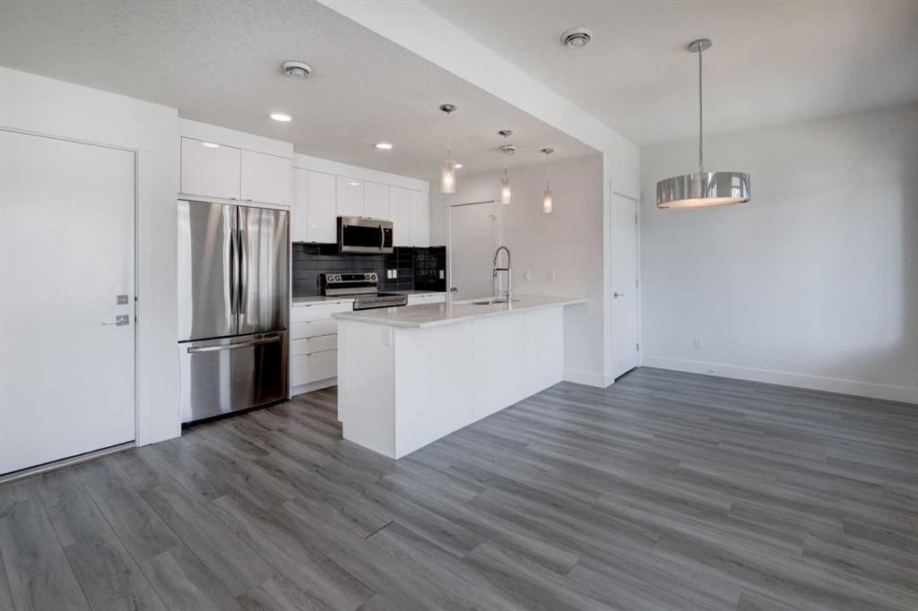 Welcome to this 2022 built AFFORDABLE townhouse with LOW CONDO FEES & a DOUBLE ATTACHED GARAGE in the heart of Saddle Ridge, arguably one of NE Calgary's most sought after townhouse complexes with a great location that is nestled along Savanna Blvd providing easy access to Metis Trail, Stoney Trail, Costco, a future LRT/train station nearby, shopping, restaurants, playgrounds, schools & CrossIron Mills Shopping Centre. This 2-bedroom/ 2.5 bathroom home features modern vinyl plank flooring, in-unit laundry, tons of natural sunlight, quartz countertops, a modern kitchen with a sleek subway tile backsplash & stainless steel appliances. The OPEN CONCEPT main level greets you with an optimal layout seamlessly connecting the living room to the dining room, kitchen, half bathroom, laundry closet & access to the garage. The large upper level primary bedroom retreat features a 3 pc ensuite bathroom. Down the hall is the second bedroom that is conveniently located next to the 4 pc full bathroom. This is a well maintained complex in a great location that is PET FRIENDLY (upon board approval) that does not have many units come up for sale, especially at this price point!