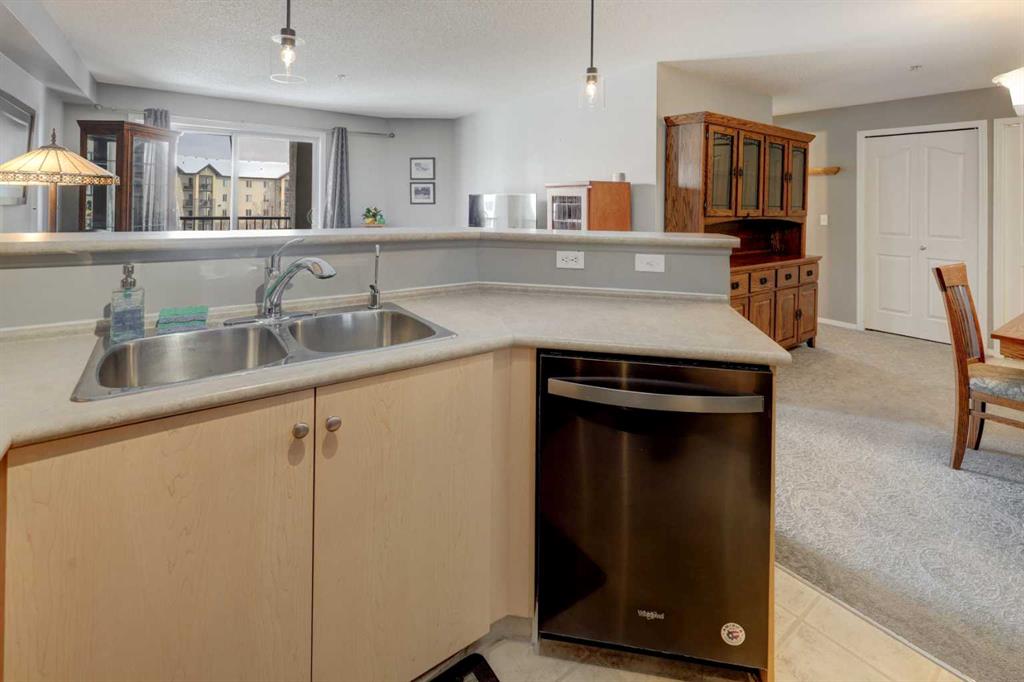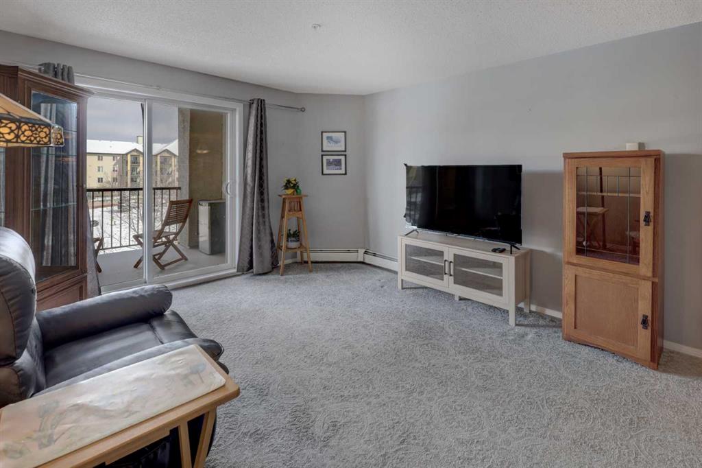 Bright, beautifully maintained 2 Bedroom/2 Bathroom is almost perfect, it just needs YOU!! This inviting condo in the heart of Airdrie has a TITLED & HEATED UNDERGROUND PARKING stall AND in-suite Laundry. Offering a functional open-concept layout, this home is filled with natural light and designed for easy, comfortable living. The Kitchen hosts SS appliances, loads of cabinet storage, linoleum floors, and an eat-up Breakfast Bar. Flowing seamlessly into the spacious Living and Dining areas with cozy carpet, that steps outside onto the fantastic-sized COVERED Balcony with POND VIEWS—perfect for enjoying your morning coffee or unwinding at the end of the day. The Primary Bedroom is huge, featuring a 4-pc Ensuite AND organized Walk-In Closet. There is a 2nd Bedroom with a bright window & closet, a 4-pc Bathroom, and you’ll also find the convenience of in-suite laundry with additional storage space, making day-to-day living effortless. This unit offers a unique advantage providing added privacy with one less shared wall—a rare and valuable feature. Complete with titled underground heated parking, this home checks all the boxes. Even better, the condo fees include all the usuals PLUS heat, and water, offering true peace of mind and predictable monthly costs. Enjoy the convenience of living in a well-connected Airdrie community close to shopping, restaurants, parks and everyday amenities, with easy access for Calgary commuters. Whether you’re a first-time buyer, downsizer, or investor, this bright and low-maintenance home is an excellent opportunity in a well-managed complex - book your private viewing TODAY!