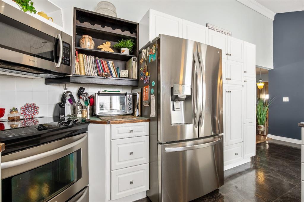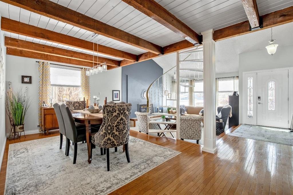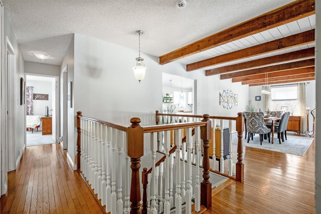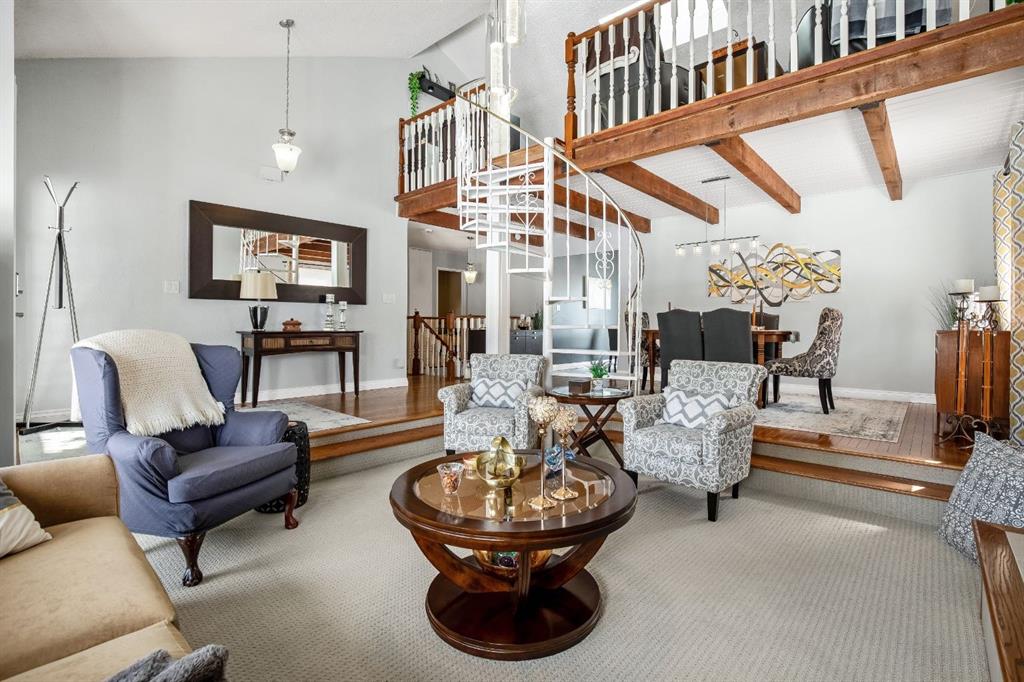 Welcome to this beautifully maintained bungalow with a versatile loft, ideally located in a desired area of Strathmore. Backing directly onto the canal with no rear neighbours, this home offers a rare combination of privacy, functionality, and timeless character. The main level features a sunken living room with a cozy gas fireplace, creating a warm and inviting space to relax or entertain. A formal dining room showcases a striking spiral staircase leading to the loft—perfect as a TV area, home office, or flex space. The bright kitchen offers ample cabinetry, a functional layout, and an eating area with garden doors opening to a large patio—ideal for indoor-outdoor living. This home offers 3 bedrooms on the main level, including a spacious primary retreat complete with an updated ensuite, walk-in closet, and private balcony. The fully developed basement adds additional living space with a warm family room, a large room/flex space(non-egress window), generous storage, a workshop area, and a dedicated wine-making space/kitchenette. Step outside to enjoy the large deck, fire pit area, and beautifully positioned yard backing onto the canal, with convenient back lane access. Additional highlights include a double attached garage, shingles replaced approximately 3 years ago, and a hot water tank updated in 2025. This unique property offers exceptional value, flexible living spaces, and a location that is hard to beat. Close to shopping, schools, amenities, walking path’s and downtown Strathmore. Pride of ownership shows with this home. Contact your favorite Realtor® to view this immaculate home today!